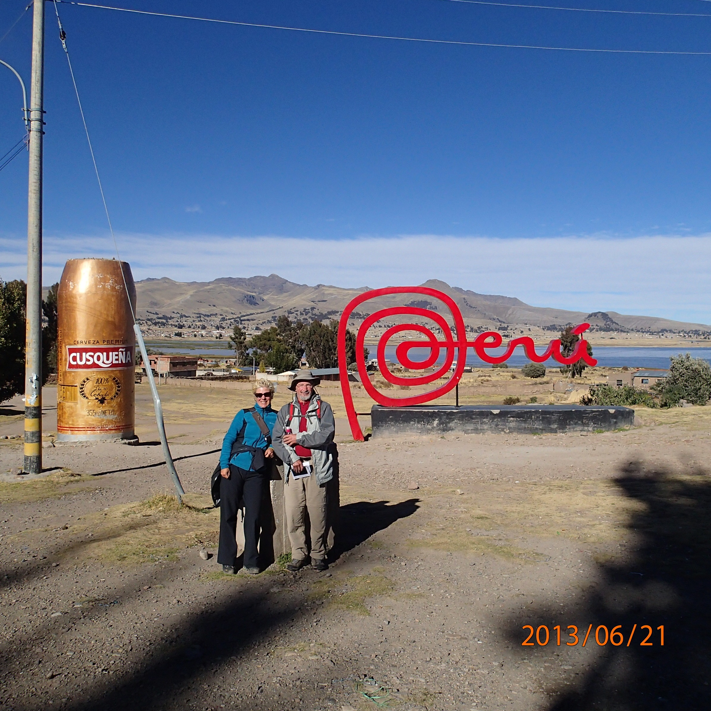 À 15 minutes de Copacabana, passage de la frontière Bolivie/Perou. En fait c’est assez simple: on débarque du bus (aucune vérification des bagages) et au poste Bolivien, ils vérifient notre petite carte verte de séjour (max 30 jrs et on est pile au 30e jrs), estampille la carte et notre passeport puis on est partis. Trois cent mètres plus loin on entre au Pérou. On voit déjà que c’est plus organisé: un comptoir avec plusieurs douaniers et des guides de règlements du pays disponibles dans plusieurs langues (français inclus) et gratuits. On repart dans notre bus.
