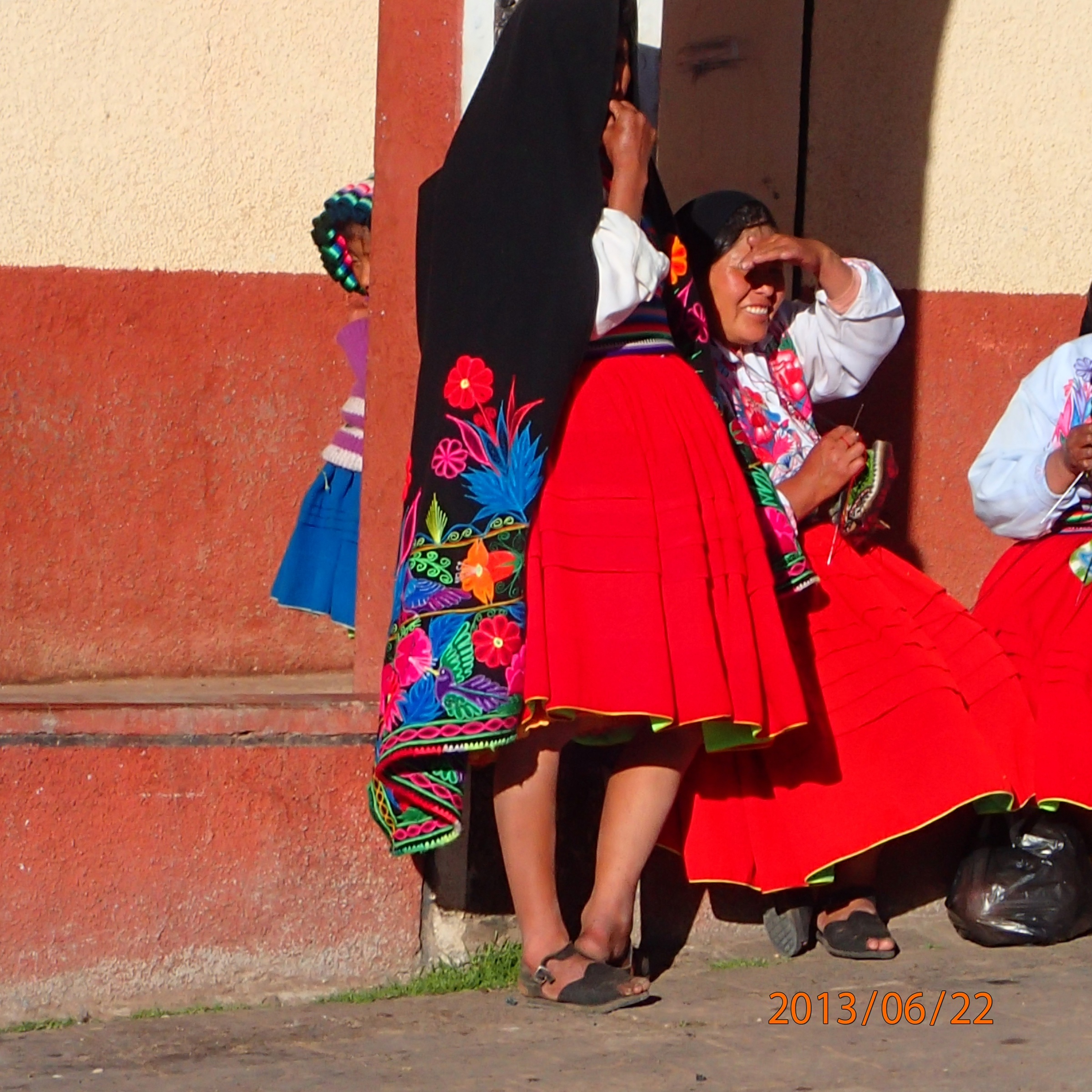 Amantani – le costume traditionnel de notre communauté …que de travail de broderie sur leur « châle »