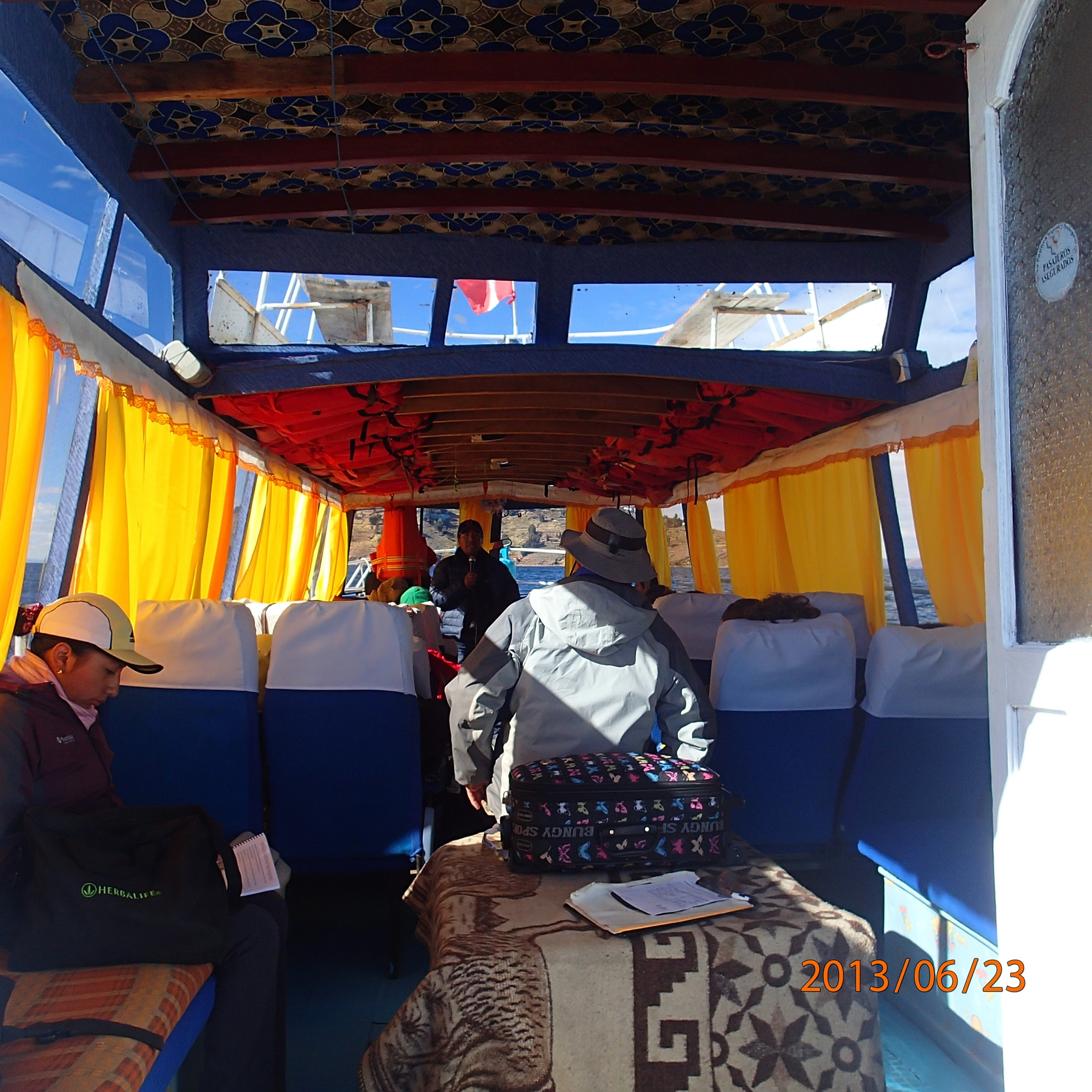 Put put put direction Taquille. Mixte sentiments: soulagement que se soit finit et beaucoup de questionnement. Durant ces heures innombrables de croisière on a fait connaissance avec un Torontois et un Américain qui voyagent ensemble ainsi que 2 Brésiliennes, tous très sympathiques.
