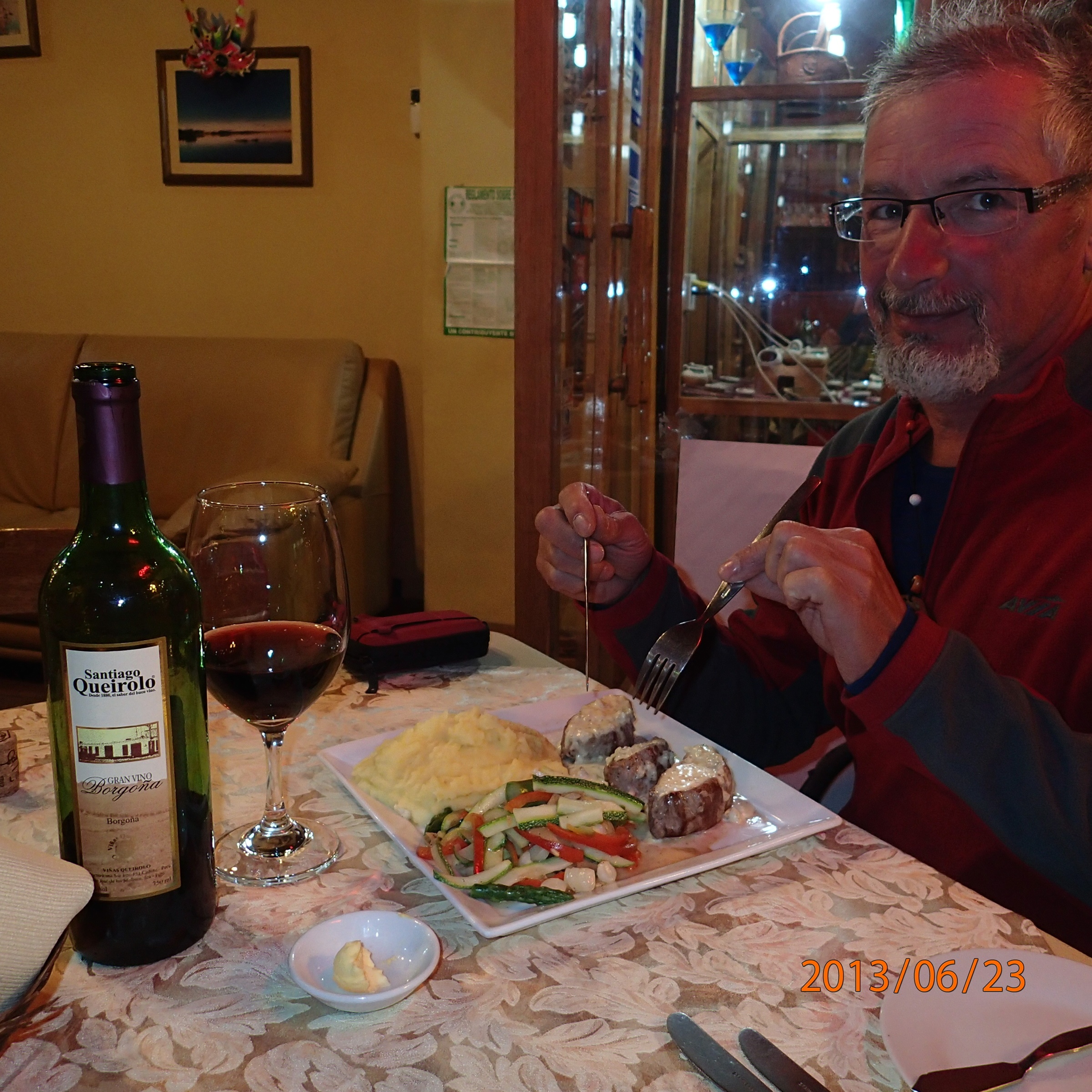 Retour à Puno – Ha un bon souper (…pas de patates!) avec une bouteille de Vino Tinto….ha merde c’est un vin de dessert!!!