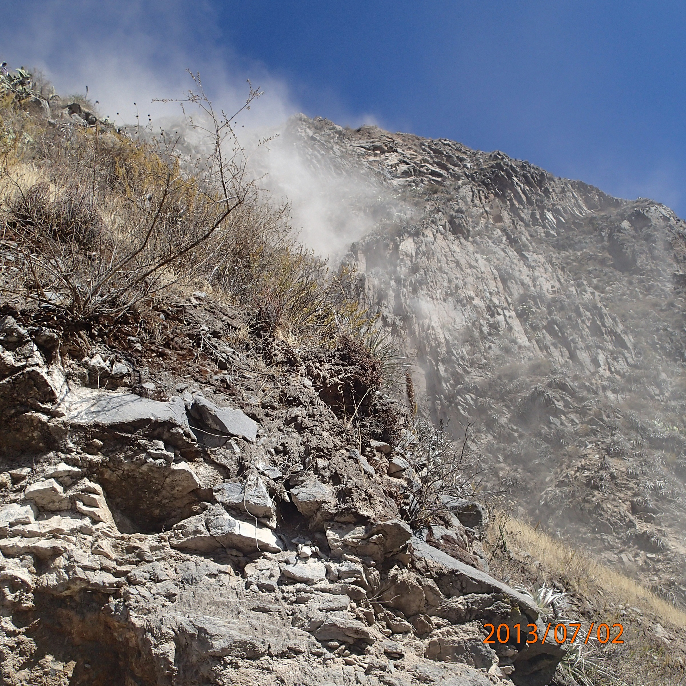 Arequipa – Tour au Cañon del Rio Colca: un déboulement qu’on a éviter de justesse et cela dû aux travaux effectués plus haut sur le chemin