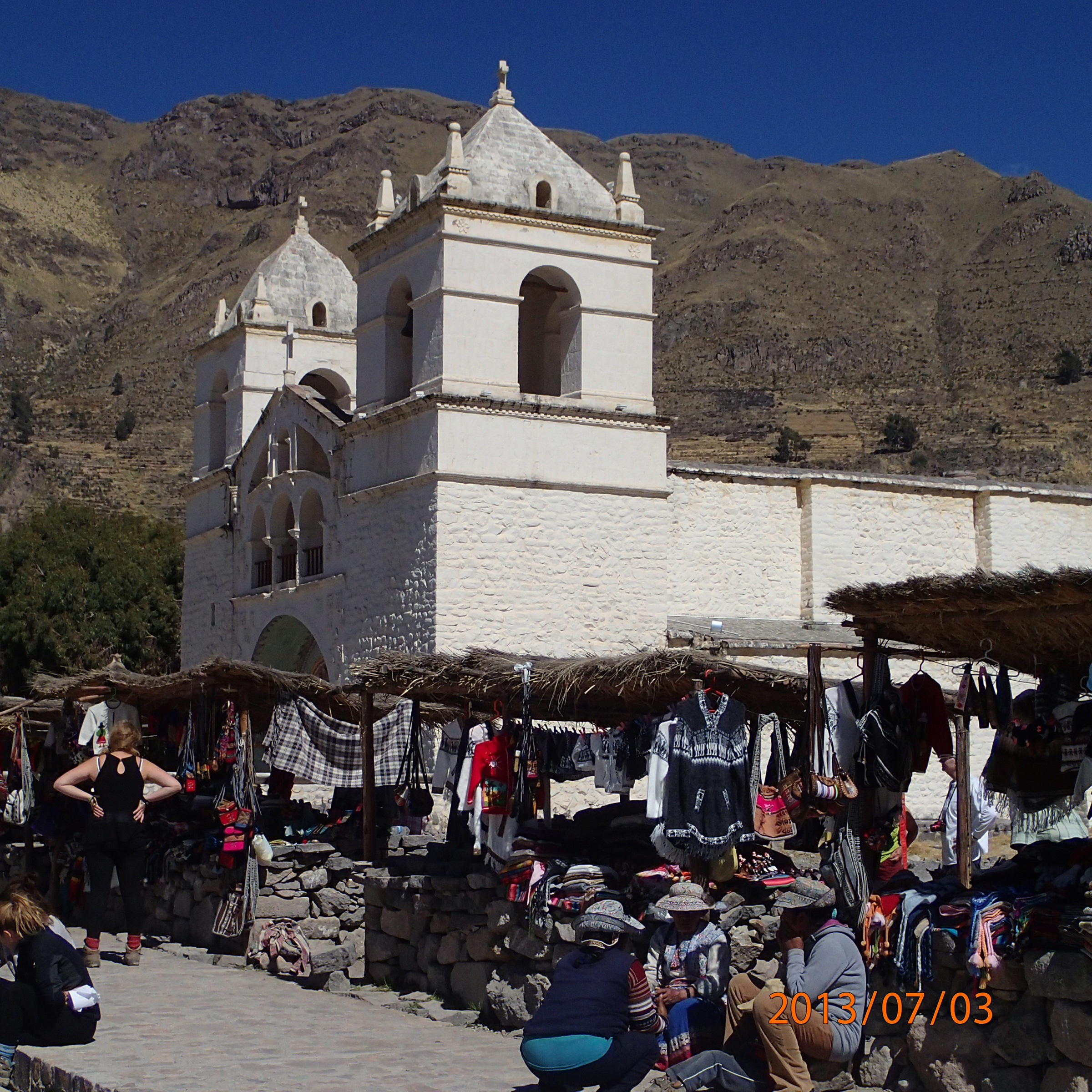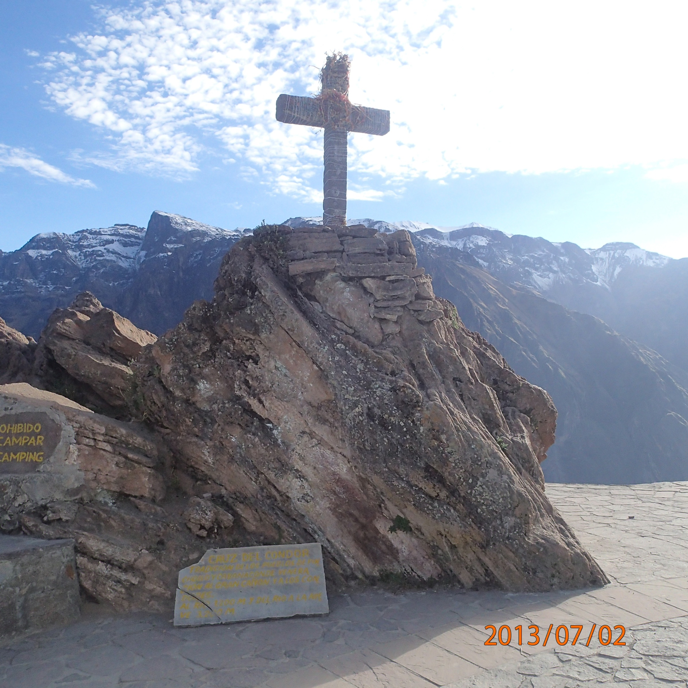 Arequipa – Tour au Cañon del Rio Colca: Traditionnellement une croix est montée à tous les ans par un des habitants qui s’est porté volontaire lors de la fête précédente (…boisson aidant) et s’occupe de toute l’organisation: boissons et bouffes et se fête à tous les solstices d’hiver
