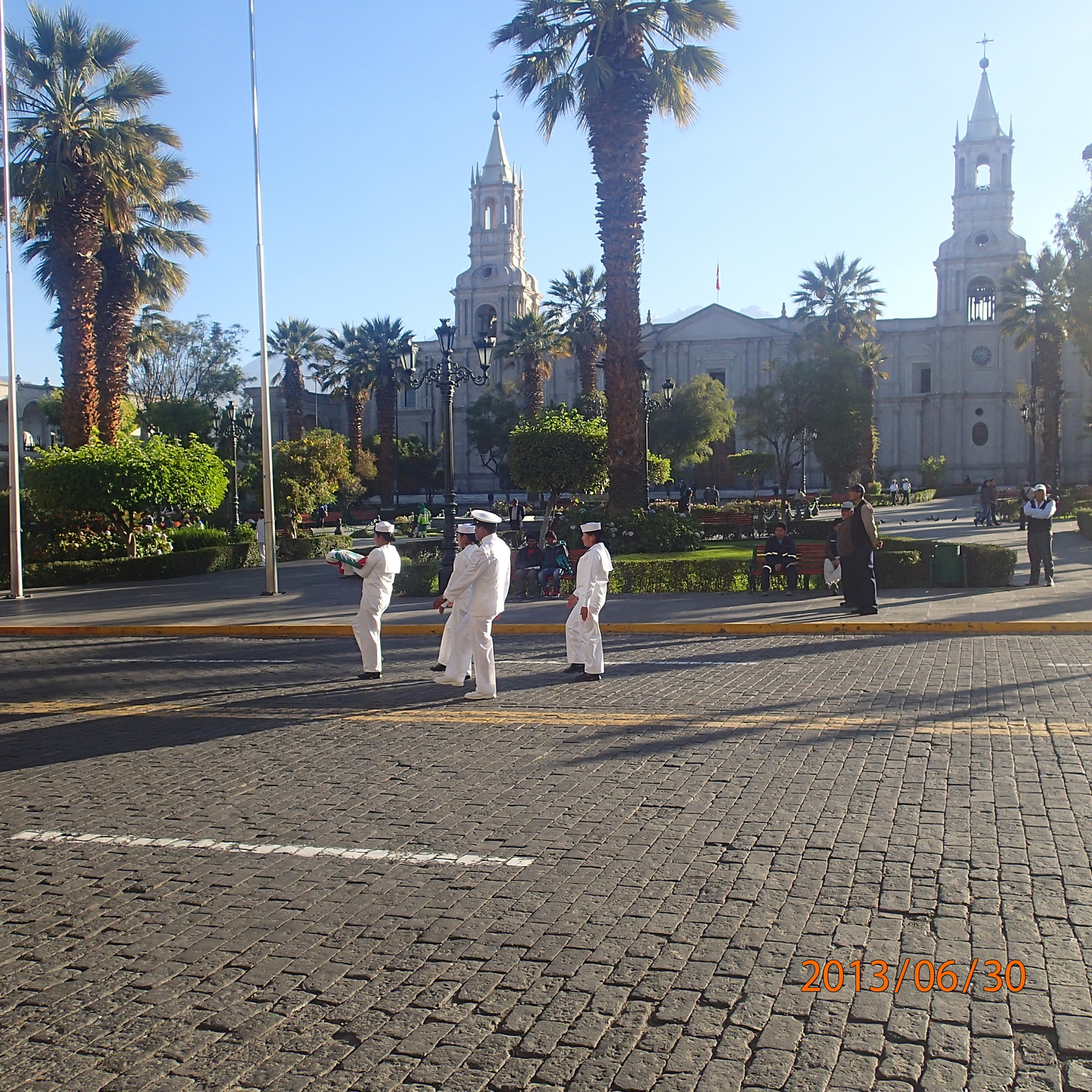 Arequipa – montée du drapeau à la Plaza d’Armas