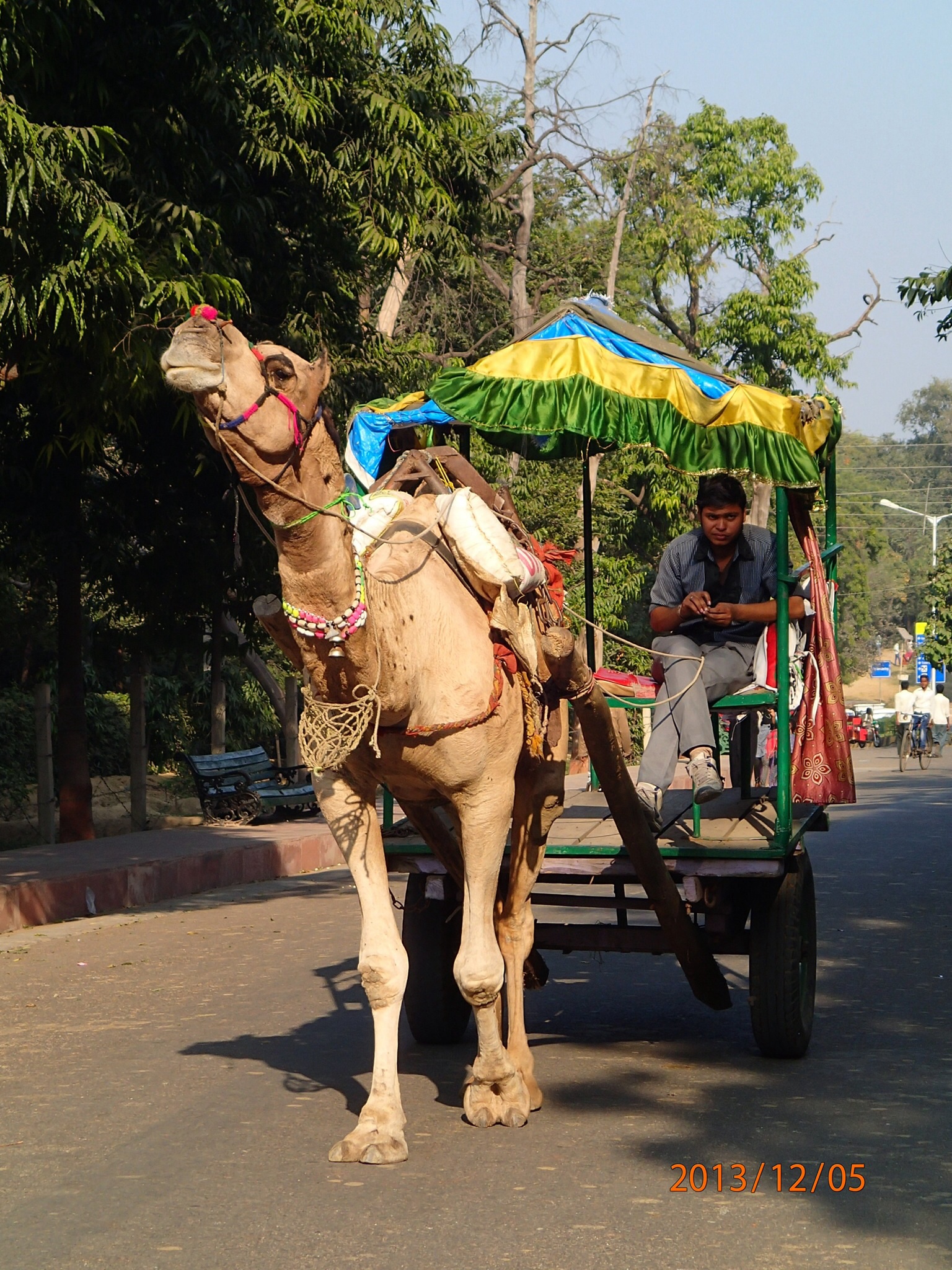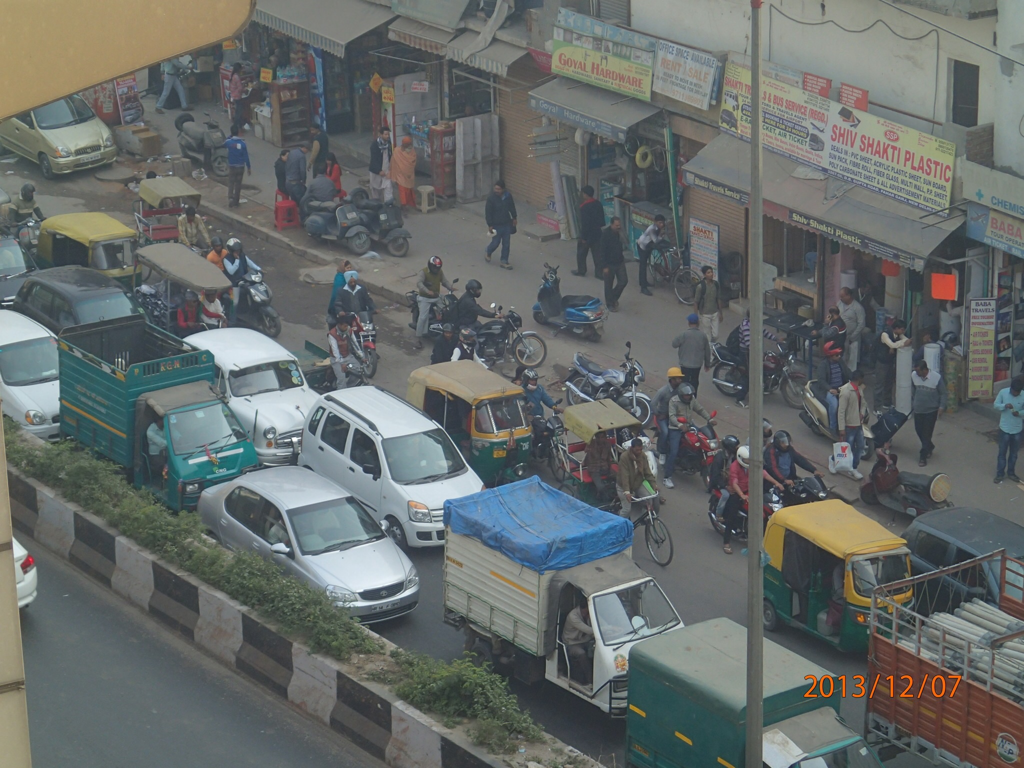 En moins de deux, nous somme sur la route et notre prise de conscience de Delhi se fait sentir. Dans le trafic les autos, motos, rickshaw, camions et autobus s’entrecroisent dans un ballet fou au son des klaxons de tous genres (impressionnant et en plus pour nous confondre encore, plus ils conduisent à droite et roule à gauche!!!!).