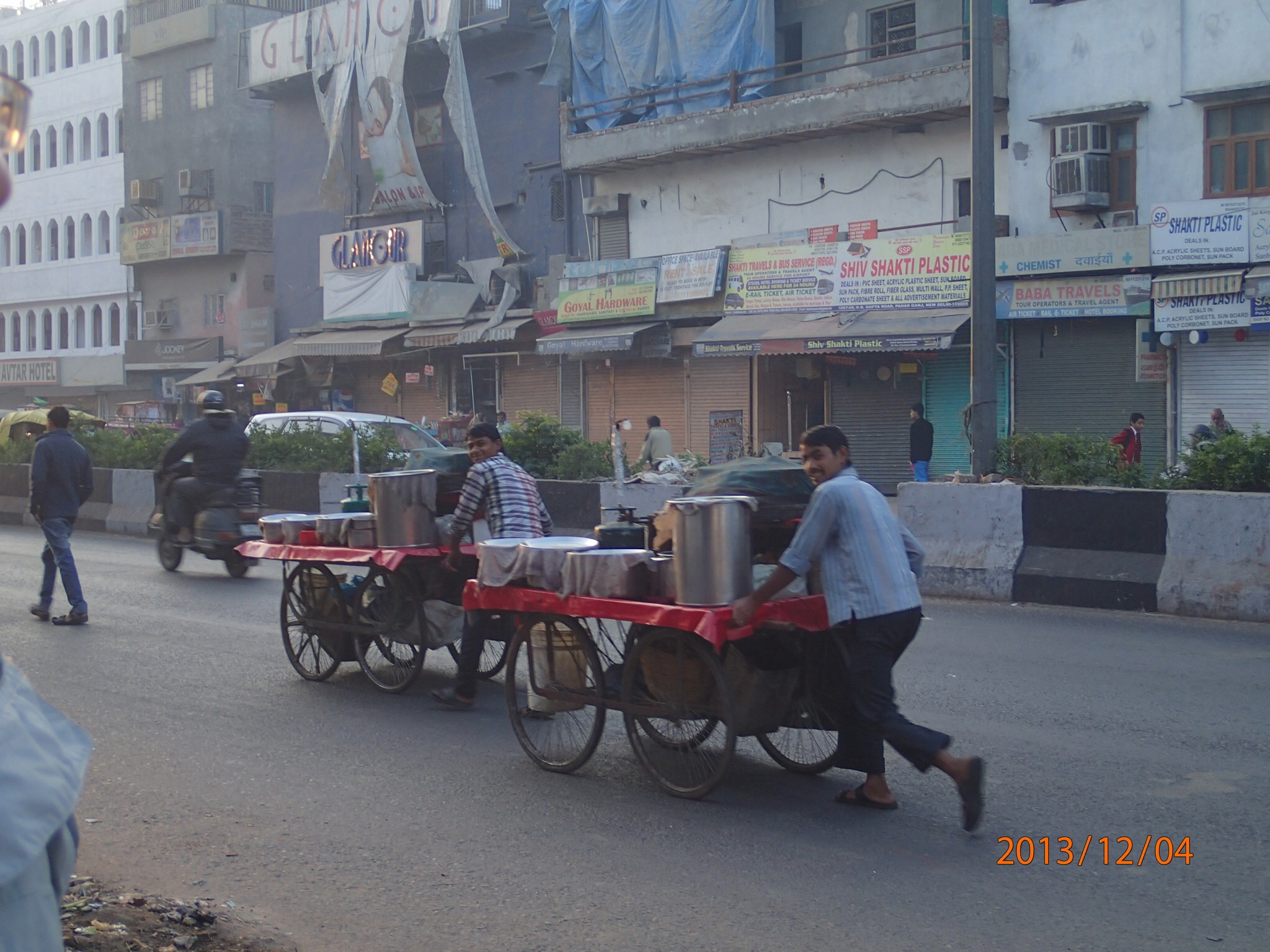 A peine avons nous fait quelques pas que nous sommes déjà interpellés par un rickshaw qui veut absolument nous conduire quelque part (on essayait pourtant de ne pas trop avoir l’air de touriste mais avec notre peau blanche comme neige….). On réussit tant bien que mal à le dissuader mais ce n’est que partie remise, ce jeune homme nous dit qu’il est travailleur social et qu’il va nous aider en nous envoyant dans un agence reconnue pour nous donner de l’information sur Delhi. Après quelques discussions et surtout voyant que d’autres attendaient probablement leur tour si on décourageait celui-ci, on décide d’accepter, nous voilà parti pour notre première expérience en rickshaw, wow on a aucune idée où il nous conduit, étrangement très peu de traffic, mais on apprend que c’est jour d’élection aujourd’hui et que presque tout est fermé jusqu’à 16:00. On arrive à un petite agence (il y en a partout) et c’est ouvert (hum????), on entre et après seulement quelques minutes on se rend bien compte que c’est bidon, donc on quitte ( méfiez vous s’il vous offre à boire, c’est seulement pour vous garder plus longtemps). On a pas fait cinq pas à l’extérieur que le cirque recommence ( je vous sauve les détails mais ce sera comme ça toute la journée!!!! Ouf!).
