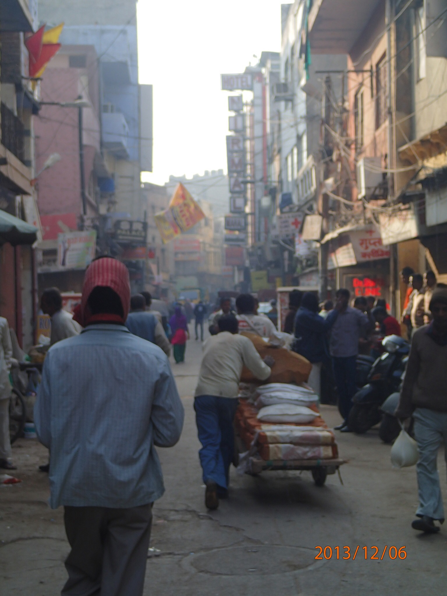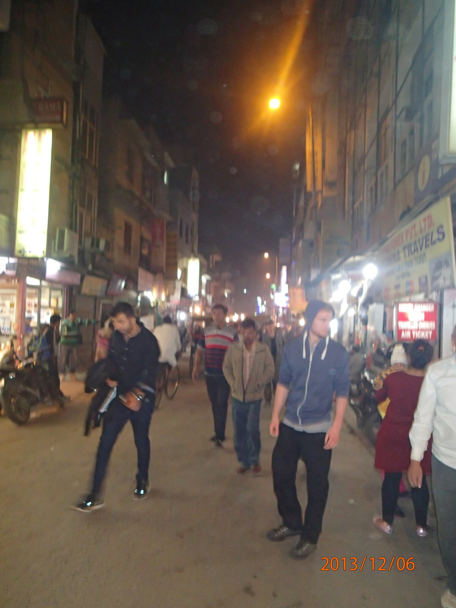 A notre 1ère sortie de l’hôtel et juste sur le balcon, un jeune Allemand nous interpèle pour discuté car il est aussi arrivé hier et c’est sa première expérience de voyage en Asie et seul ( vous qui pensiez que nous étions téméraires…disons qu’il n’a pas choisi son pays comme 1ere expérience). Après quelques secondes, il nous demande s’il peut se joindre à nous car il est très insécure (ben voyons Delhi intimidant? OUI). On accepte de bon gré. Et nous voilà à parcourir nos 1ers instants de voyage en trio avec notre nouvel ami Nick!