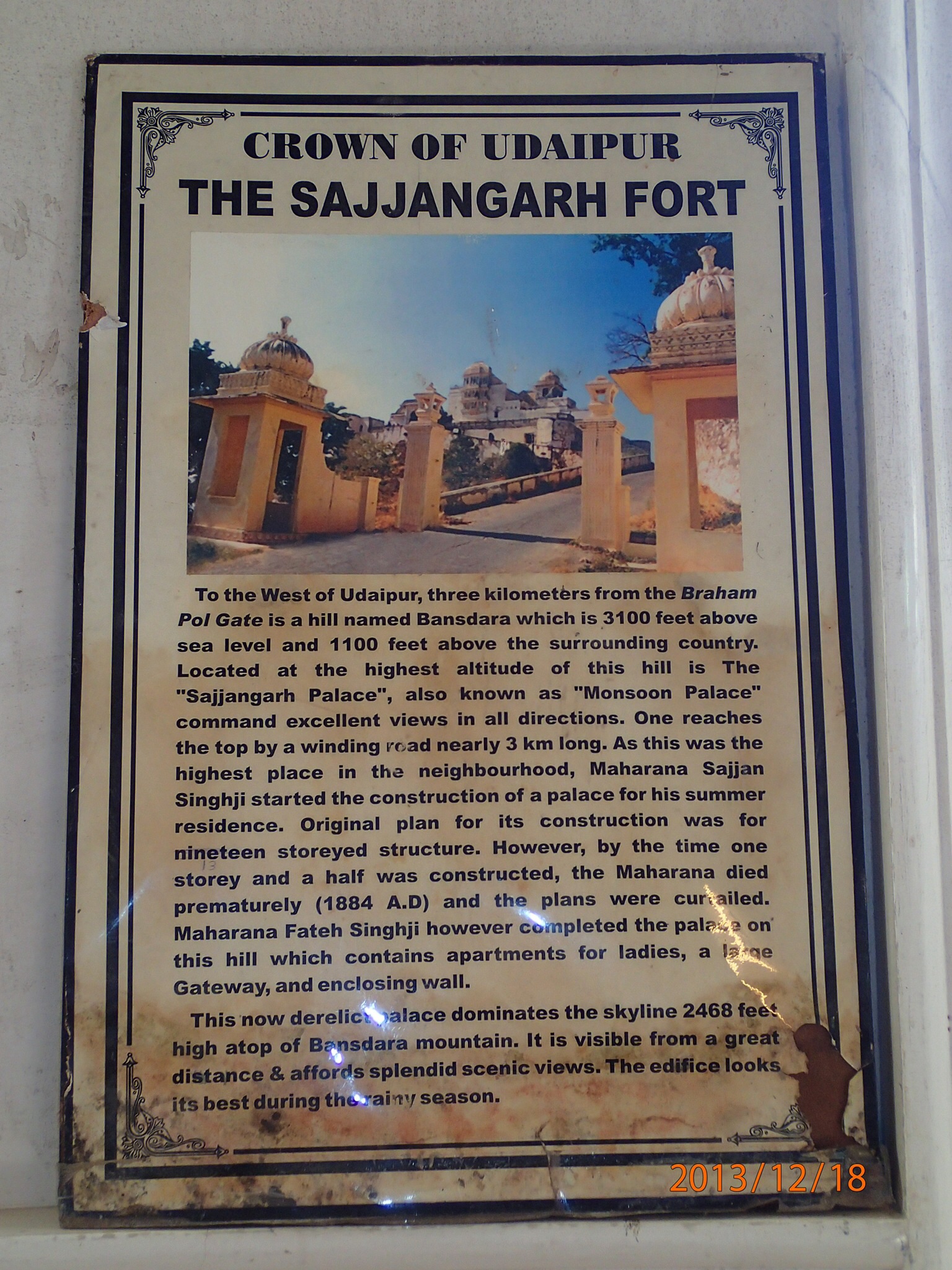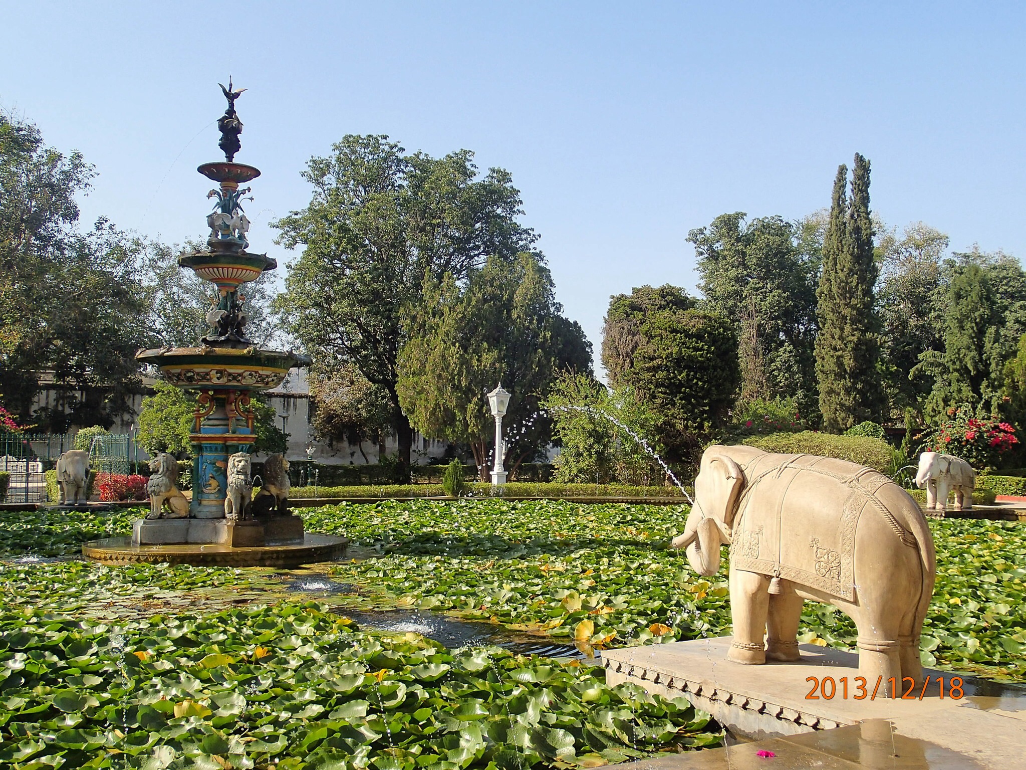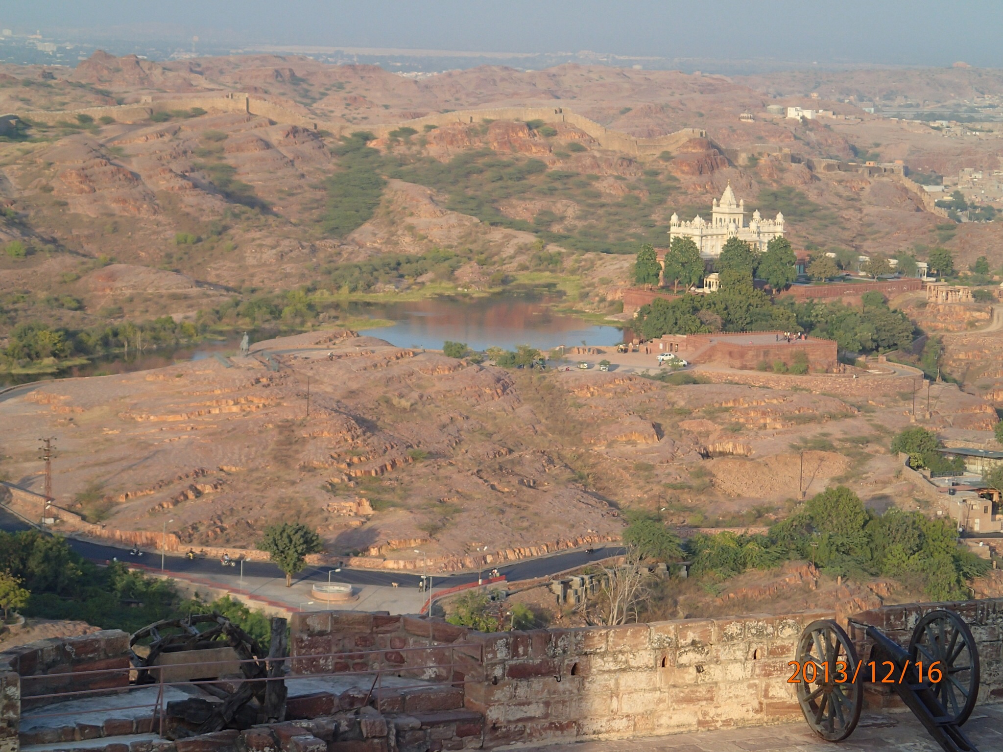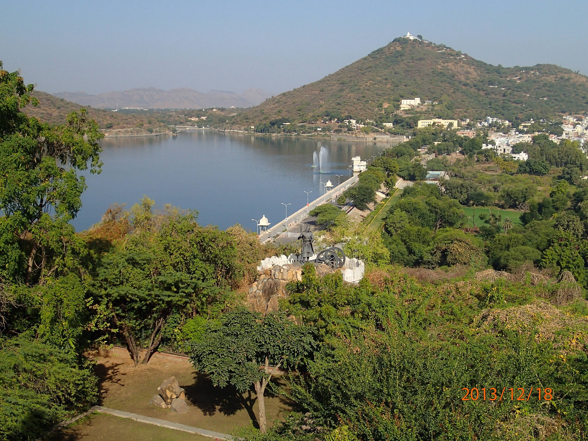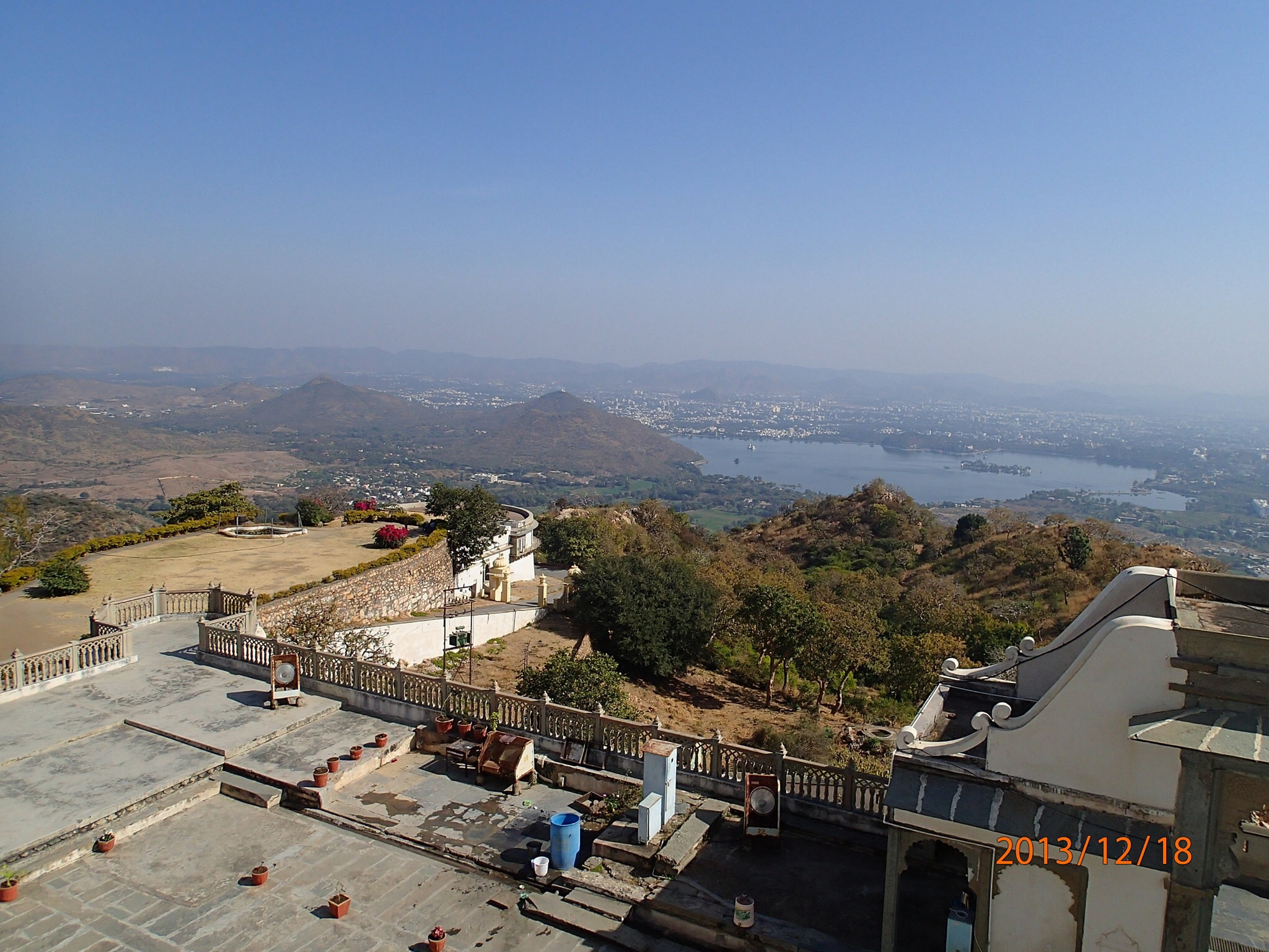 Jolie jardin a flanc de montagne courronné par la statut du Maharana sur sa monture tout aussi légendaire Chitak. Puis on se dirige vers Monson Palace situé sur la plus haute colline des alentours (1000m) et au milieu d’un sanctuaire de protection de la faune (un des rares en Inde). Le palais en soit n’a rien de fantastique mais en revanche il nous ouvre une fenêtre splendide de la ville, ses 2 lacs et les alentours, juste ça valait le détour!!!! Et les poignets magnétiques de Nath fonctionnent à merveille (car la montée en spirale à été un vrai test!!!) et plus de gravol depuis le début du tour!