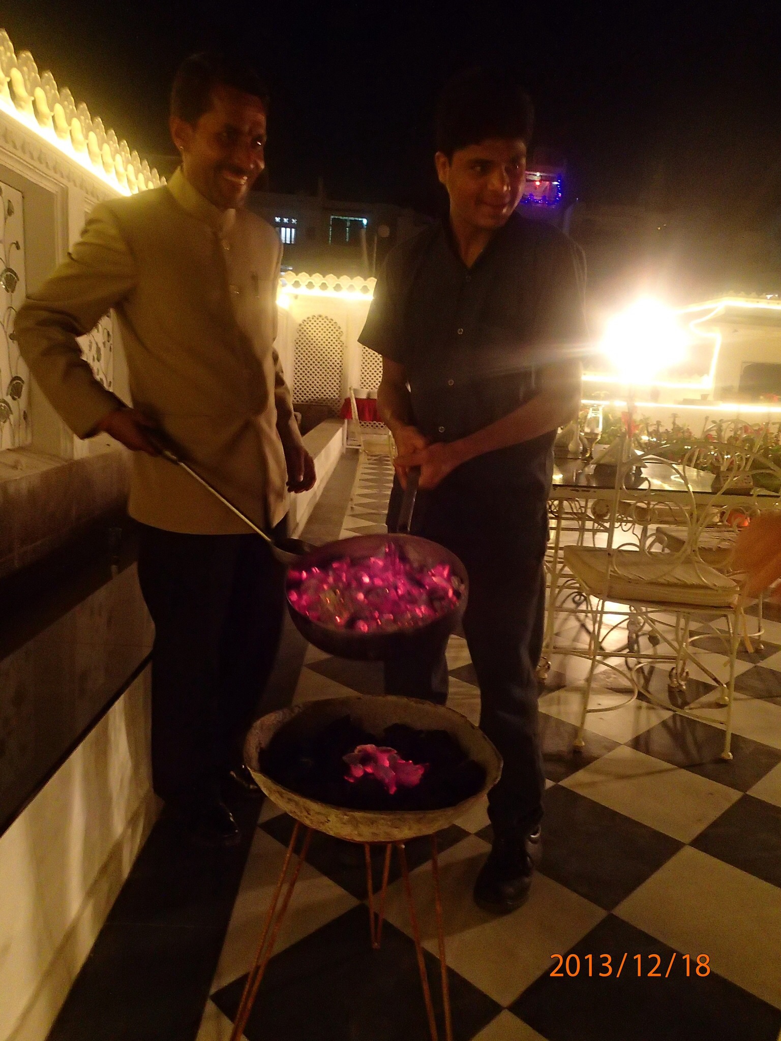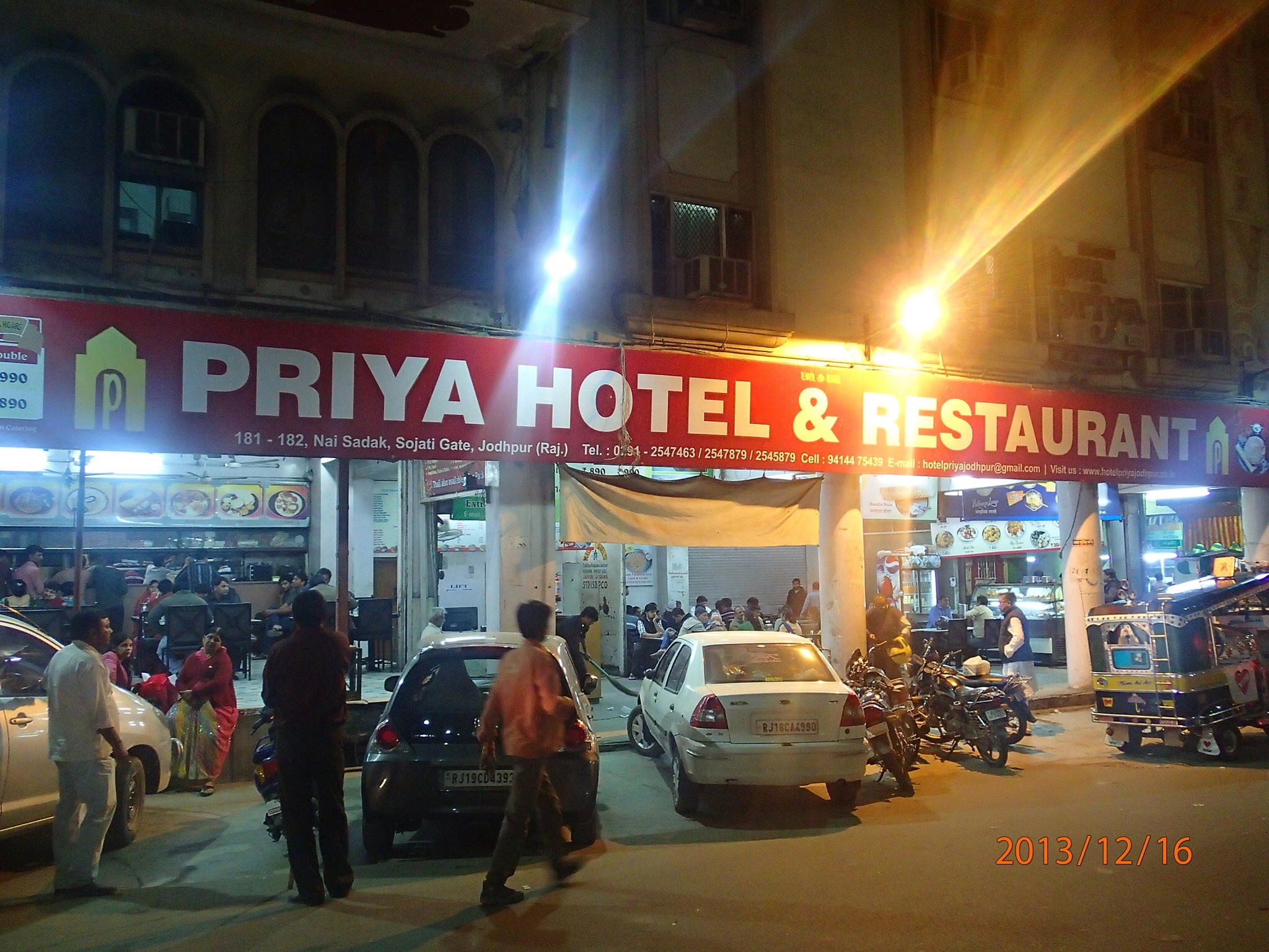 Ensuite enregistrement à notre hôtel miteux….bon on n’espère plus maintenant (typique des hôtels de l’agence gouvernementale RTDC, cher pour la qualité comparativement à ce que l’on peut trouver sur booking.com…). En soirée on va marcher dans les rues de la vieille ville vers Ghara. On arrête souper dans un petit resto (Priya) local recommandé dans le Routard (leur Mc Do quoi). Vraiment d’excellent Thali et pas dispendieux. Vers la fin du repas deux Hindoux viennent s’assoir à notre table pour discuter un brin, on échange et ils nous donnent quelques bons conseils, vraiment sympathique (un beau petit moment). Puis on va faire le tour de Ghaṇṭā – ghara, toutes les boutiques sont fermées mais on peu voir que ça doit grouiller fort d’activité durant la journée. Petite marche et dodo.