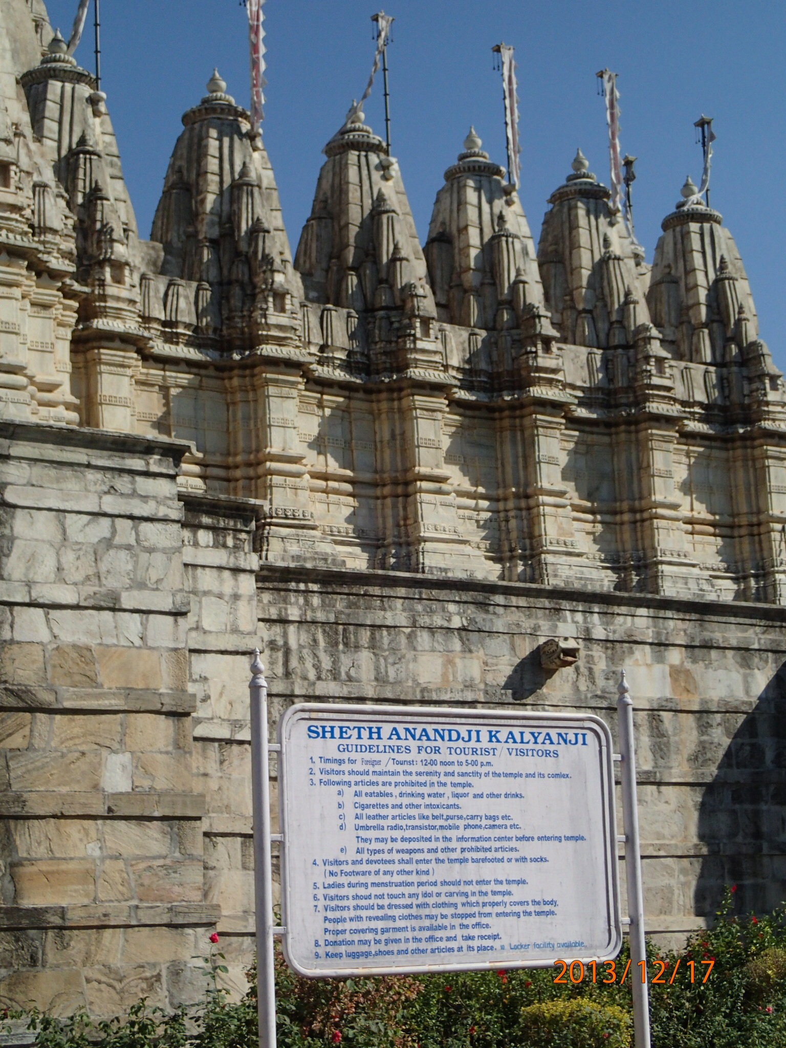 On prends la route pour Udaipur, à Ranakpur visite d’un magnifique temple Jaïn celui d’Adinath (coup de coeur de Nath). Constitué entre autre de 1,444 piliers, tout est en marbre finement sculpté à la perfection (enfin presque pcq pour les Jaïns seul Dieux est parfait, donc un seul pilier n’est pas droit…). Une sérénité se dégage de cet endroit mythique, on se croirait presque dans un film d’Indiana Jones!! Ajouter à cela le formidable travail architecturale et les plans que cela doit avoir nécessité ne fait que tendre cet endroit plus exceptionnel. Un MUST si vous visitez le Rajasthan. (il est meme ecrit sur un des panneaux a l’entree que les femmes menstruees ne peuvent entrer a l’interieur du temple…)