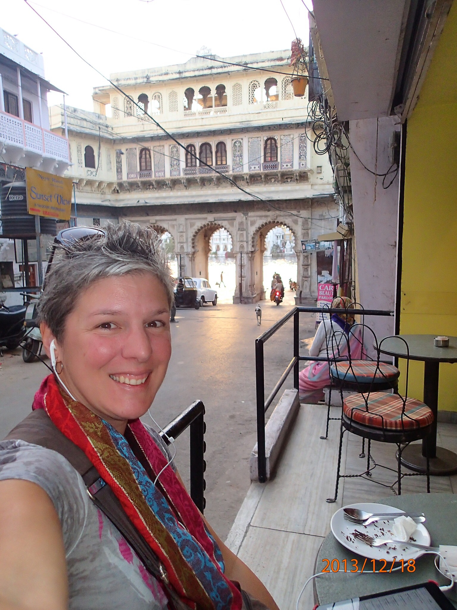 Ensuite, direction les lavandières sur le bord du lac et marche dans les rues de la vieille ville, wow ça ça fait du bien de se retrouver à notre rythme! Stop, dans un petit café (wifi disponible!) Nath en profite pour faire un coucou (skipe) à sa maman et Denis pour enfiler le dernier morceau du brownie, miam, Nath fait grrrrrr!. Un petit couple de Français, ayant entendu Nath parler à sa mère de nos prochaines destinations, nous donnent plusieurs info sur Varanasi (quand même sympa ces Français!!!)