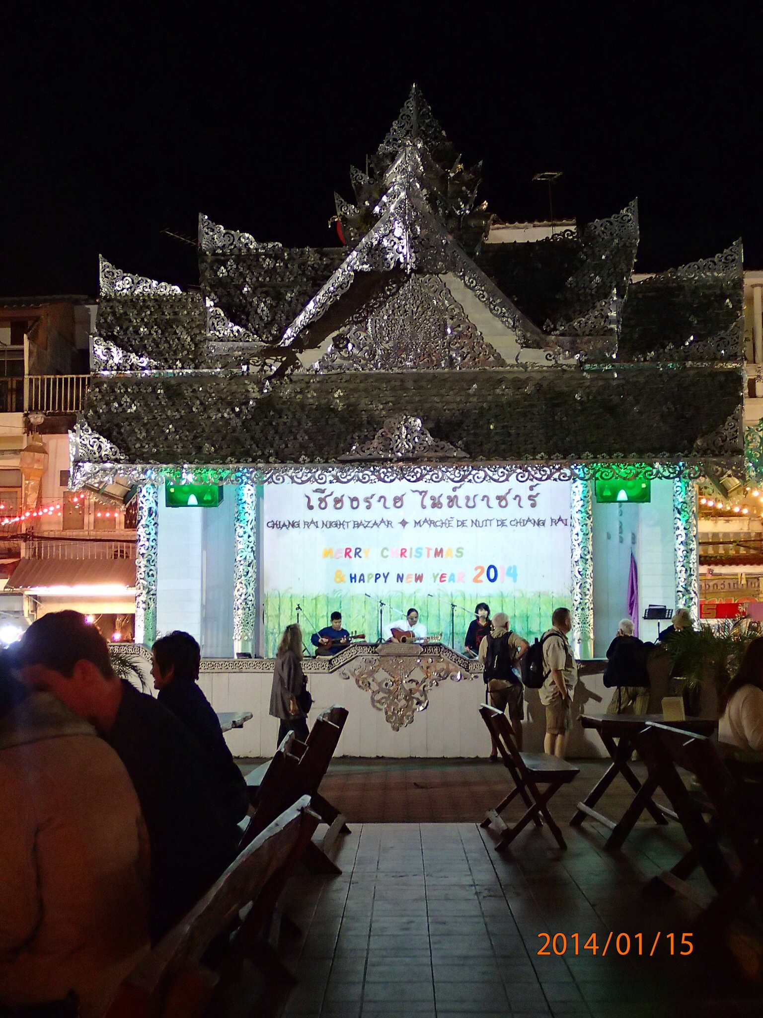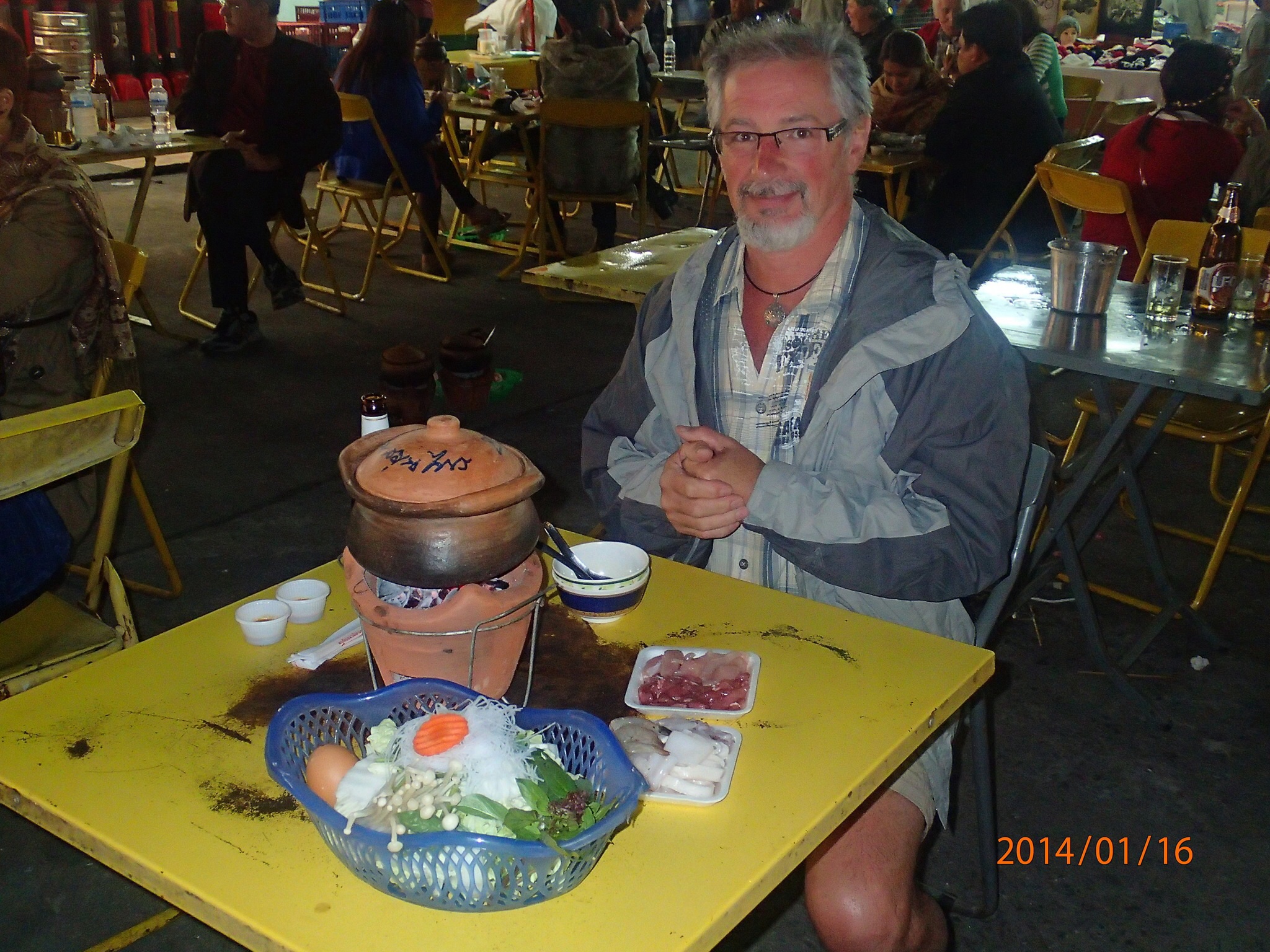 peu pendant que Denis lui va faire du social avec un couple de Français et une Ontarienne, bonne source d’information car ils ont tous beaucoup voyagés!!! Puis ce sera le départ pour nos vrais premiers pas ici! Direction le bazard de soir où se trouve une place centrale où on peut y manger tout en assistant à un spectacle d’artistes locaux. C’est très bien mais disons que pour le spectacle, la qualité des prestations varie significativement d’un numéro à l’autre! Visite éclair du marché et hop dodo!