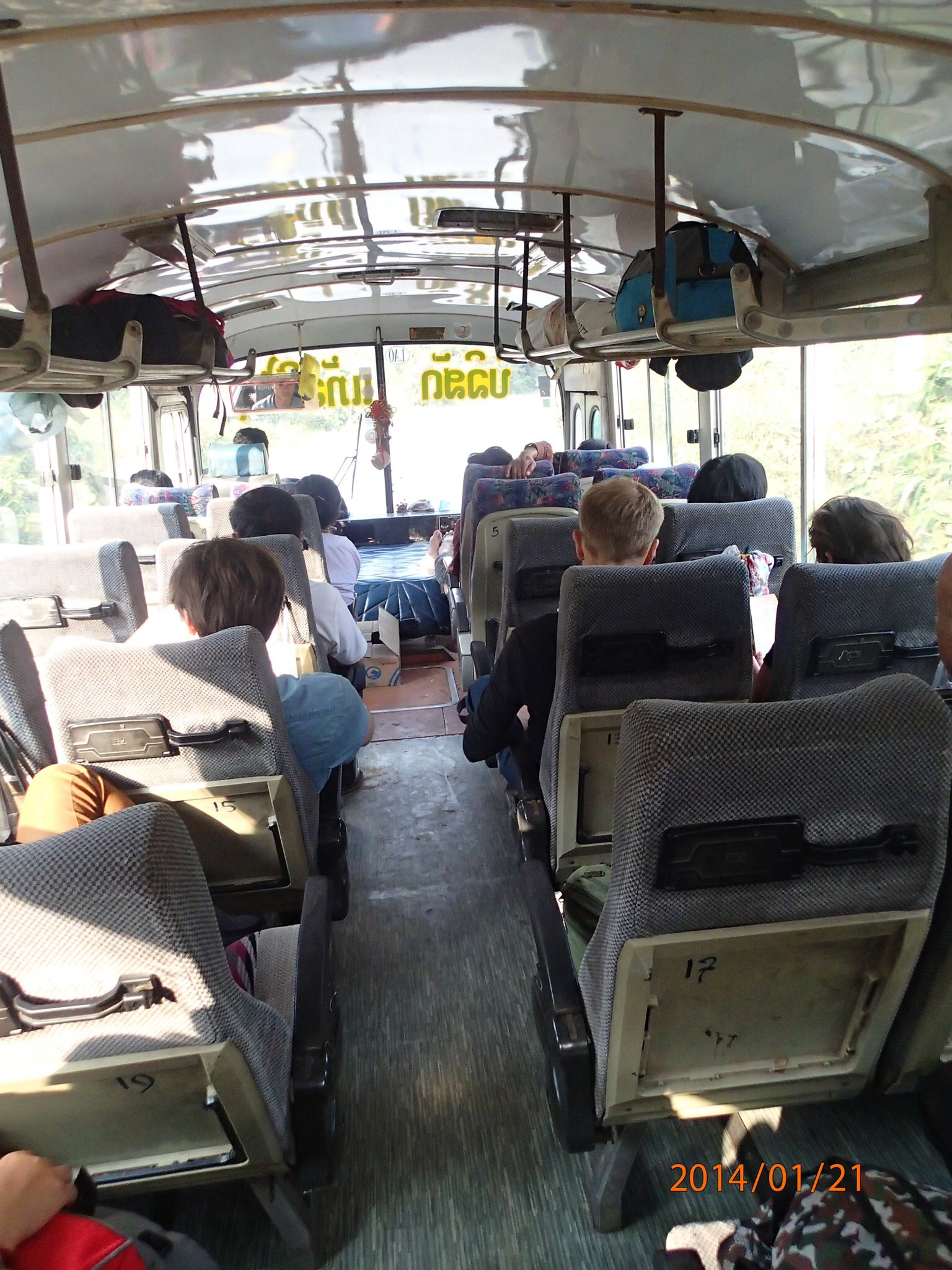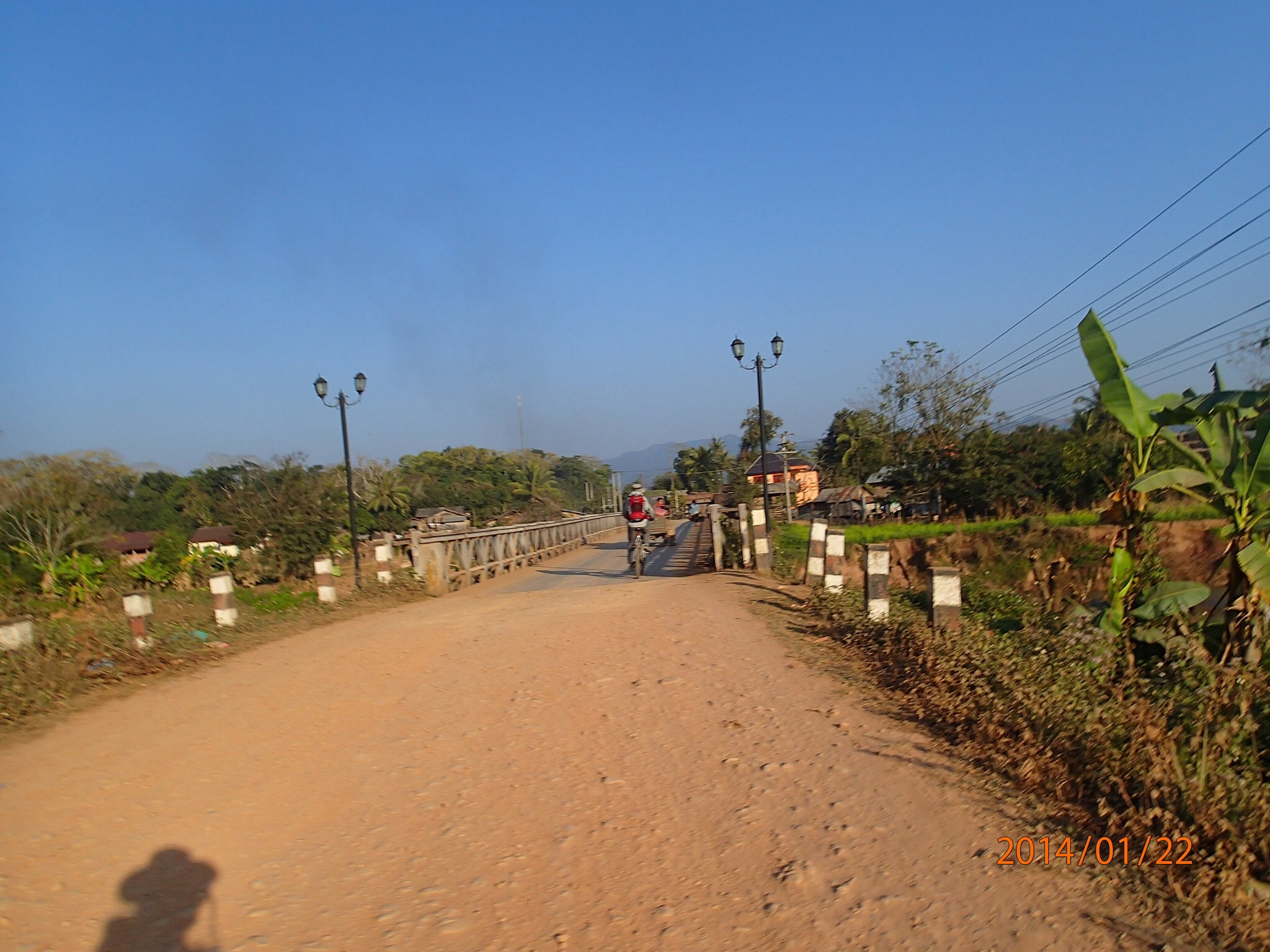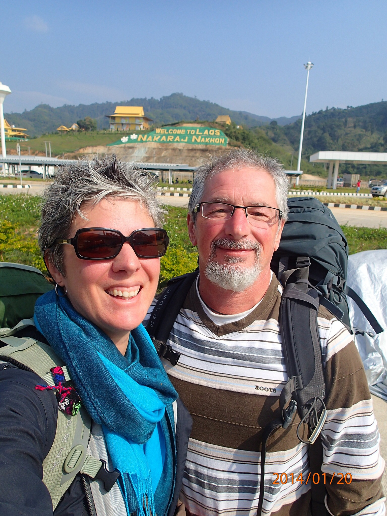 On y est après ~6hrs de bus et un passage de douanes quelques peu mêlant (oui, le bus nous débarque à la douane Thai (avec coût supp) devant le nouveau pont frontalier car le passage en bateau ne se fait plus. Là on doit prendre un autre bus (~1km) pour traverser la frontière (le Mekong) vers le poste frontalier du Laos avec attente de ~30 min le temps qu’il soit plein et ensuite demander notre visa de touriste. Quelque peu déroutant mais on finit par se retrouver! Puis c’est le taxi (dans la boite d’une camionnette) jusqu’à Huay Xai.Huay Xai