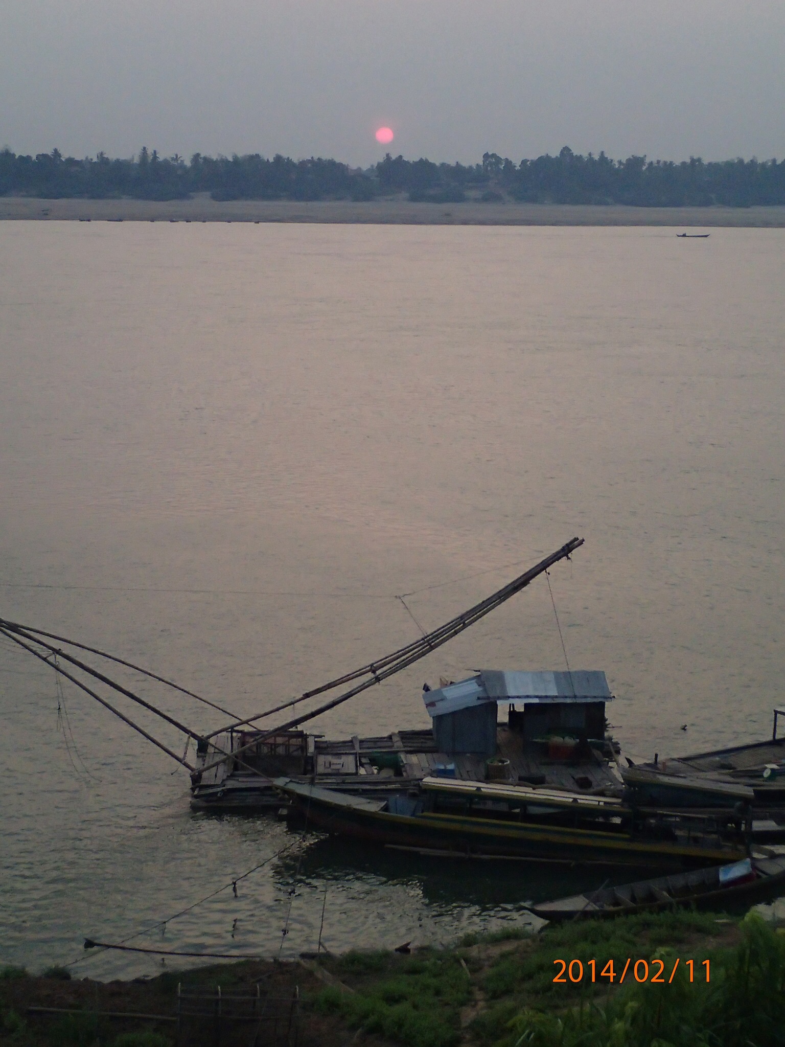Enfin on y est (il est 17h… et on est partie depuis 8h00) là c’est la chanson habituelle, les tuk-tuk nous assaillent mais on avait prévu le coup et on sait déjà que notre hôtel est à moins de 500m donc petite marche et on est rendu. Nath prend une pause pour faire descendre sa pression qui a été très durement mise à l’épreuve aujourd’hui. La tempête presque passée (même pas apprécié le beau coucher de soleil sur le Mékong droit devant nous!) on cherche un ATM mais presque personne ne parle Anglais et ils sont trop timide (voir effrayés) lorsqu’on les approche pour leur demander. Finalement une jeune, nous indique où (on a réalisé après que c’était à deux pas de l’hôtel mais on a juste pris la direction opposée à notre sortie de l’hôtel!!!).On reste ou on bouge?
