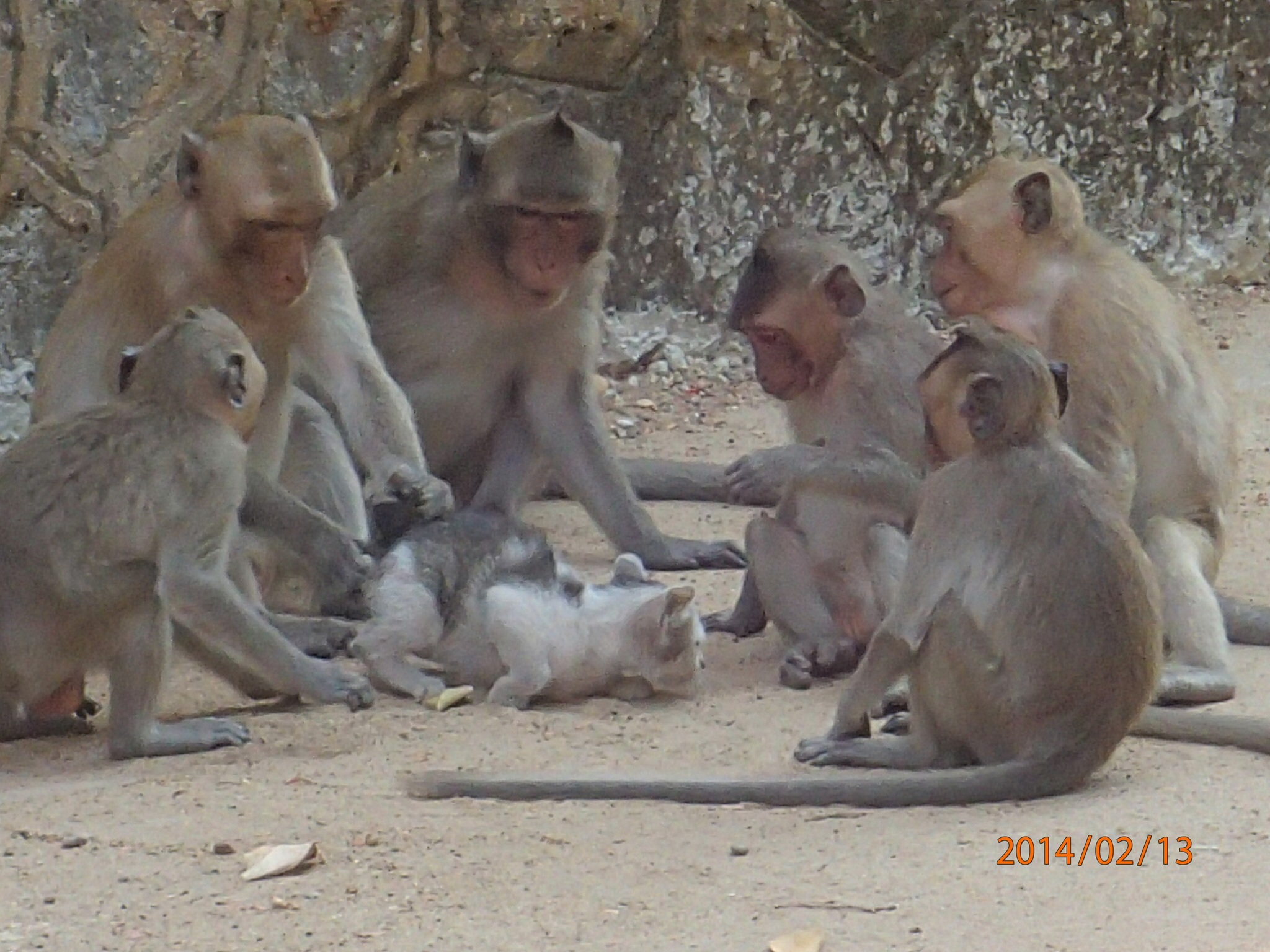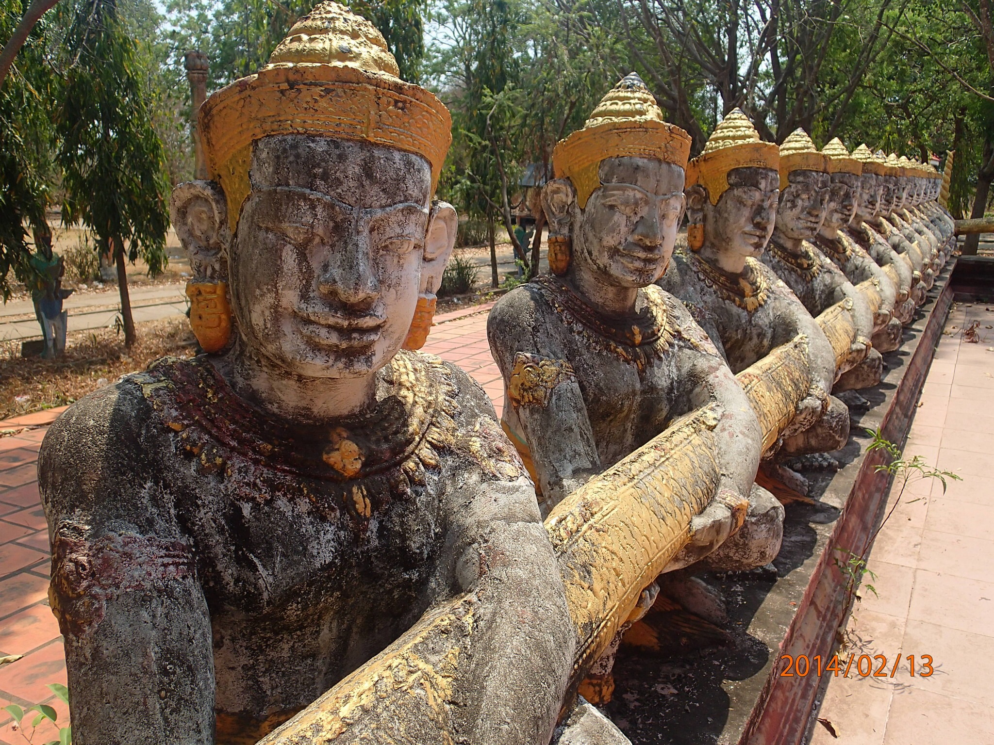 distinctes. Entre les deux, un genre de sanctuaire Bouddhiste très intéressant où on y retrouve même un immense Bouddha couché et puis une énorme tête avec 4 faces ( avec aucune indication sur celle-ci). En soit une très belle visite! On retraverse la route pour le village écotouristique de Cheungkok (Amica), cette fois pas de chance, on trouve bien l’entrée pour se rendre au village mais on roule au travers dans les rues sans aucune indication, après ~15min on retourne vers la route bredouille!!!!Bon ici c’est l’anecdote de Nath qui est traumatisée depuis….c’est que pendant notre visite, elle a vu ces mignons petits singes, que normalement elle affectionne beaucoup mais après le traitement qu’ils ont fait subir au pauvre petit minou, sa vision a beaucoup changé! Elle vous racontera dans le détail à notre retour! (Bien il faut bien garder un minimum de suspense, n’est-ce pas?)