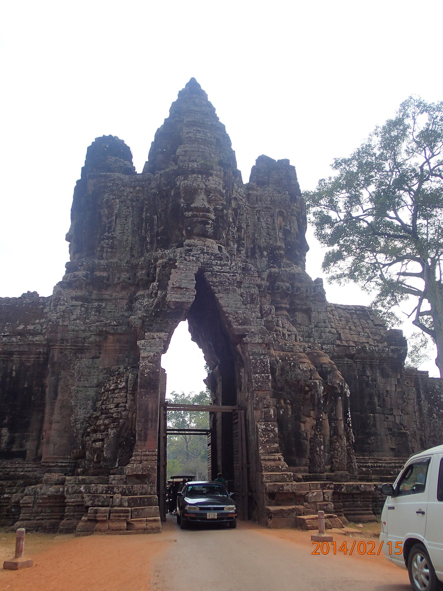 un long serpent (fameuse scène du barattage de la mer de lait représentée sur pas mal de monument) et que dire de l’arche de 23 m de haute servant de porte surmontée de mystérieux personnage à 4 visages incrustés dans la pierre, en tout cas de loin cela vous fait tout un effet magique et tellement mystérieux (surtout si comme nous, vous n’avez regarder aucunes images avant votre visite). Pas besoin de vous signaler que c’est un 1er coup de coeur!Le Bayon!!!