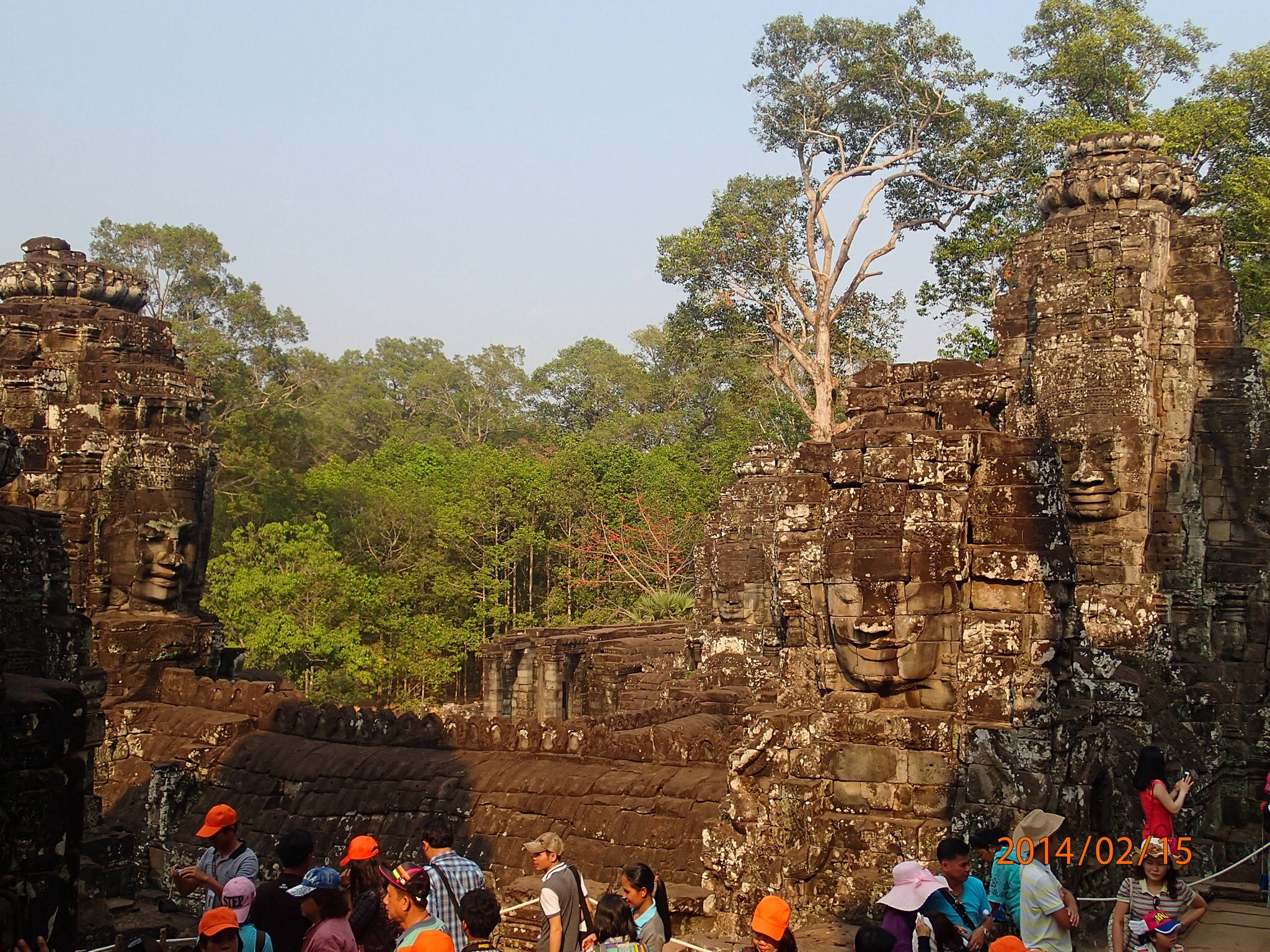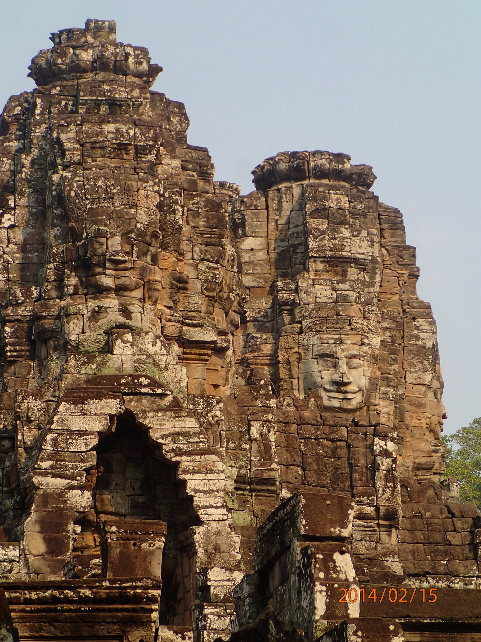 0 et aussi recharger les batteries un peu car il fait terriblement chaud et une insolation ne serait pas d’une grande aide! De retour au Bayon (qui signifie « la montagne magique »), quel folie que ce temple! Superbe ouvrage avec ses tours aux 4 visages (il en reste 37/54 originalement). Un dédale de couloirs et corridors, d’escaliers et de différents niveaux! 2e coup de coeurpour celui-ci!!! On se sent vraiment bizarre avec tous ces visages nous observant, cela devait être quelque chose à cette époque!