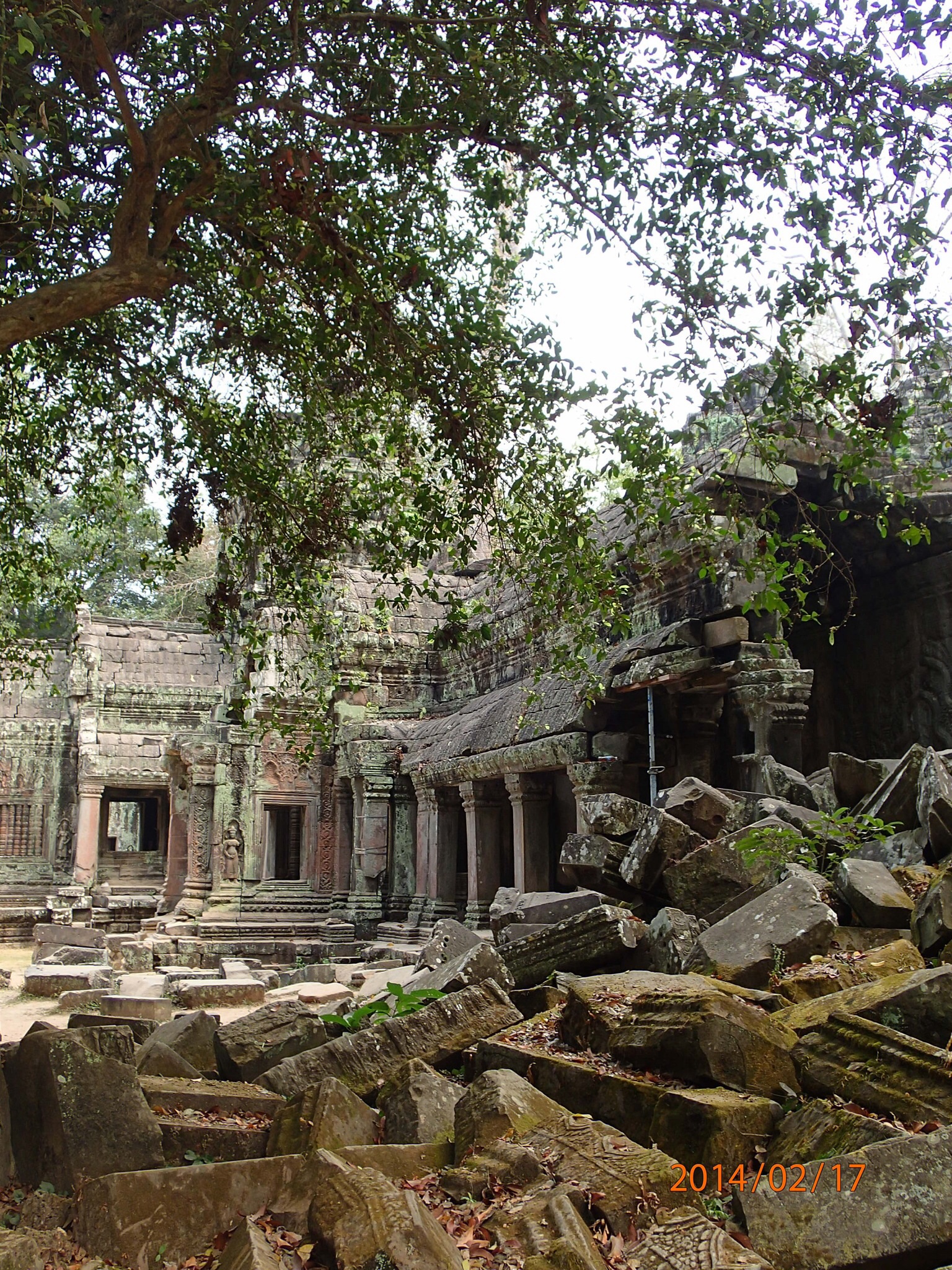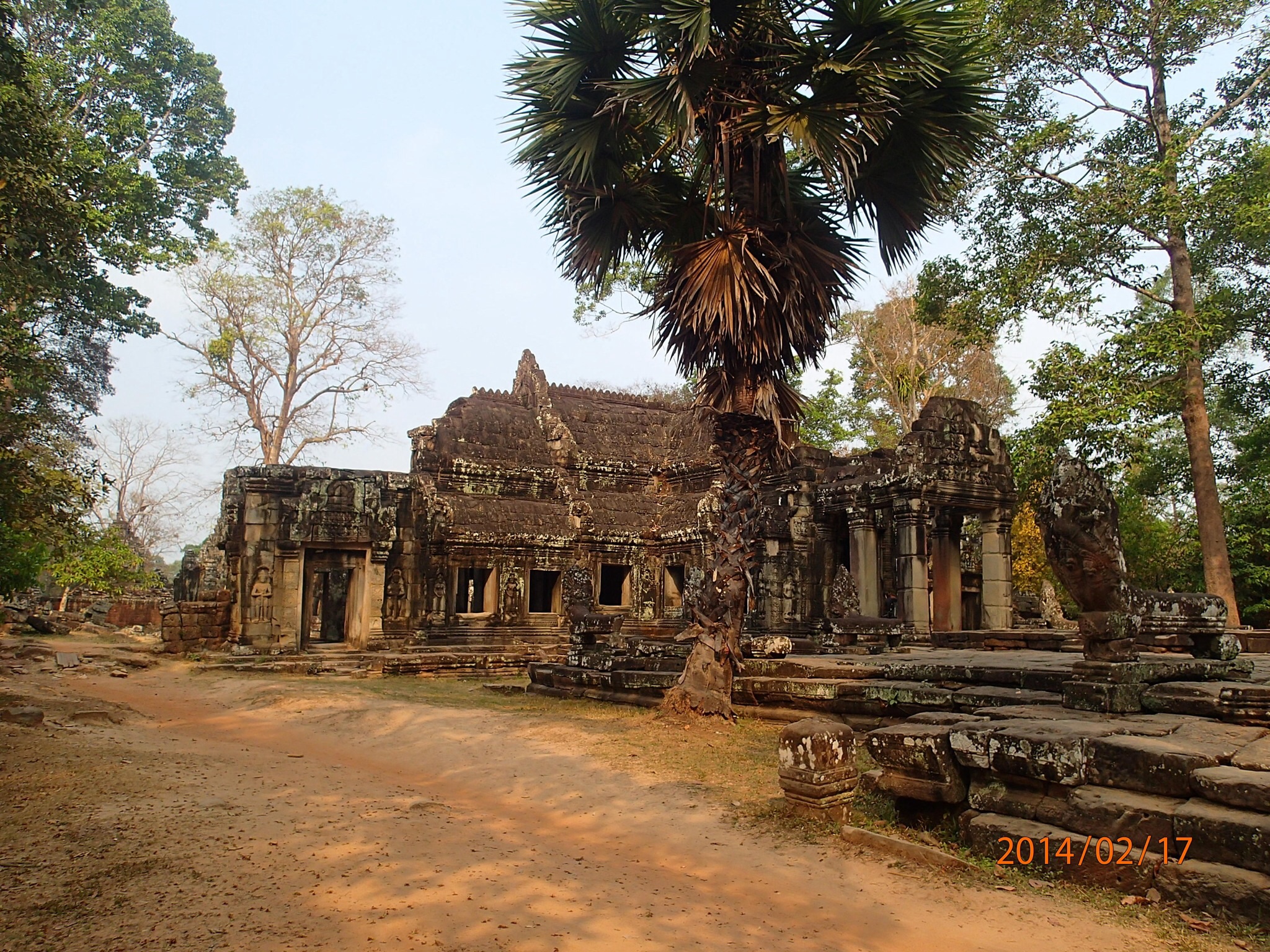 d’Angkor mais on ne fera que passé puisque le besoin naturel nous appelle et les toilettes ne sont pas disposer partout!Donc 1ère visite de la journée: Banteay Kdei, monastère Bouddhique caractérisé de bas reliefs sculptés sur les murs. Entouré