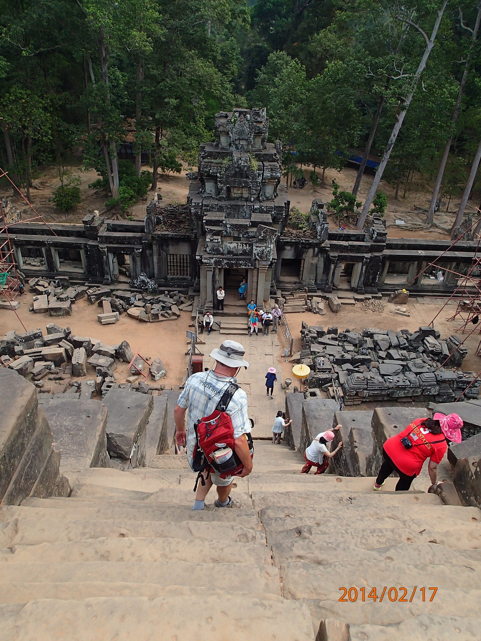 Maintenant le Ta Keo, autre temple pyramide haut d’environ 50 m, à son sommet quatre ouvertures couronnées d’une coupole abritant un espace de méditation, on se croirait presque au sommet du monde.