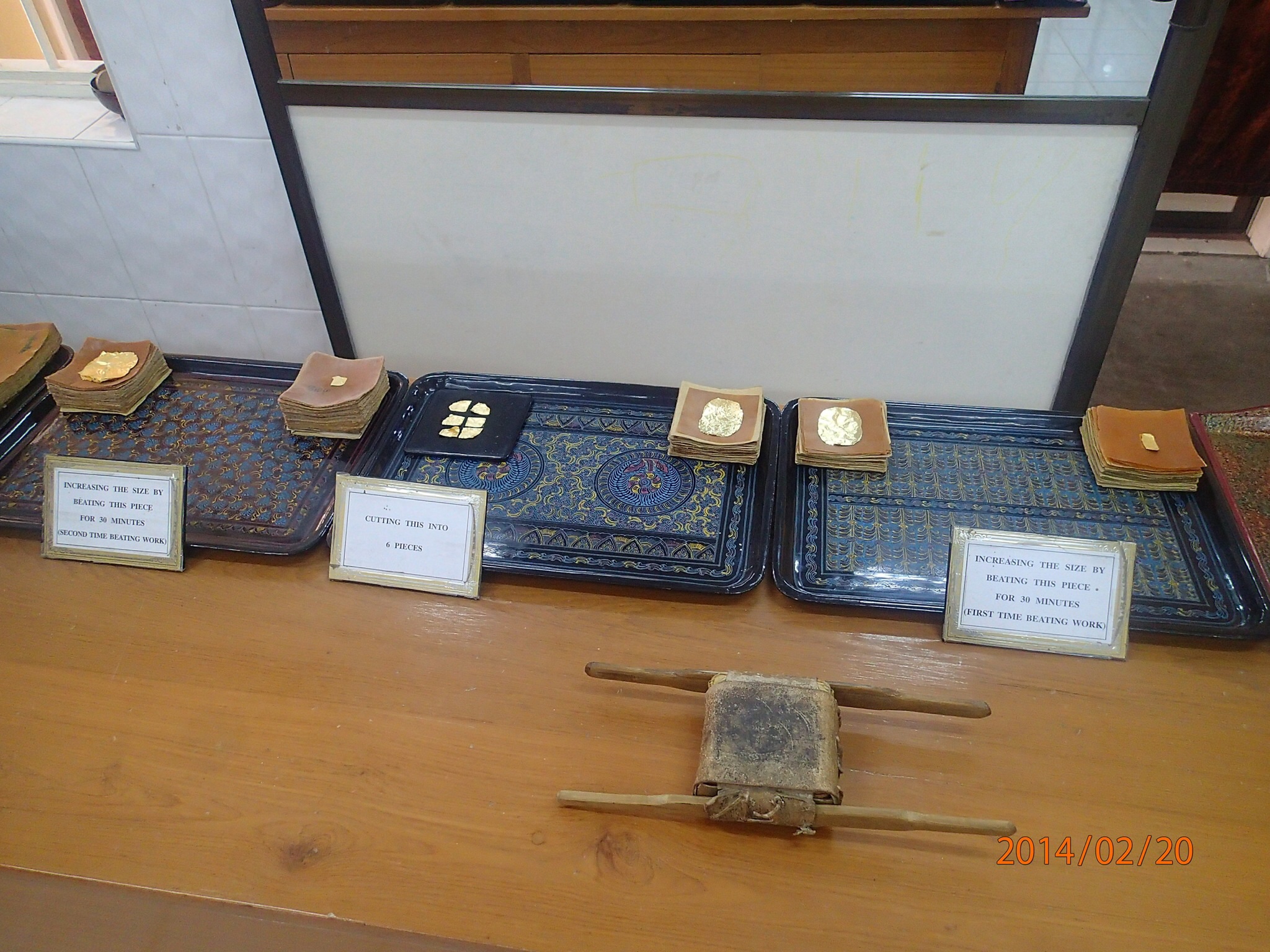 ès un rinçage excessif de la voiture, on effectue notre première visite: une fabrique de feuille d’or! Des gars en minijupes qui piochent selon une séquence assez rythmée sur un minuscule morceau d’or pour en faire une feuille très mince qui sera ensuite vendu pour être appliqué sur les nombreux monuments!