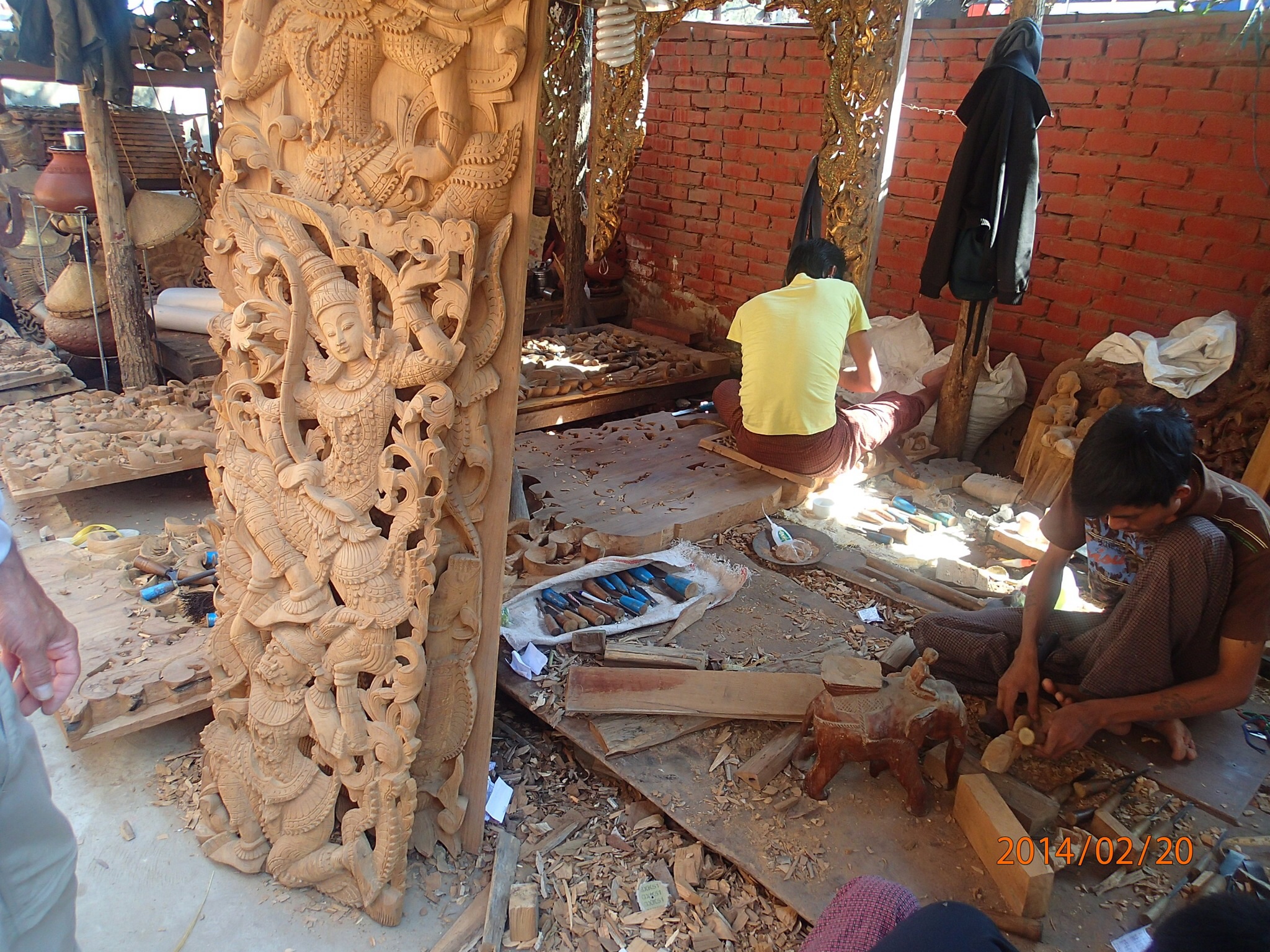 ès un rinçage excessif de la voiture, on effectue notre première visite: une fabrique de feuille d’or! Des gars en minijupes qui piochent selon une séquence assez rythmée sur un minuscule morceau d’or pour en faire une feuille très mince qui sera ensuite vendu pour être appliqué sur les nombreux monuments!Puis 2e visite: une ébénisterie. Ici aucun bruit seu