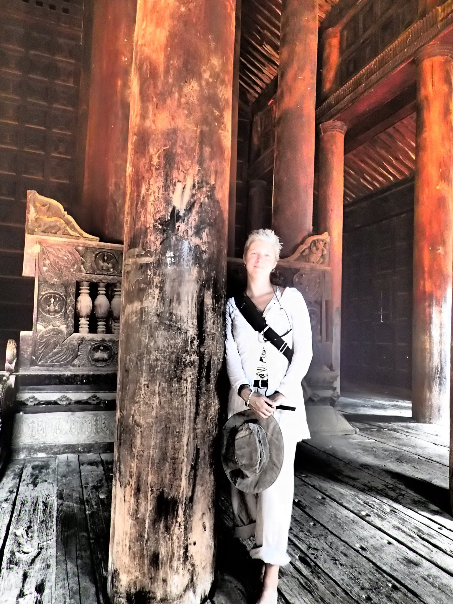 dame qui avait été si gentille hier et lui dire merci (rapidement car elle est très occupée), puis visite no.1: le Bouddha qui engraisse!!! Oui,oui, il parait que son volume à significativement augmenté et il est un peu difforme car ici les hommes (les femmes ne sont pas autorisées) viennent en grand nombre et de façon continue coller des feuilles d’or sur le Bouddha pour le remercier ou s’attirer des faveurs. À notre sortie, notre chauffeur n’est pas revenu encore alors Nath fait la lecture du temple pour se rendre compte que nous avons manqué plusieurs choses, on y retourne pour voir les statues khmer de bronze provenant du temple Angkor, le gong géant etc… Visite terminée, wow beaucoup plus que ce qu’on avait pensé!!!