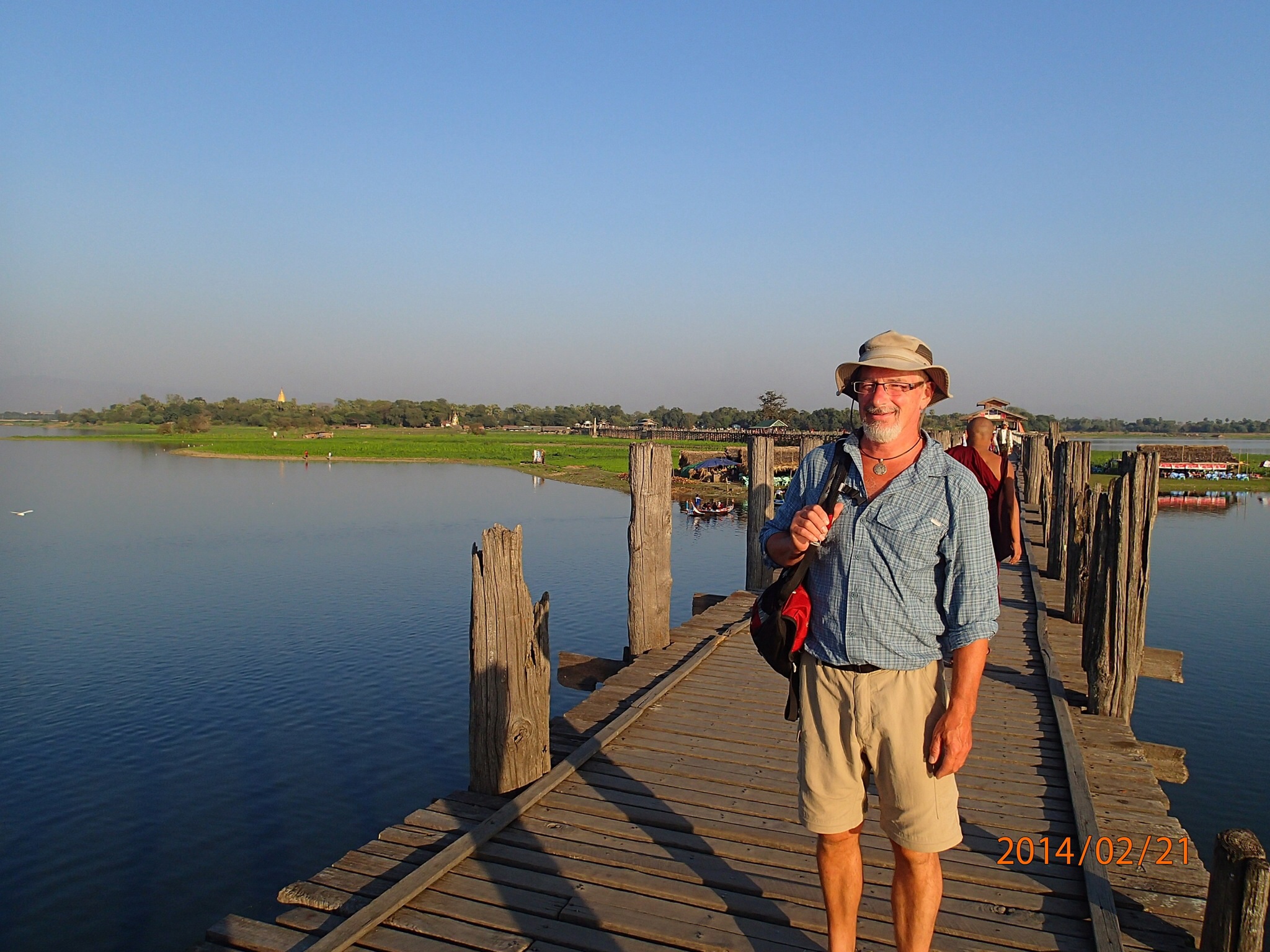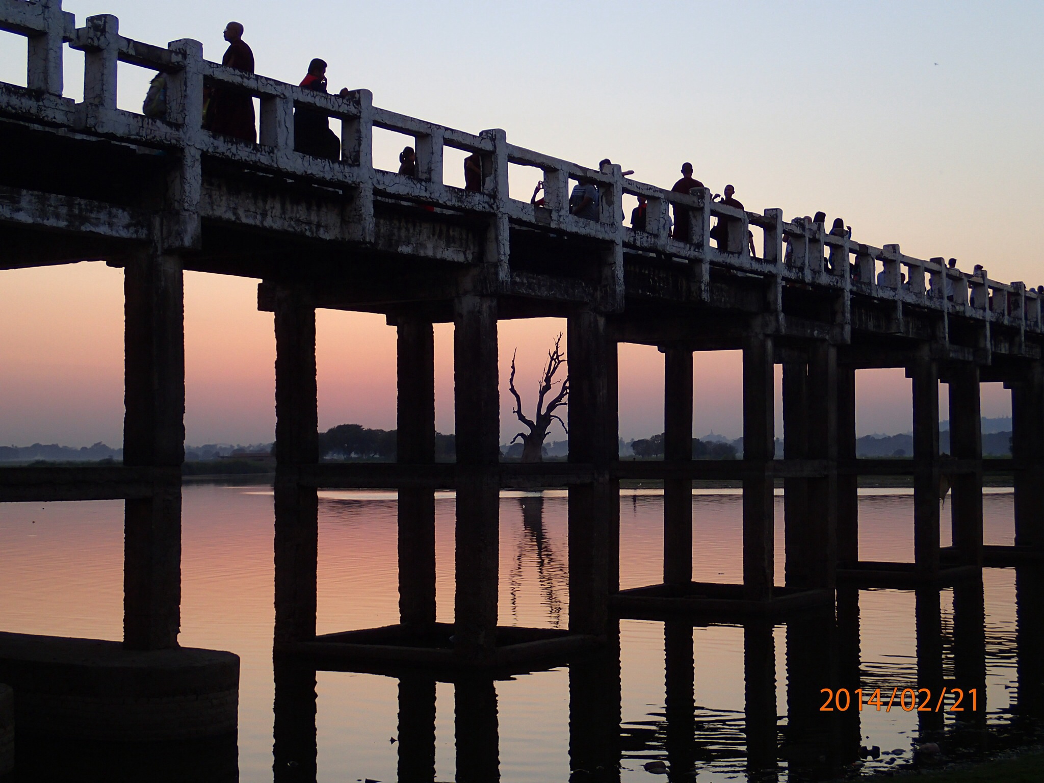 1849 où presque tout (presque car certaines portions sont en béton et on suppose que c’est dû au courant lors de la période des moussons) en Tek. Le pont décrit une demie lune et se termine sur l’autre rive du lac Taungthaman pour accéder à la pagode de Kyauktawgy, après une courte marche dans le village qui nous transporte vraiment hors du temps! Puis retour en observant le coucher de soleil lors de notre traversé de ce fabuleux pont!!! (…Notre coup de coeur)Retour au bercail