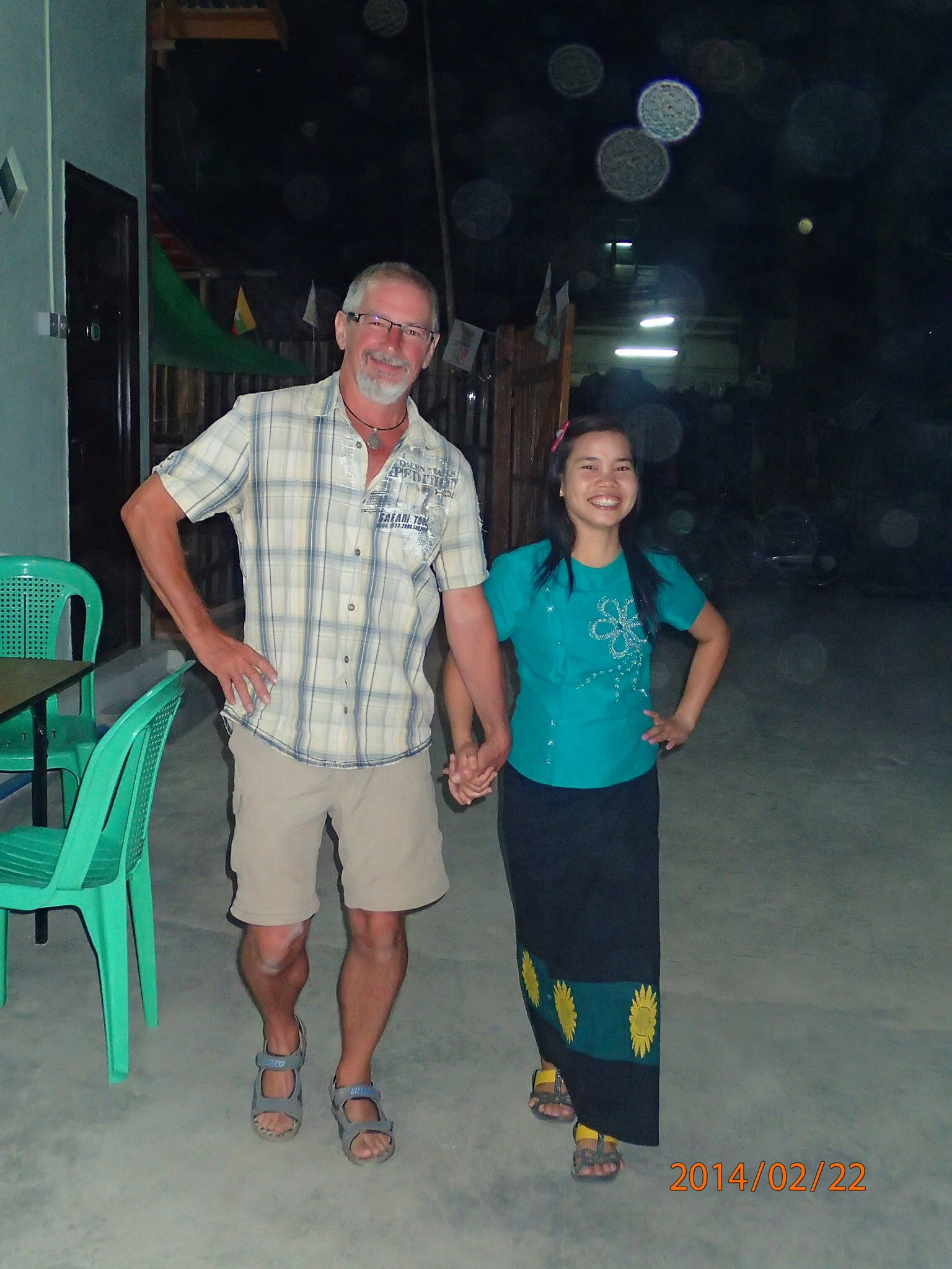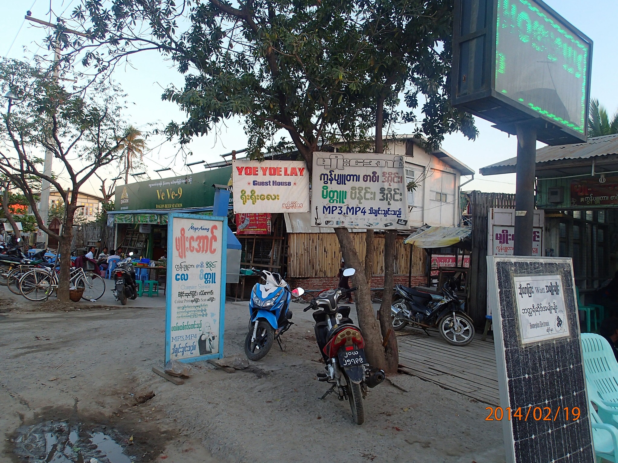 nous sert jus et plateau de fruits (dommage on viens de dîner!), on se croirait dans la réception d’un hôtel 4 étoiles!!! Bon la chambre est ordinaire mais très confortable (yoe yoe lay veut dire simple)! Après s’être rafraîchit on va faire un tour dans les environs, wow, le guest house étant excentré on se retrouve dans un village authentique presque directement en sortant. Là les gens nous examinent et nous font tous de gentils sourires et on leurs réponds « mingala ba » et ils ont l’air très surpris que des étrangers leurs disent bonjours dans leur langue et ils en