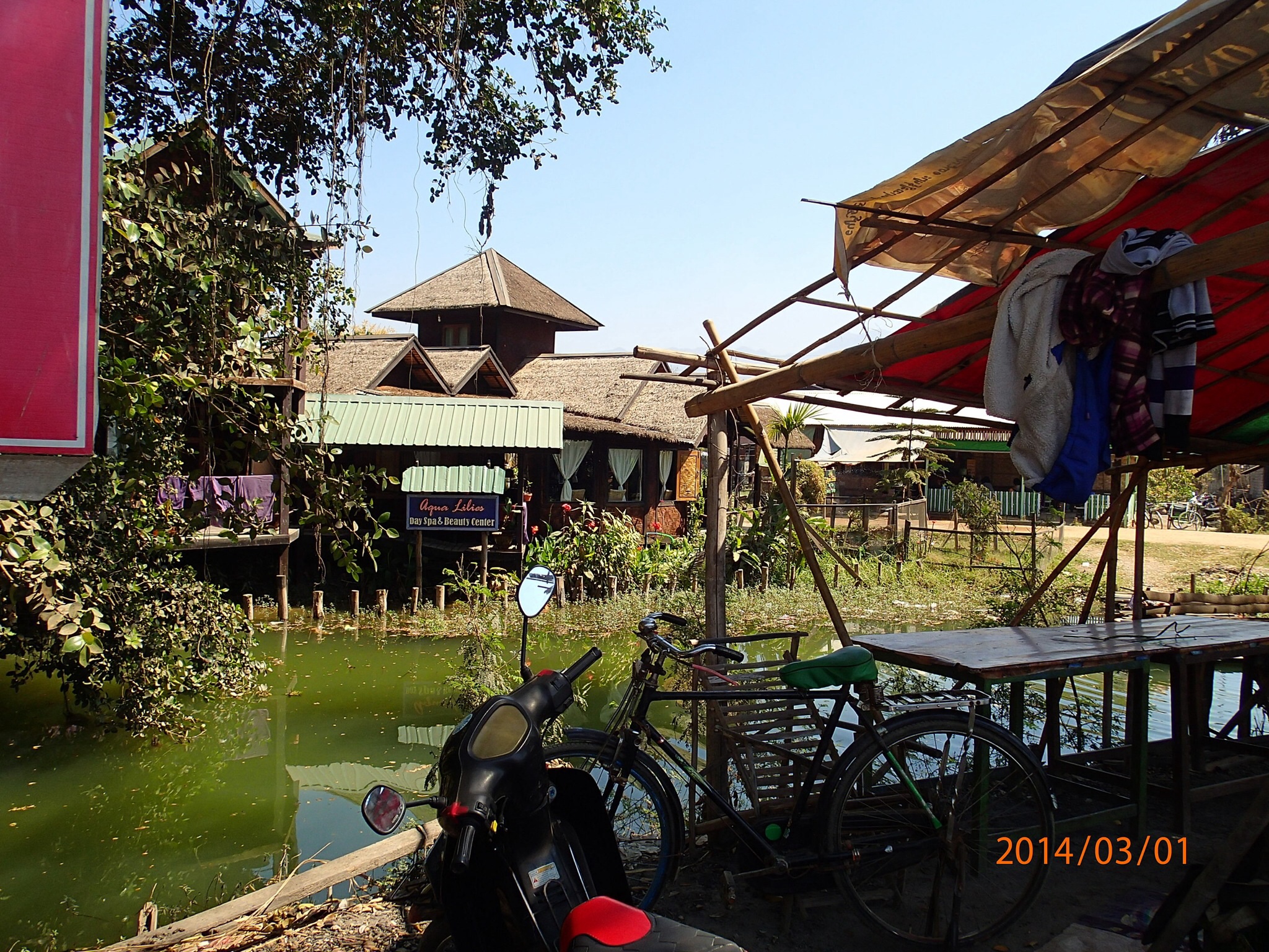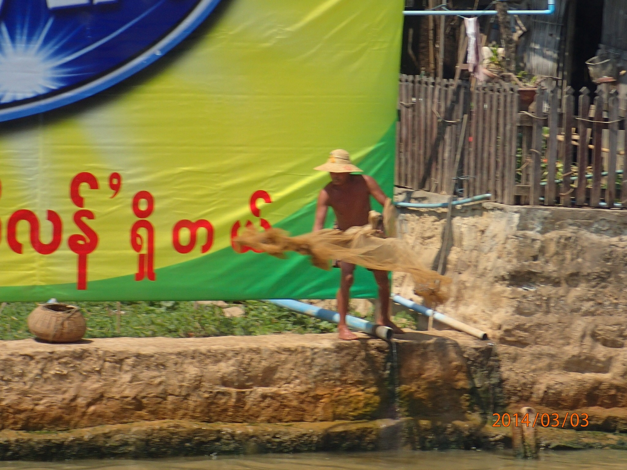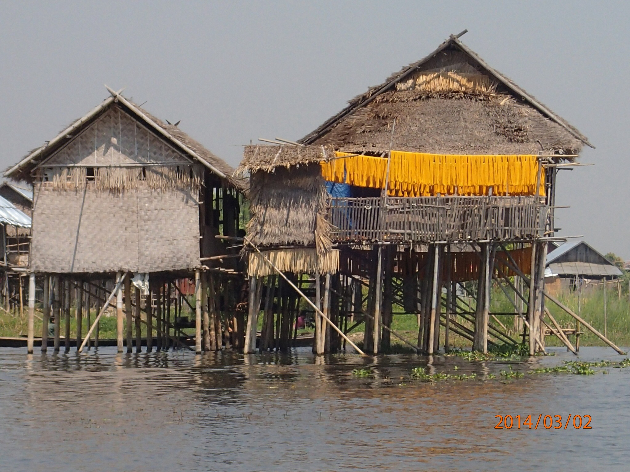 et tous les déchets de la ville (des milliers des touriste et de la population grandissante) s’y retrouvent, en plus de la prolifération des jacinthes d’eau et l’élargissement des jardins d’eau qui empiète sur l’éco système. Il est bien malade le lac des quatre villages (Inlé), les Intha (fils du lac) ne se rendent pas compte de ce qui s’en vient et on ne sait pas si le gouvernement a des plans en ce sens avant qu’il ne soit trop tard! Le Lac aurait perdu plus du tier de sa surface entre 1952 et 2012!