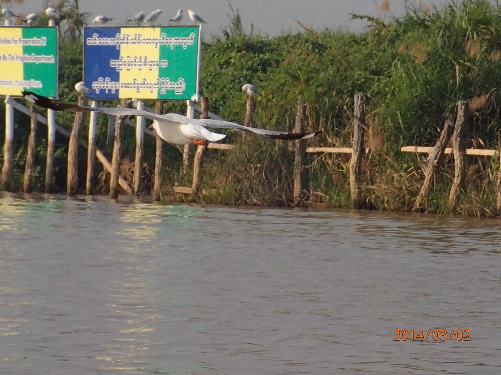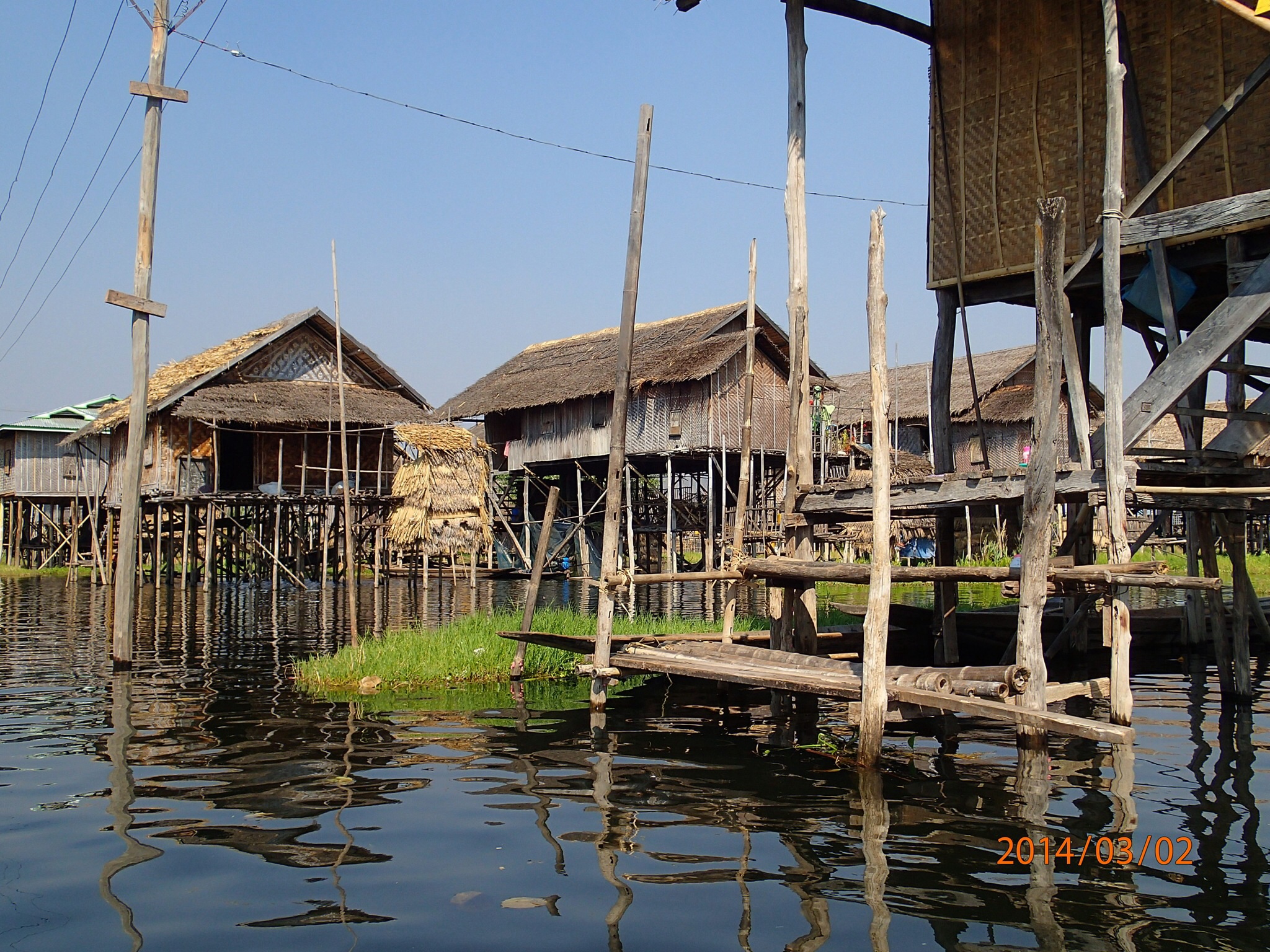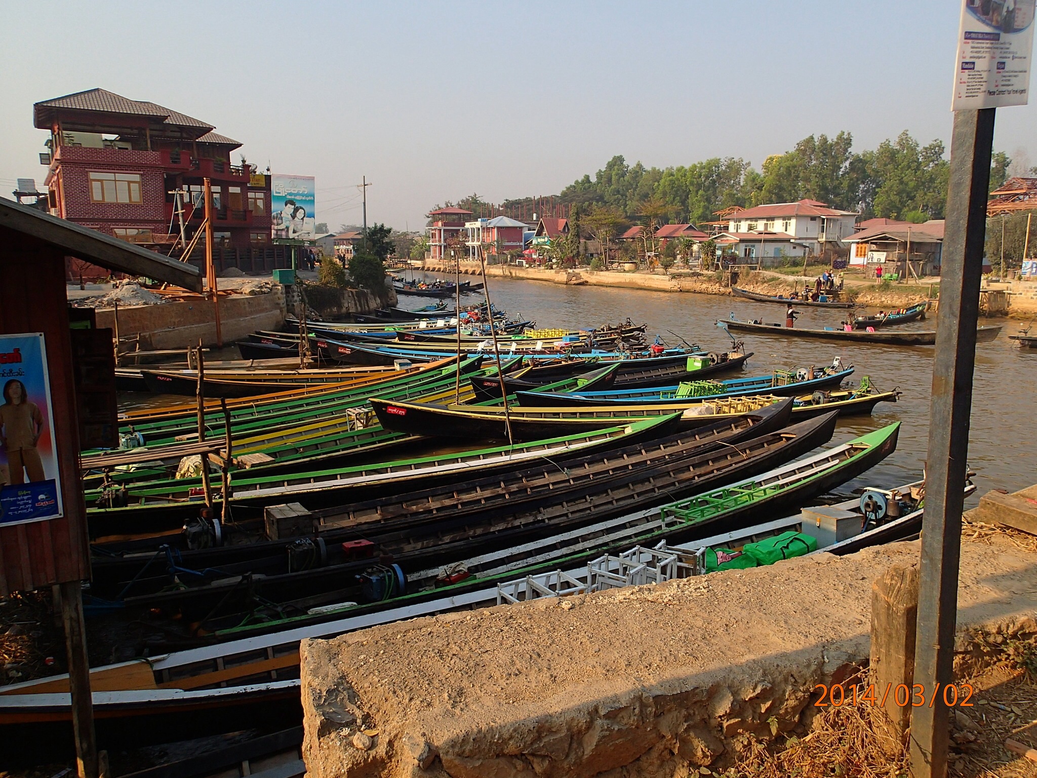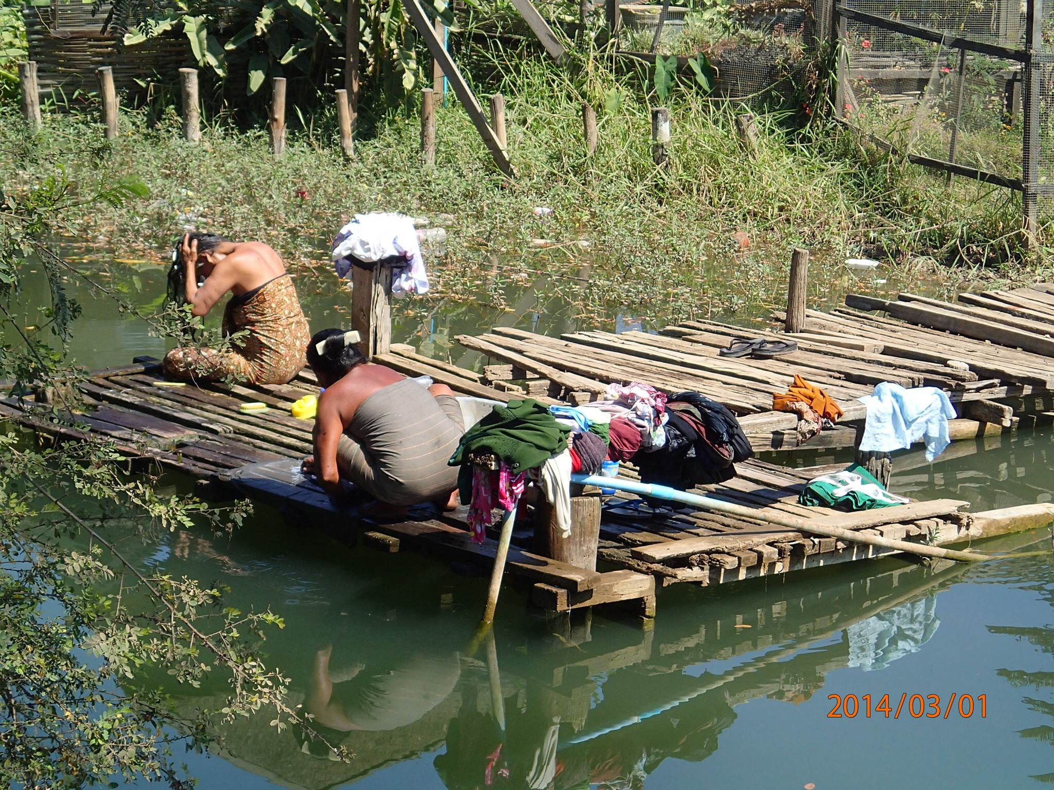 et tous les déchets de la ville (des milliers des touriste et de la population grandissante) s’y retrouvent, en plus de la prolifération des jacinthes d’eau et l’élargissement des jardins d’eau qui empiète sur l’éco système. Il est bien malade le lac des quatre villages (Inlé), les Intha (fils du lac) ne se rendent pas compte de ce qui s’en vient et on ne sait pas si le gouvernement a des plans en ce sens avant qu’il ne soit trop tard! Le Lac aurait perdu plus du tier de sa surface entre 1952 et 2012!