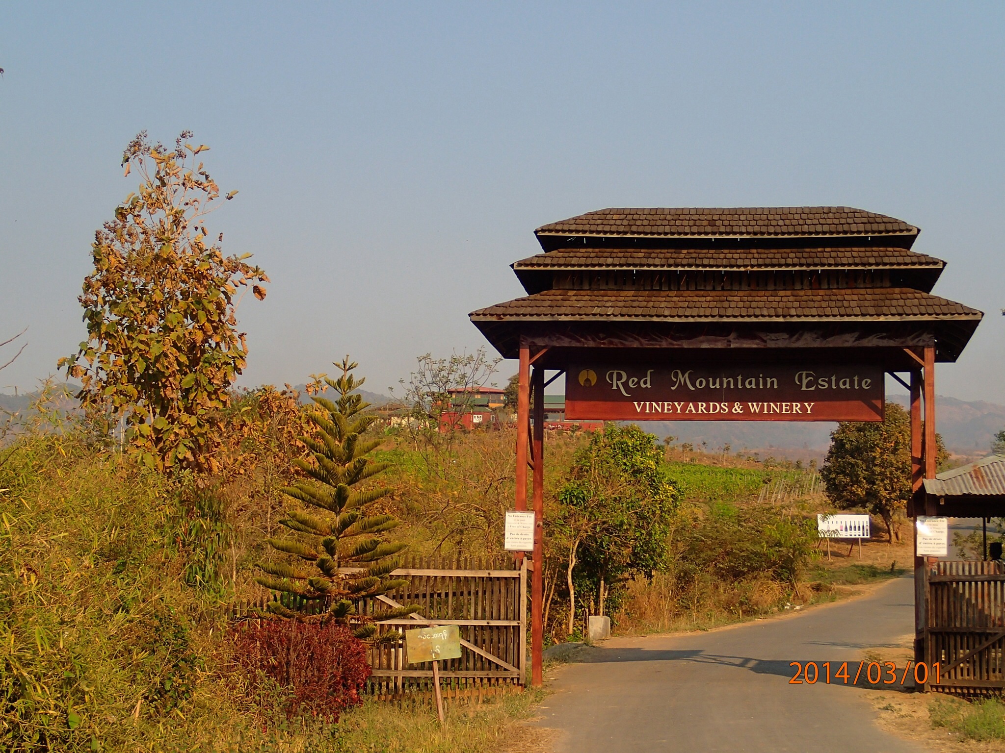 doit replacer son nouveau longyi qui cherche à ouvrir toutes les 30sec.(et ce même si on a essayer de le barrer avec des clips!). Nous arrivons finalement au Red Mountain Estate(oui, oui ce n’est pas une autre ethnie mais bien un vignoble!!!). Ahhhhhhh enfin du vin et bon par dessus tout. Le vignoble ici a été créé par un Allemand qui s’est associé avec un Français et qui produisent des vins rouge, blanc et de dessert pas piquer des vers. En plus il semblerait (car nous n’avons pas pu faire la visite des installations) que les installations feraient mourir d’envie plusieurs Français! Après avoir manger au resto du vignoble, déguster 2 verres de Shiraz de leur cru et acheté 2 bouteilles, on reprend nos vélos pour le retour!!!On arrête dans une agence (référence routard le Thu Thu travel) pour acheter nos billets de bus et d’avion pour notre prochaine destination…..Souper resto près du guest house et publication d’un article du blog (Nath est bien contente!!!) et hop dodo!!!