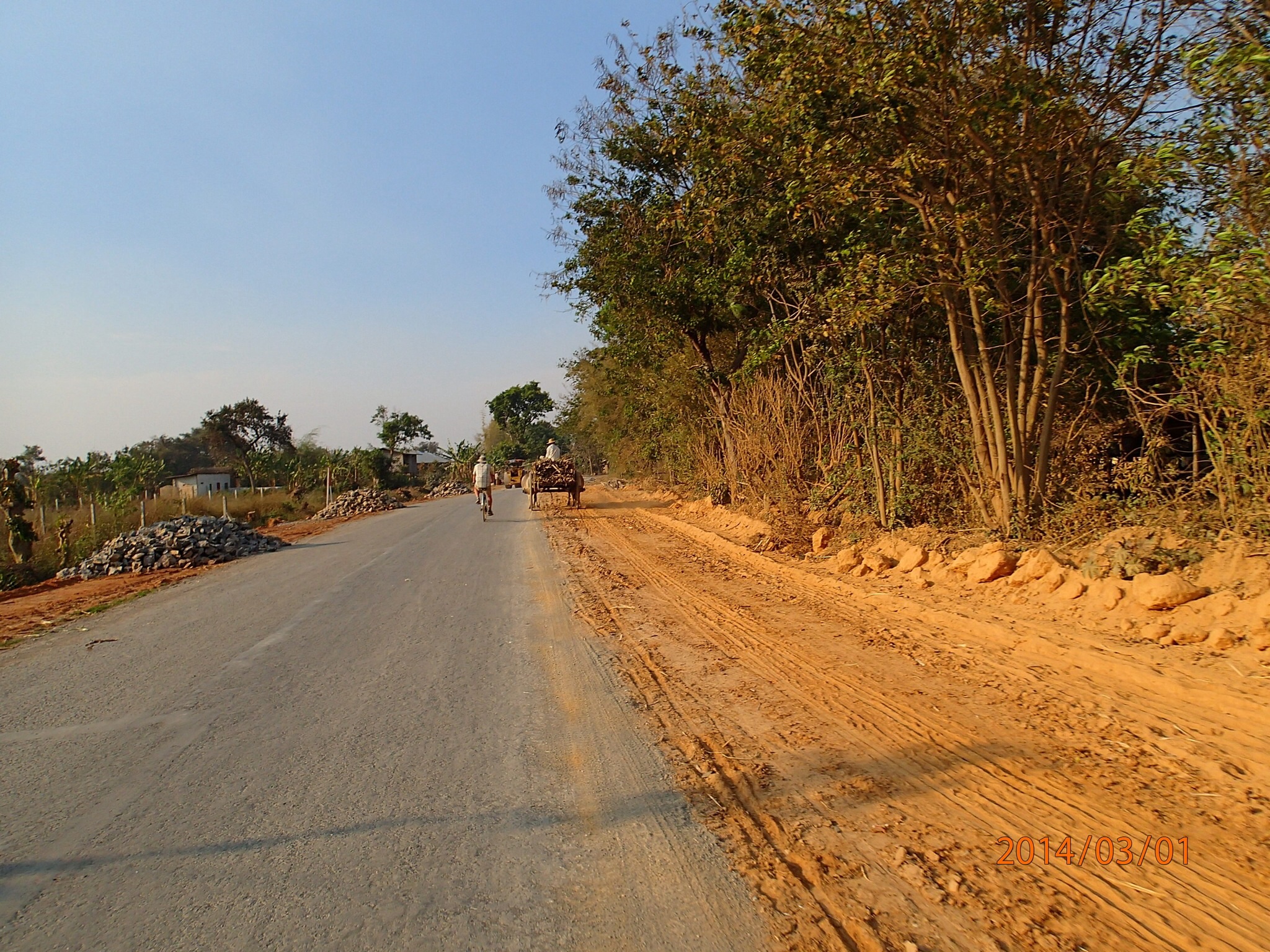 étudiant et récitant devant un moine, on leurs donne quelques crayons qui nous restent. Juste à coté un tout petit temple l’air de rien à l’extérieur mais surprise quand nous y entrons. Couvert d’appliqués en verre sur ses murs intérieurs et percé de centaines de petit Bouddhas! Puis longue route dans les rues en terre poussiéreuses de petits villages au