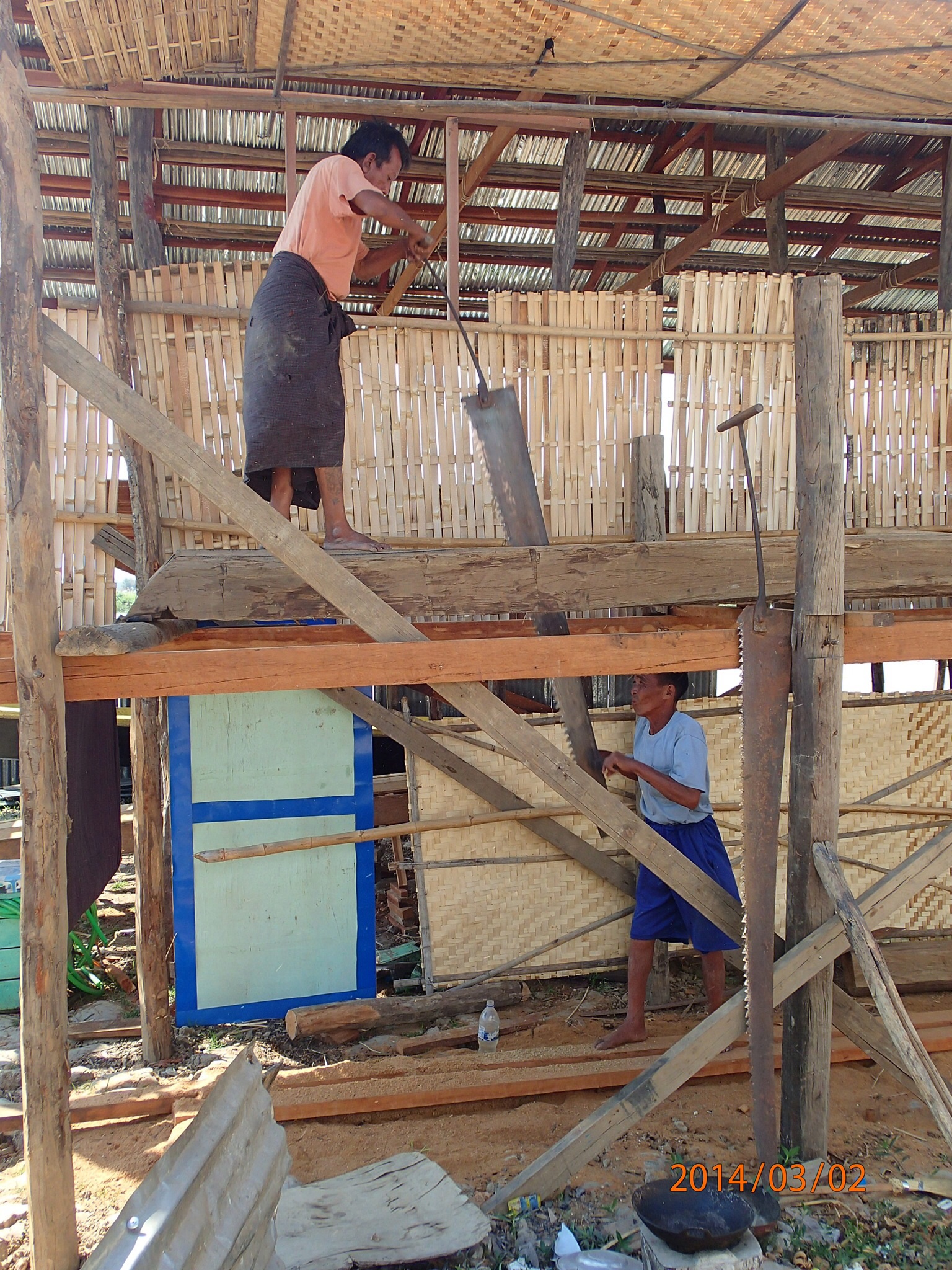 dangereux!!!! On verra des gens en train de construire une maison et installer les murs en bambou,