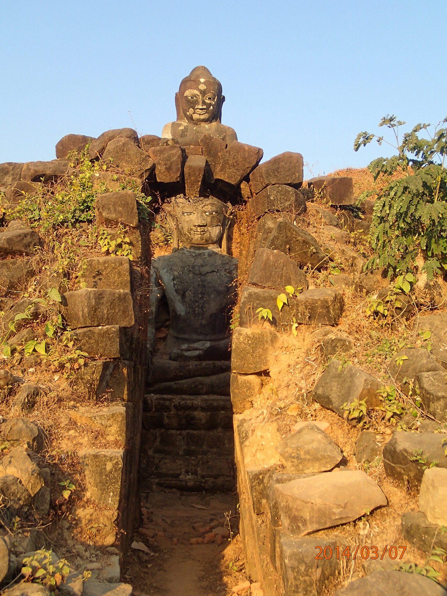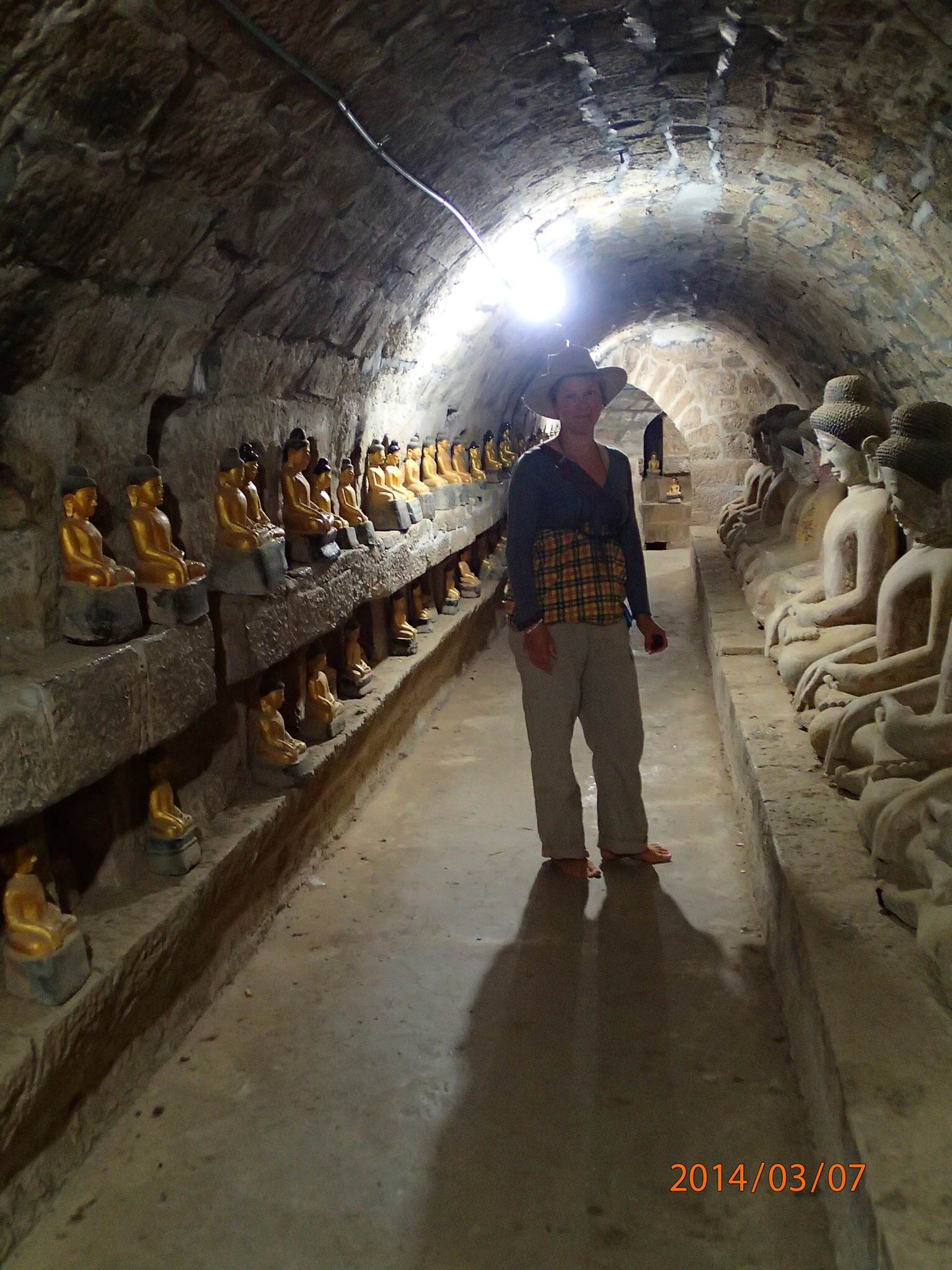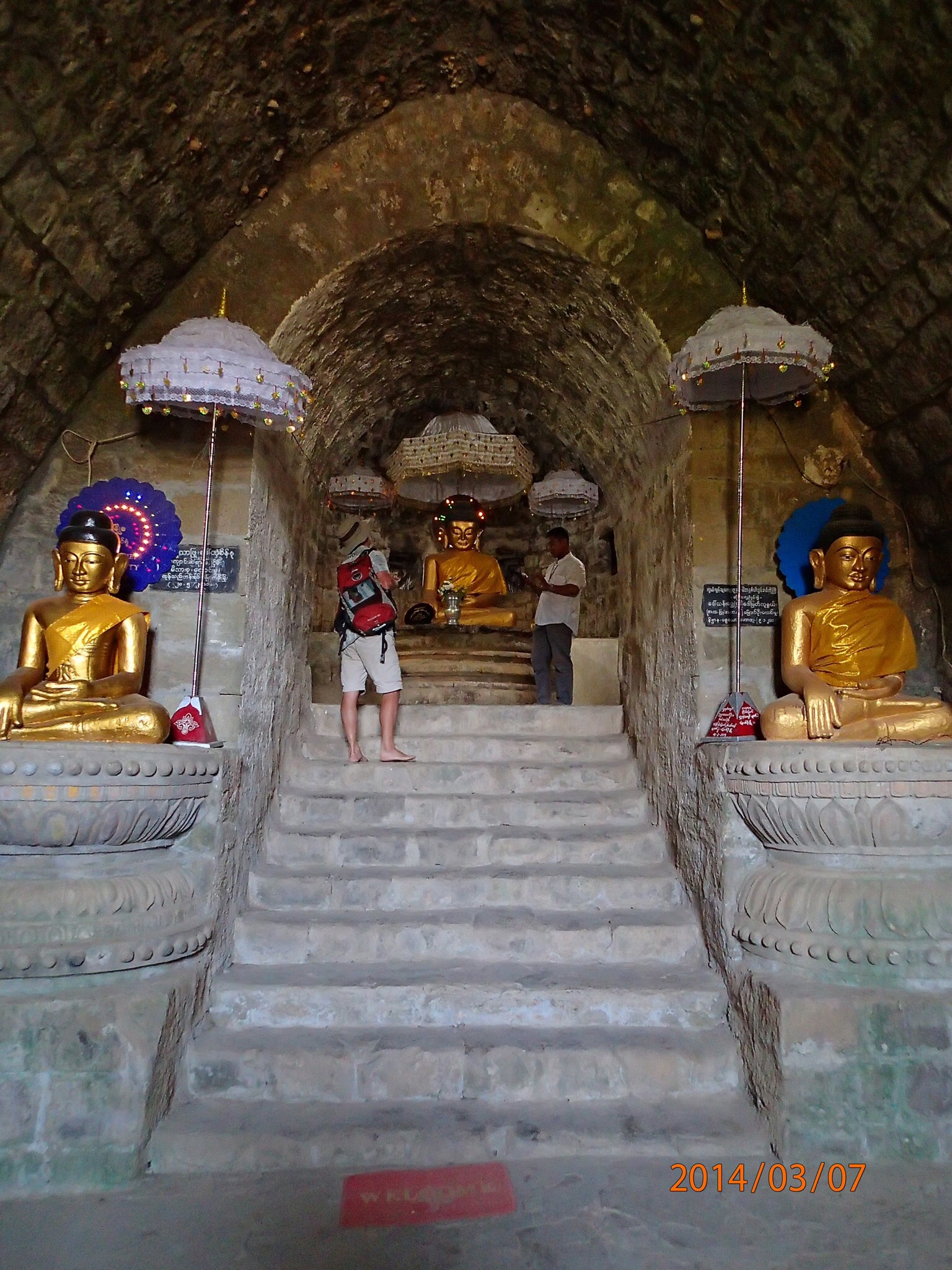 « ? » au sommet d’une colline, un bouddha sur le dessus et 4 autres en dessous qui à l’époque étaient recouvert et correspondant à chacun des points cardinaux. Notre guide nous explique que le coeur de chaque Bouddhas était en Or (mais tous ont été pillés) et que les stupas étaient aussi remplies d’Or en offrandes et que plusieurs centaines sont toujours enfouis aux sommets de certaines collines et ils sont tout probablement remplies d’Or! On se croyaient vraiment revenir dans le temps.Puis on ira au Koe Thaung, wow quel architecture et design avec ces centaines de petit stupas échelonnés tout autour.
