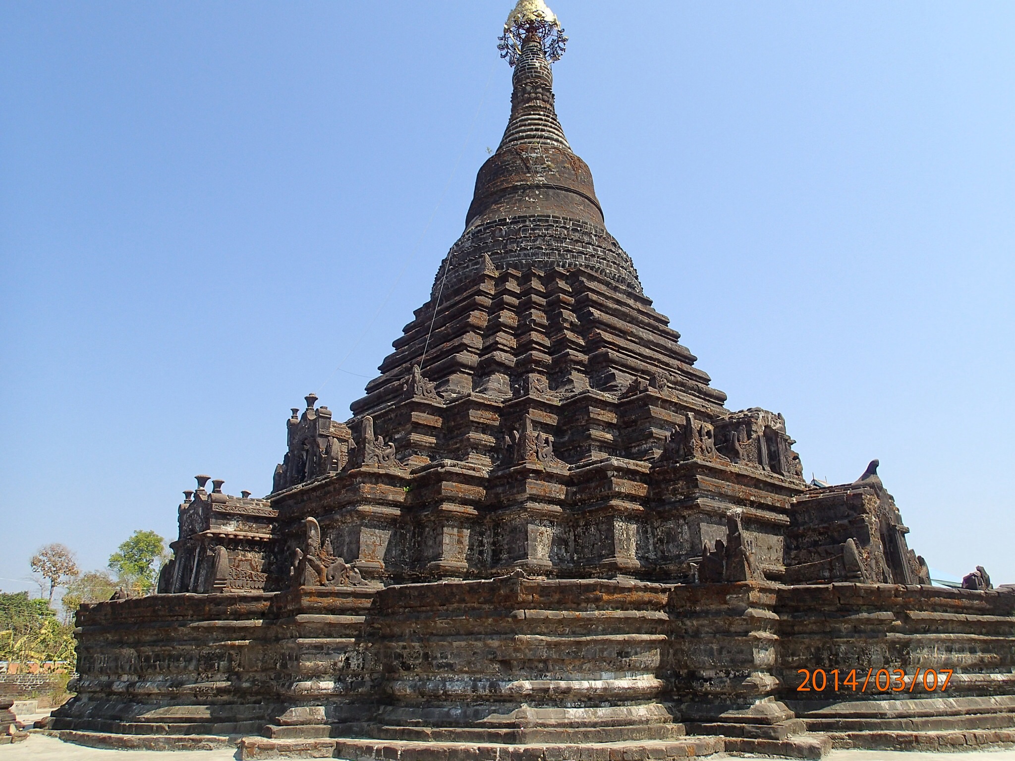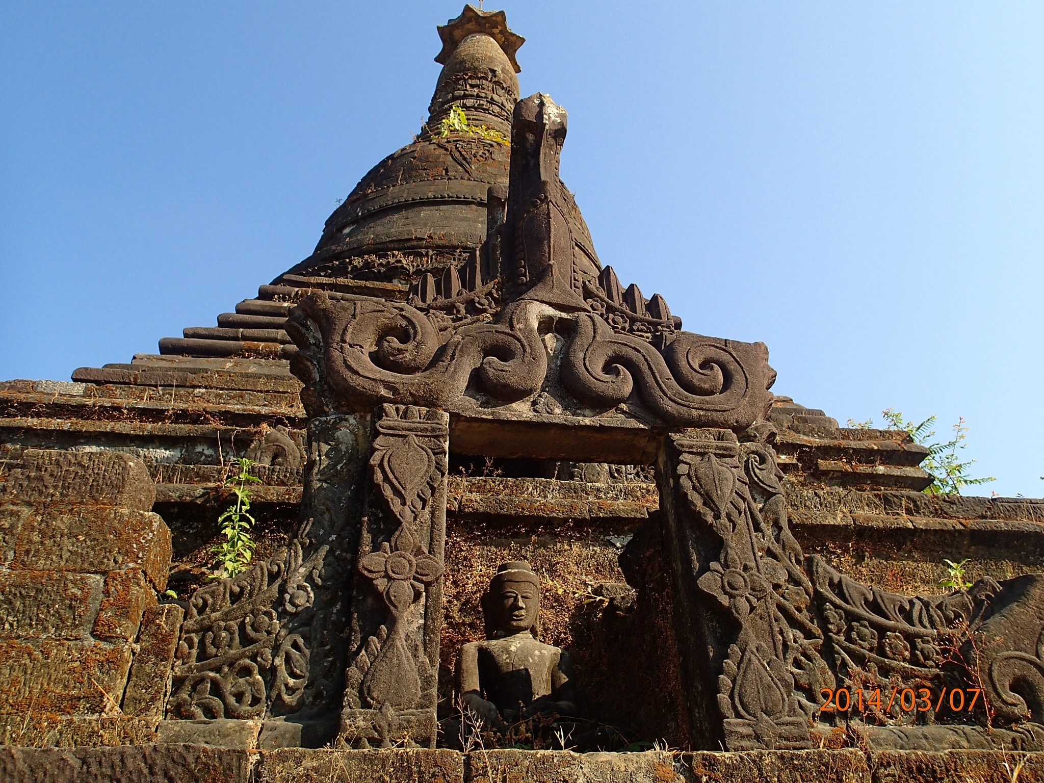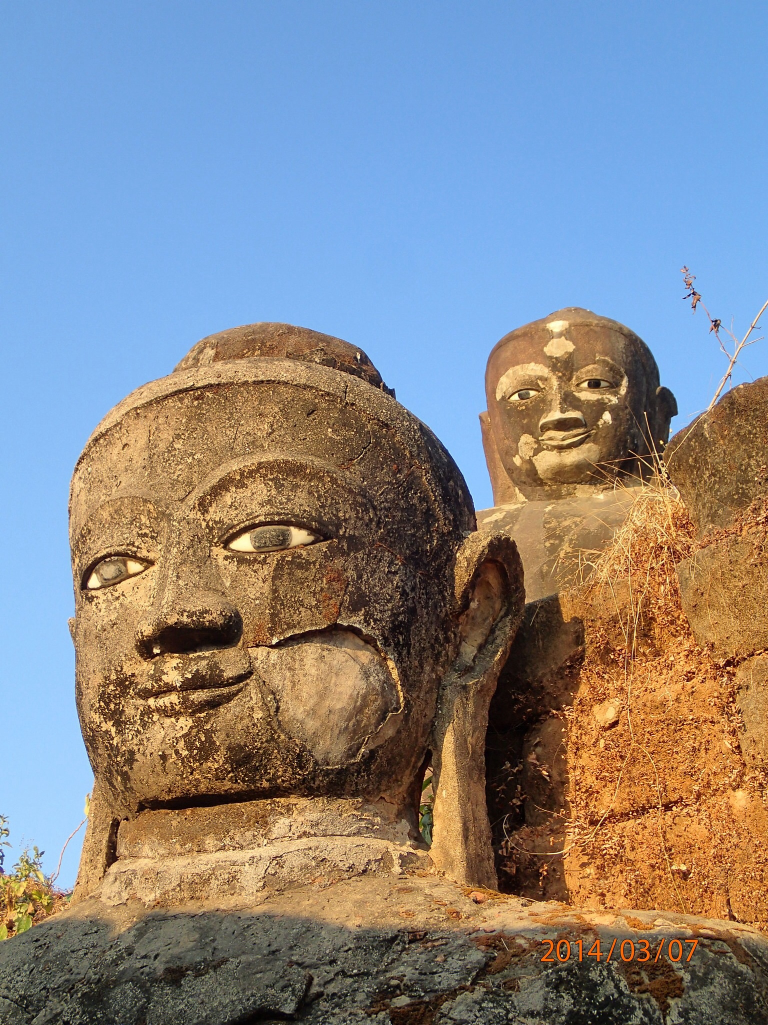 « ? » au sommet d’une colline, un bouddha sur le dessus et 4 autres en dessous qui à l’époque étaient recouvert et correspondant à chacun des points cardinaux. Notre guide nous explique que le coeur de chaque Bouddhas était en Or (mais tous ont été pillés) et que les stupas étaient aussi remplies d’Or en offrandes et que plusieurs centaines sont toujours enfouis aux sommets de certaines collines et ils sont tout probablement remplies d’Or! On se croyaient vraiment revenir dans le temps.Puis on ira au Koe Thaung, wow quel architecture et design avec ces centaines de petit stupas échelonnés tout autour.