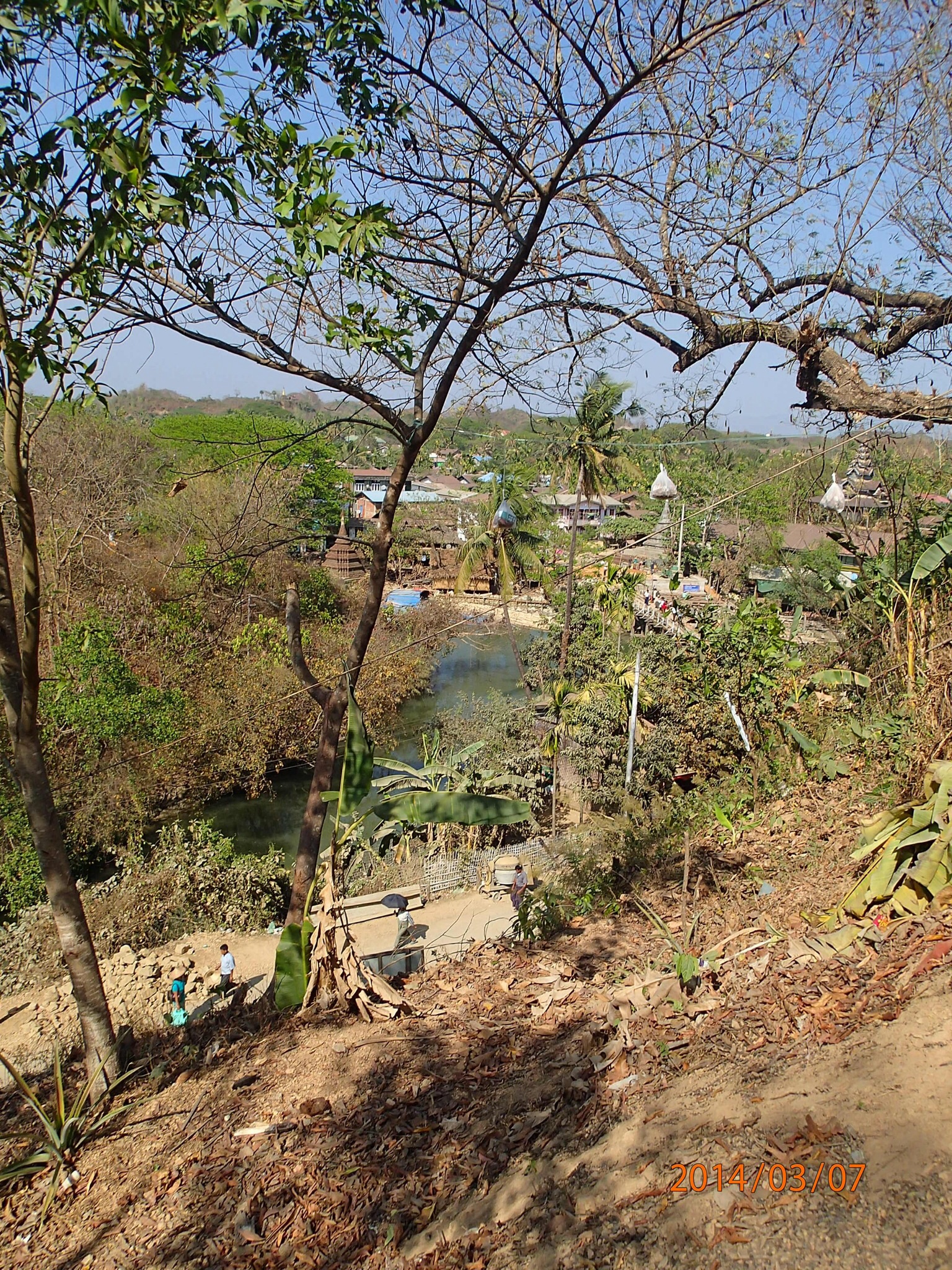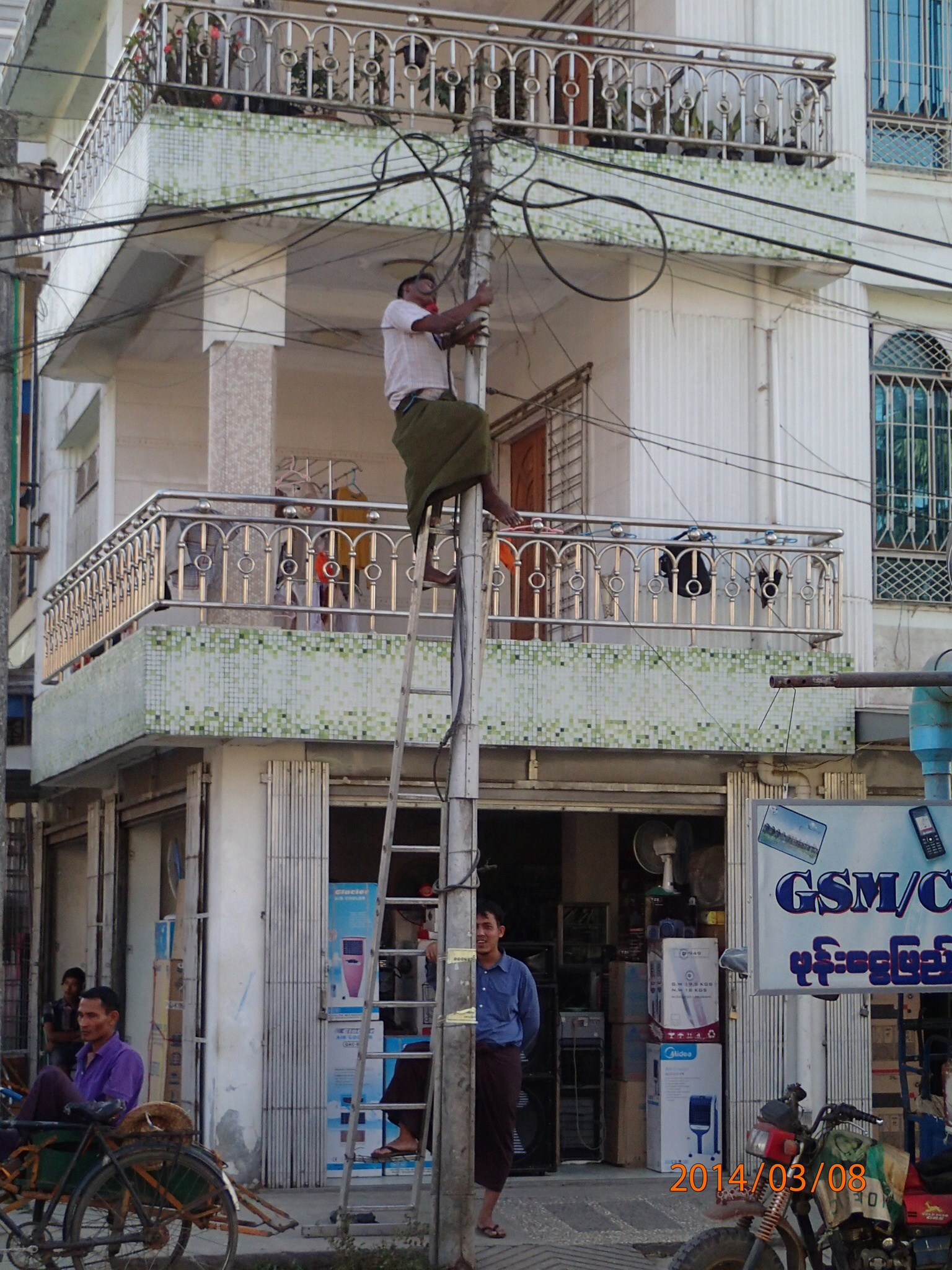 Visites terminés on demande à notre guide de nous laisser au pont en construction, notre repère pour s’orienter. De là on se rend réserver nos billets d’avion pour notre retour vers Yagon (ben oui tout porte à croire qu’on ne peut pas aller à Ngapali en prenant l’a ion la fin de semaine…(en tout cas personne ne le sait à Mrauk-U)…mais de toute façon d’autres voyageurs nous dit que c’est très dispendieux les chambres alors on change nos plans. Bon un peu pas mal bizarre la façon de fonctionner: on lui donne l’argent et il nous dit de revenir dans 30 min et qu’il aura nos billets… hummm ça sent pas bon mais pas d’autres choix… Mais au moins on est est dans un guest house et c’est le même gars que la veille! Pendant ce temps on essait un cyber café qui n’a de cyber que le nom car ni la quincaillerie, ni le wifi, ni l’internet fonctionne, …je crois qu’ils n’ont même pas de café non plus!!! ( 🙂 )