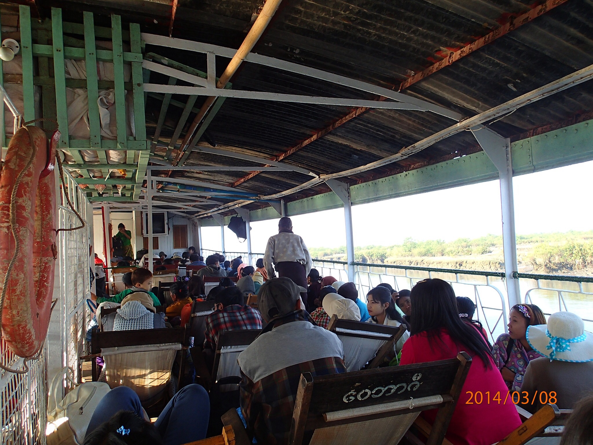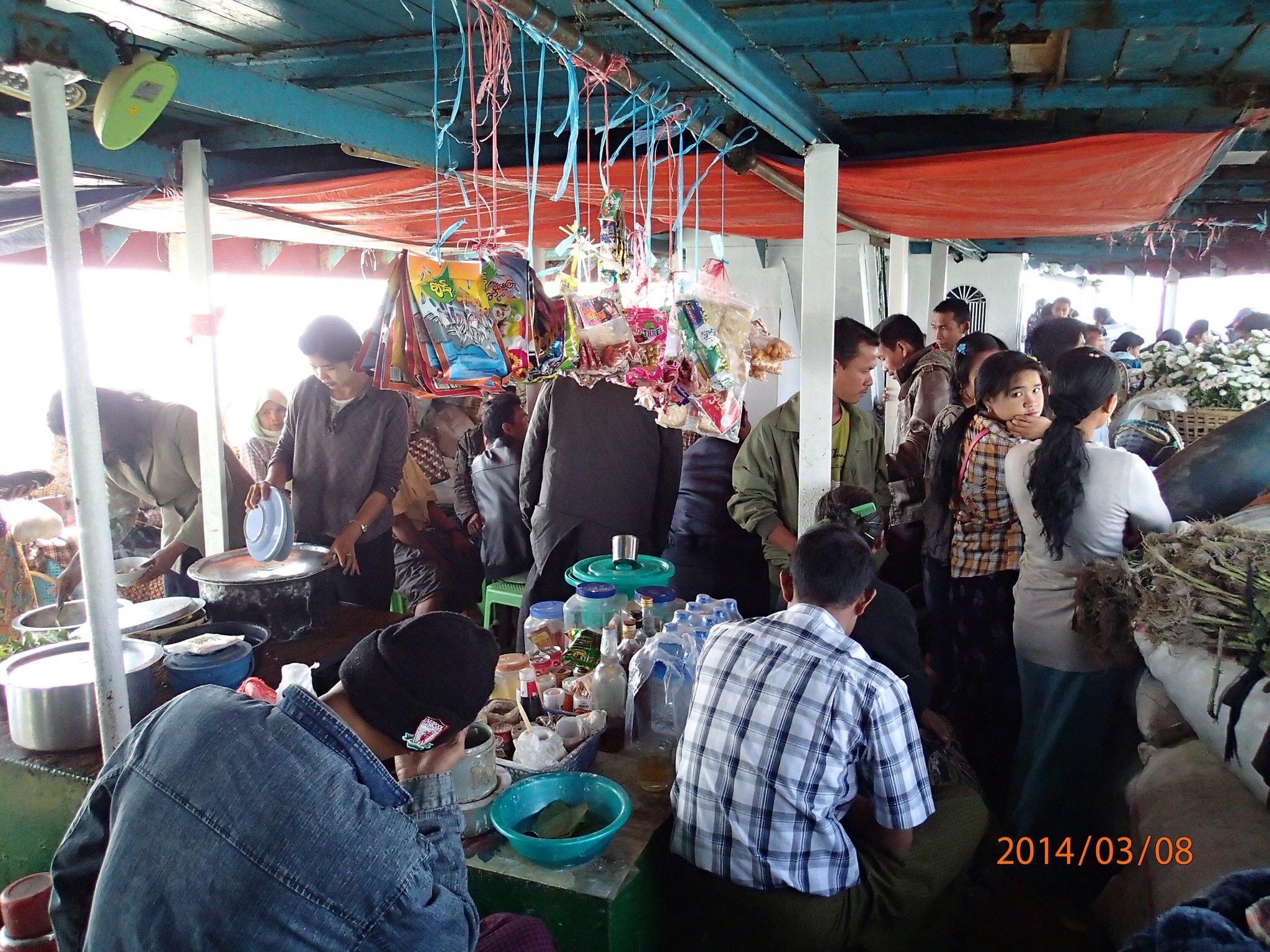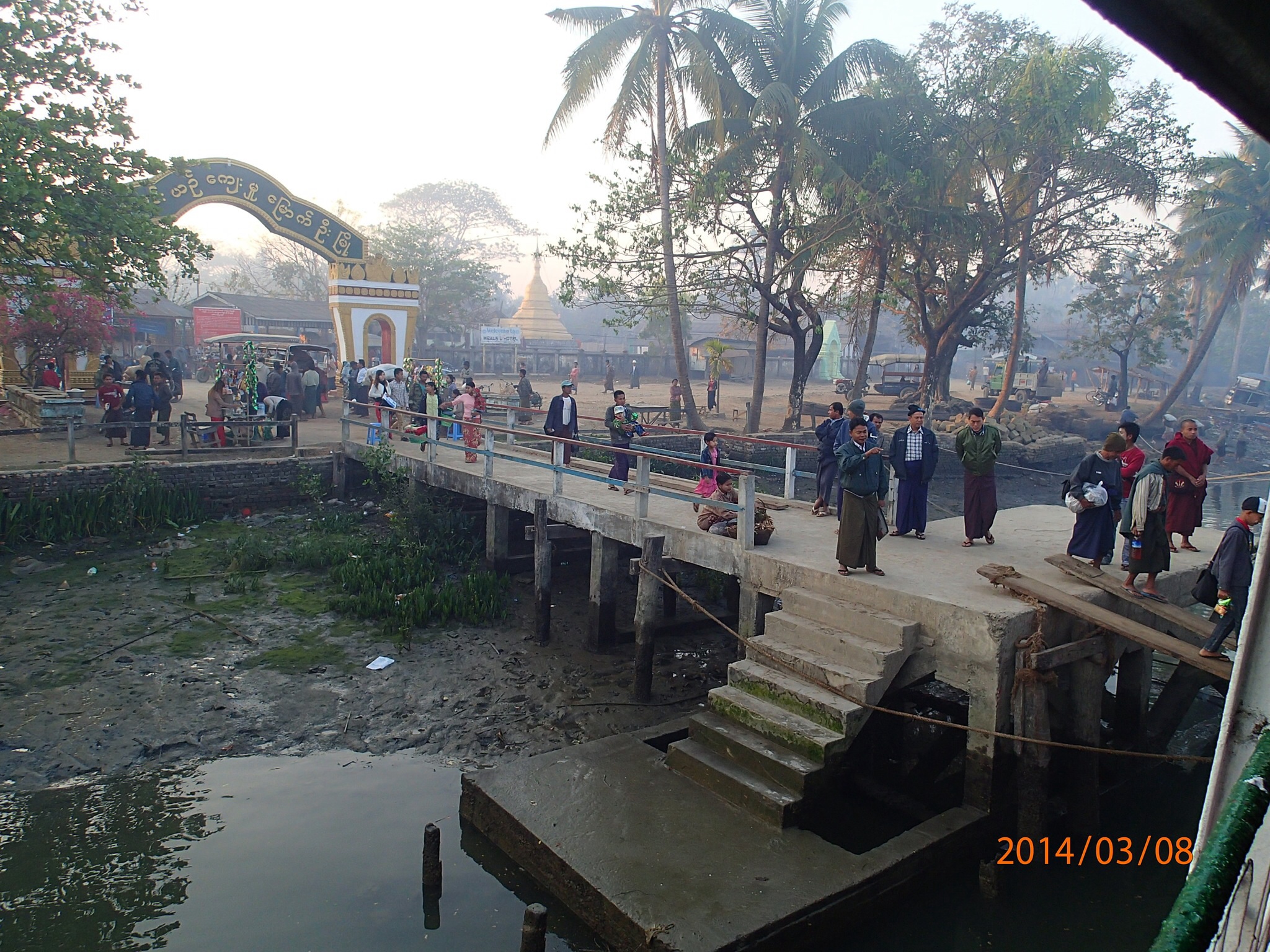 isières (rien à voir avec les paquebots!!) entassés et à vivre le quotidien de ces gens merveilleux, juste se déplacer sur le bateau entre les gens assis par terre les vendeurs et les marchandises est un expérience en soi. Nous ferons un arrêt dans trois villages sur notre route afin de débarquer et charger des marchandises, de même pour des vendeuses de toute sorte de truc et les passagers qui échangent leurs positions. Tout une tranche de vie qui se déroule devant nous et c’est avec beaucoup d’humilité et de respect que l’on y assiste.Arrivés à Sittwe (passage obligé car risqué de prendre un autre transport sitôt après) on se rends directement, enfin presque car notre chauffeur se fait arrêter par la police et revient la mine basse, au guest house (préalablement réservé cette fois!!). Débordant d’optimisme on part à la recherche d’un endroit avec internet mais on déchante vite… on ira se promener vers la mer sur le board walk (quand même superbe pour un endroit comme ici!!!) et on soupera au même resto que lors de notre arrivés il y a quelques jours.Hop dodo!