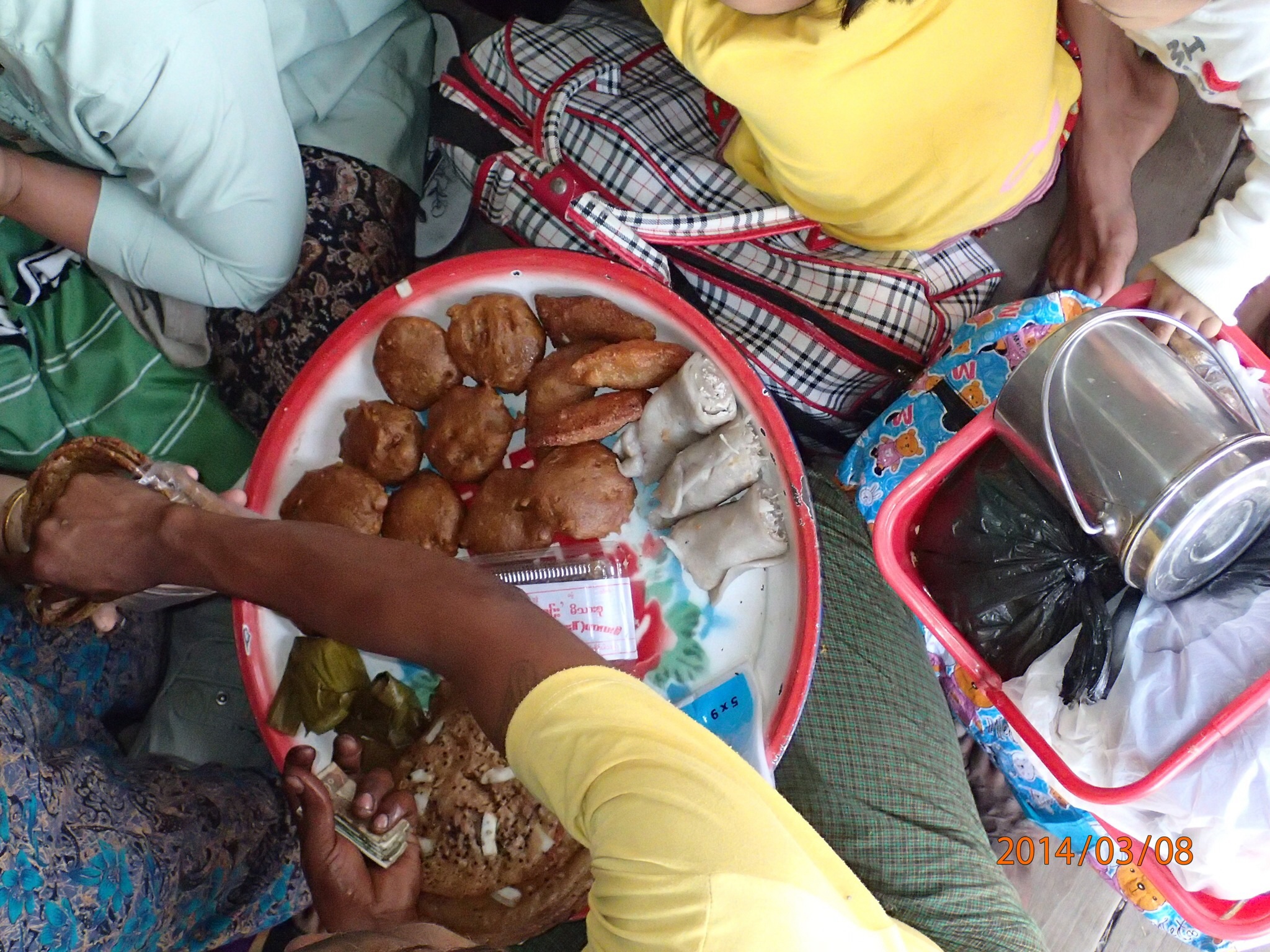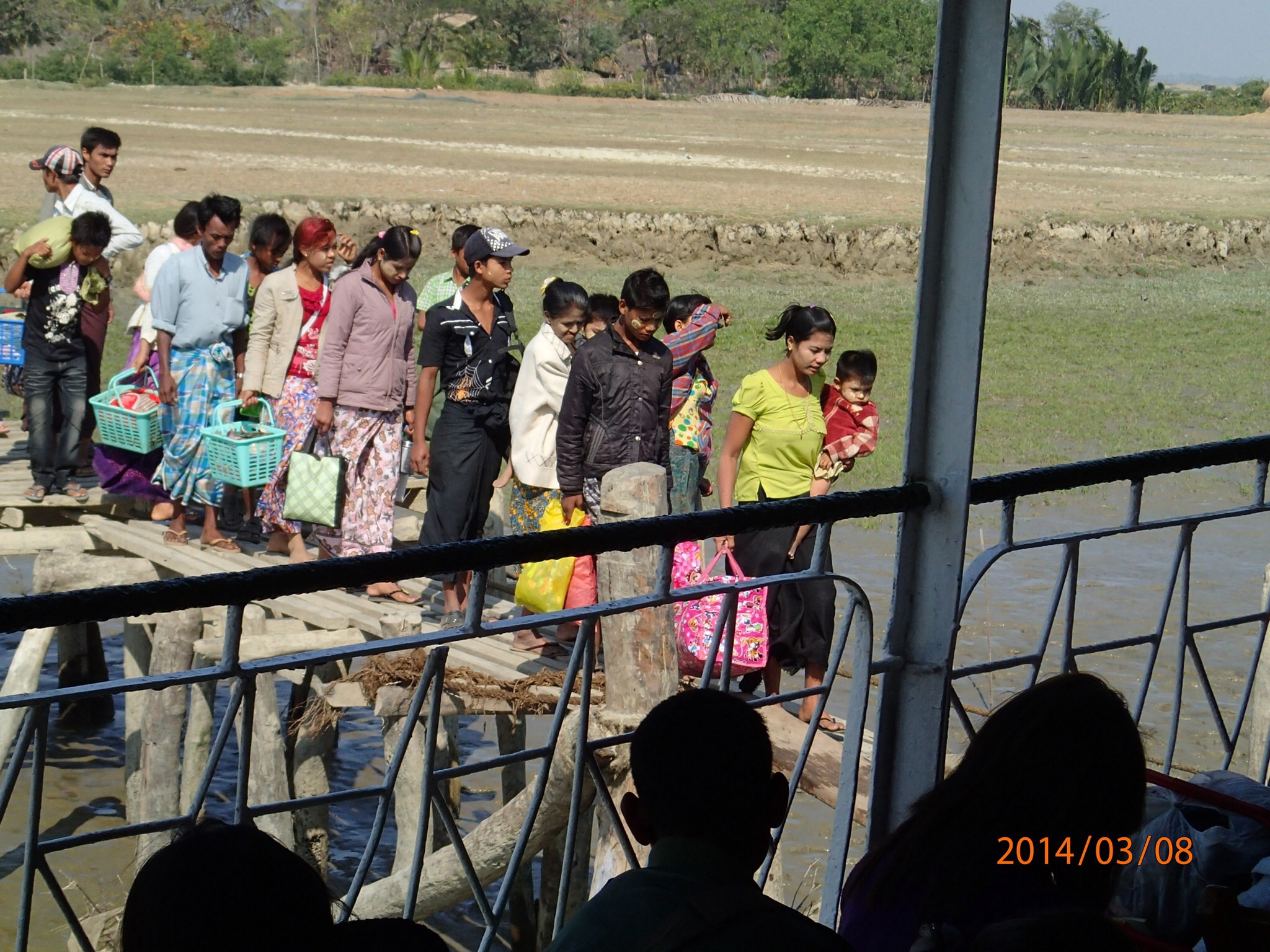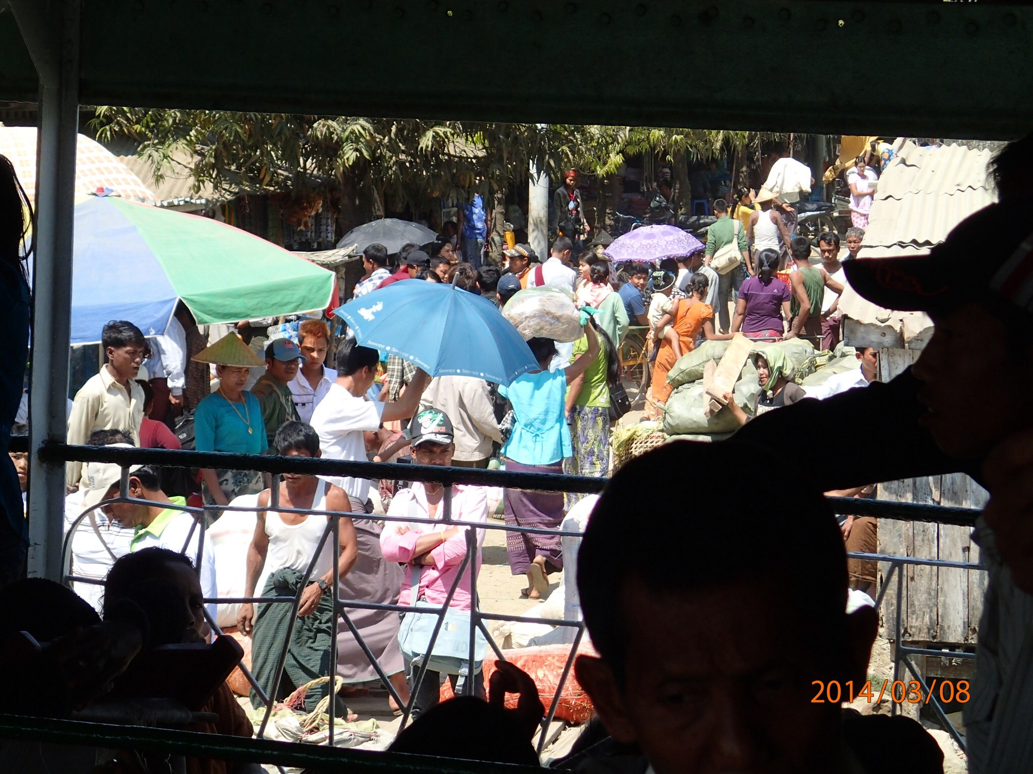 isières (rien à voir avec les paquebots!!) entassés et à vivre le quotidien de ces gens merveilleux, juste se déplacer sur le bateau entre les gens assis par terre les vendeurs et les marchandises est un expérience en soi. Nous ferons un arrêt dans trois villages sur notre route afin de débarquer et charger des marchandises, de même pour des vendeuses de toute sorte de truc et les passagers qui échangent leurs positions. Tout une tranche de vie qui se déroule devant nous et c’est avec beaucoup d’humilité et de respect que l’on y assiste.Arrivés à Sittwe (passage obligé car risqué de prendre un autre transport sitôt après) on se rends directement, enfin presque car notre chauffeur se fait arrêter par la police et revient la mine basse, au guest house (préalablement réservé cette fois!!). Débordant d’optimisme on part à la recherche d’un endroit avec internet mais on déchante vite… on ira se promener vers la mer sur le board walk (quand même superbe pour un endroit comme ici!!!) et on soupera au même resto que lors de notre arrivés il y a quelques jours.Hop dodo!