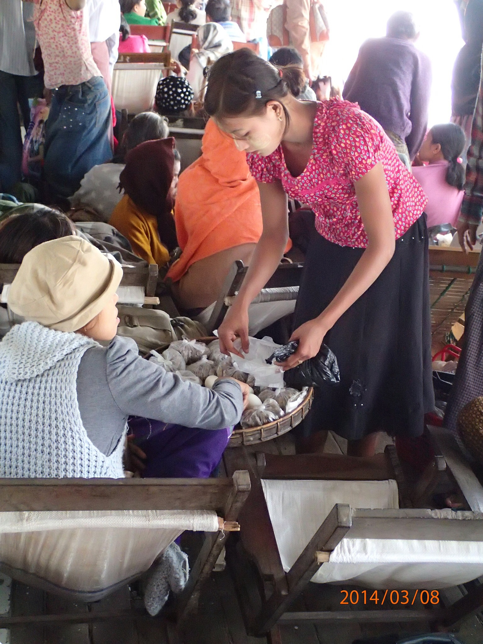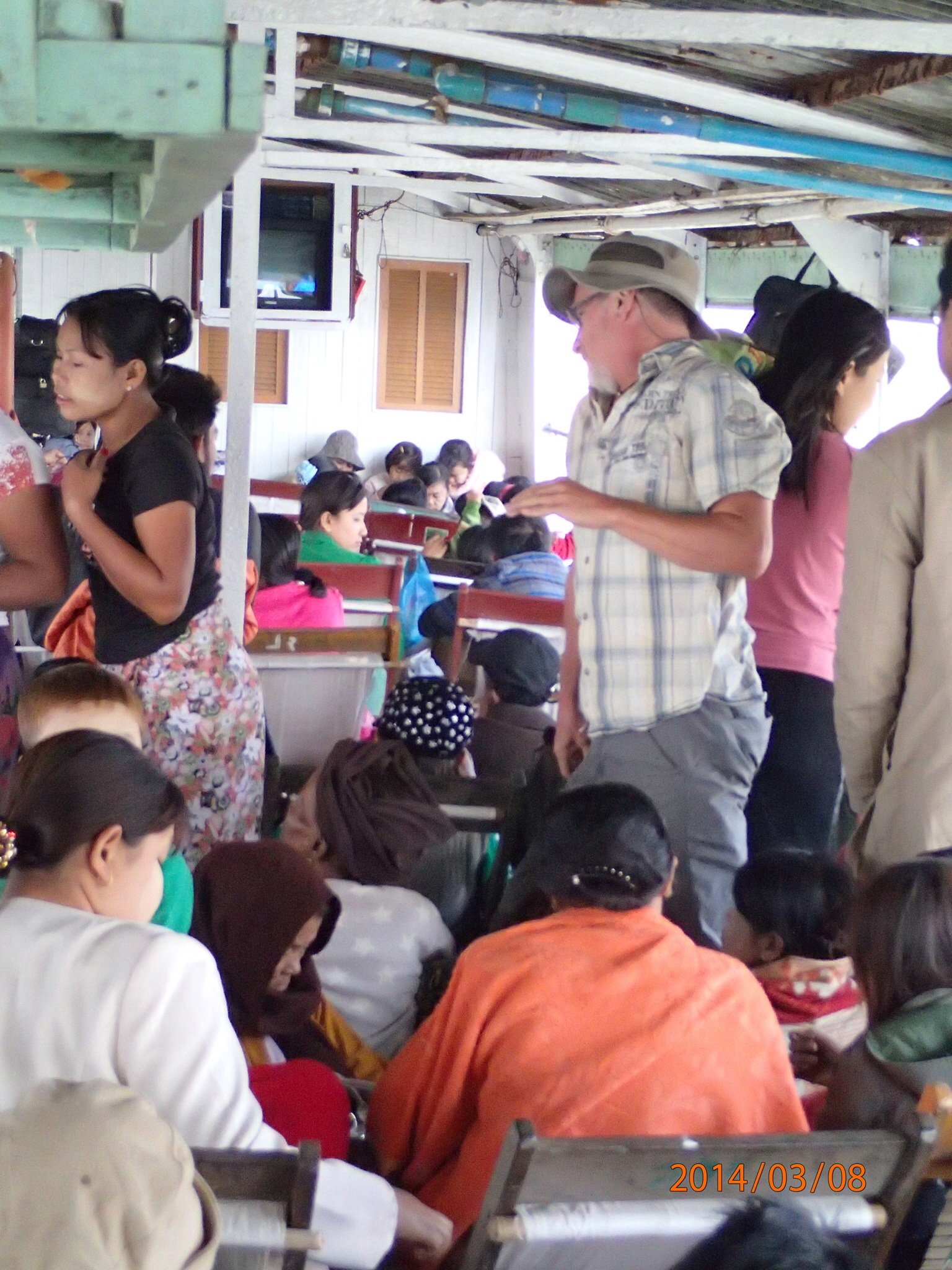 isières (rien à voir avec les paquebots!!) entassés et à vivre le quotidien de ces gens merveilleux, juste se déplacer sur le bateau entre les gens assis par terre les vendeurs et les marchandises est un expérience en soi. Nous ferons un arrêt dans trois villages sur notre route afin de débarquer et charger des marchandises, de même pour des vendeuses de toute sorte de truc et les passagers qui échangent leurs positions. Tout une tranche de vie qui se déroule devant nous et c’est avec beaucoup d’humilité et de respect que l’on y assiste.