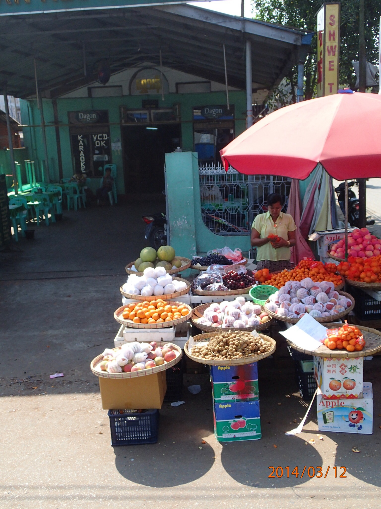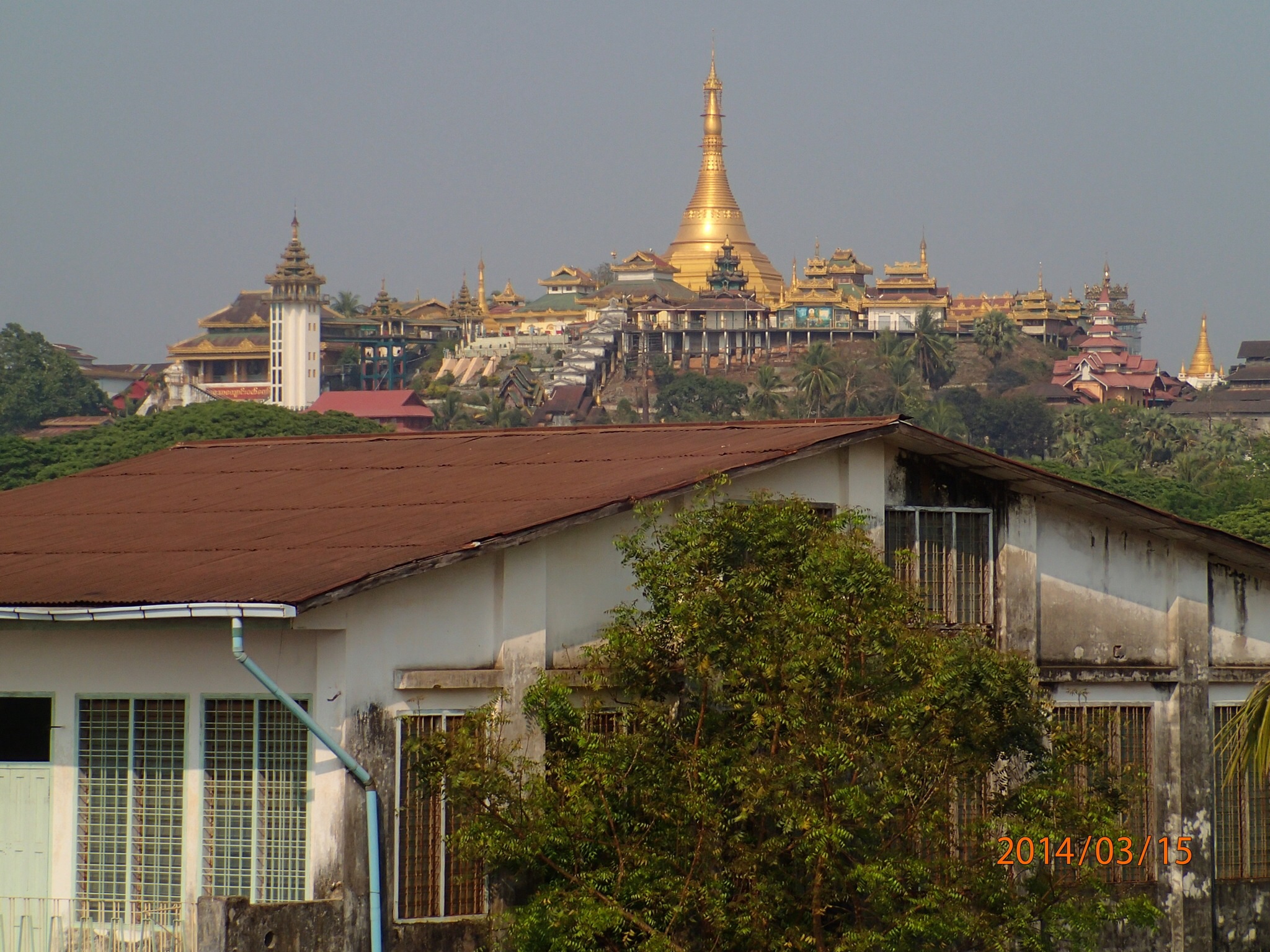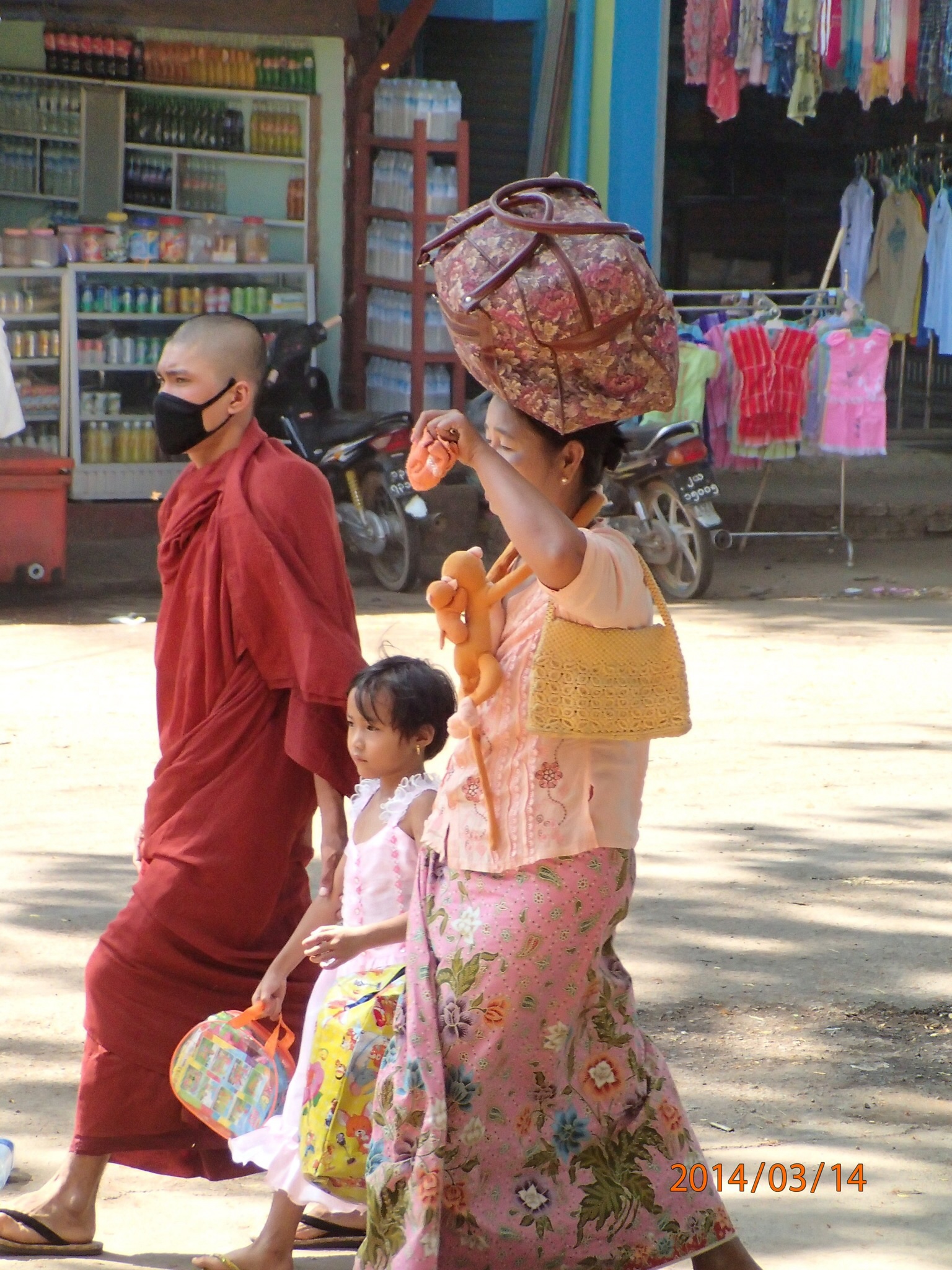de la pagode Shwedmawdaw, on décide de ne pas aller faire de visite pas plus que toutes les autres nombreuses pagodes car il fait trop chaud et de toute façon avec le nombre de pagode déjà visitées ces derniers mois, une de plus ou de moins ne changera pas grand chose et mettons qu’on n’en peut plus…voilà c’est dit! On voit un ATM et impossible d’y retirer de l’argent…bon on trouver