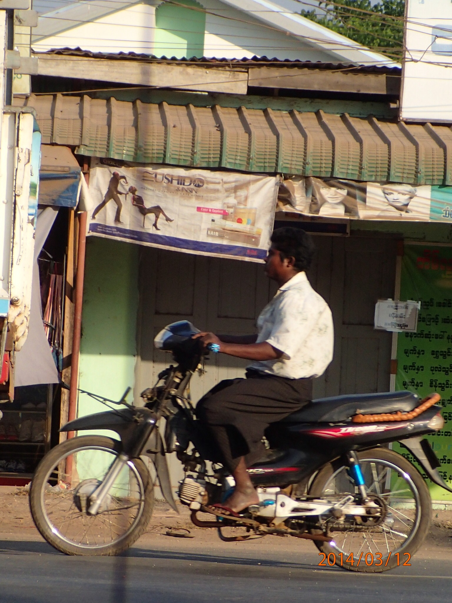 Cela dit on est dans le bus local (climatisation naturelle) qui fait la liaison Yangon/Moulmein, tout va bien et le « contrôleur » (ici il y a quelqu’un qui collecte et indique au chauffeur où arrêter) est juste à nos côtés. Tout au long, on observe les gens aller et venir. Puis c’est à notre tour, il nous débarque juste en avant de la rue de notre hôtel. Il fait plus de 35 et on ne sait pas vraiment si c’est à 50m ou 500m, alors nous prenons le tuk-tuk, c’était à 100m tout au plus mais ça fait rouler l’économie locale!!!!