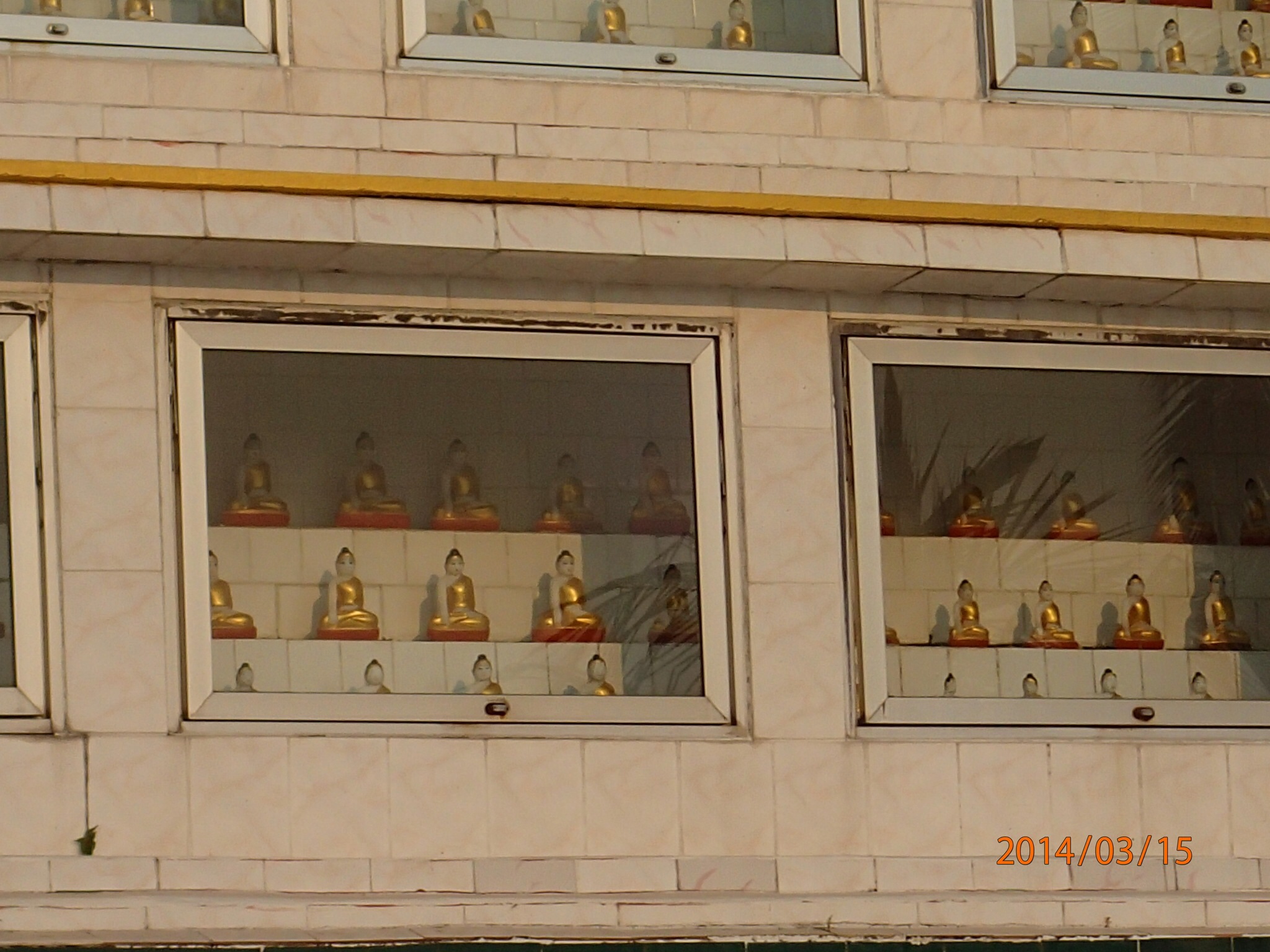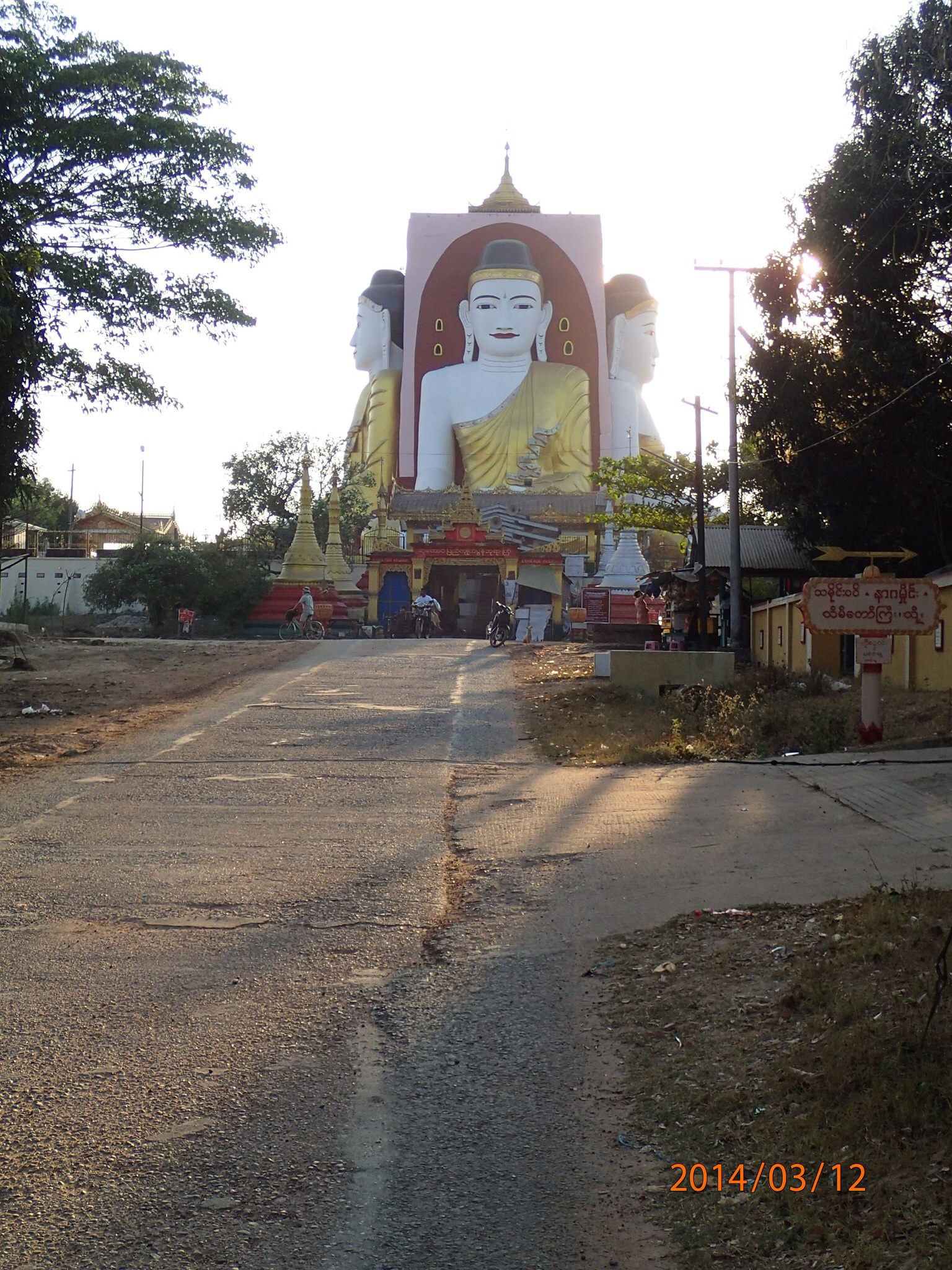 uis en arrivant à notre hôtel on décide d’aller quelques centaines de mètres plus loin pour faire le tour de la pagode au bout de la rue (c’est plus fort que nous on est accroc maintenant… J ). Pagode avec quatre grands Bouddhas orientés chacun vers un point cardinaux (et très bien entretenus!) mais on n’entrera pas à l’intérieur. Beaucoup de travaux en cours tout autour et de nouveaux bâtiments en construction!!! Allez chambre et dodo car on continu demain tôt pour le rocher d’or (où nous avons préalablement réservé notre hôtel au sommet…bien oui rien de trop beau pour nous pauvres paumés!).