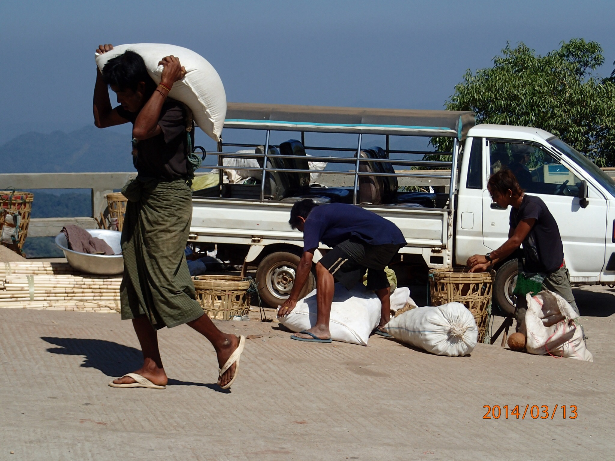 ctionne pas et aucune banque dans la place, donc on va se débrouiller autrement mais pas de folie à faire car on en a juste assez pour payer notre chambre, nos repas et le bus en espérant très fort que la prochaine ville on puisse en trouver un! On se rends au terminal pour prendre le camion (les seuls autorisés à monter au sommet) et là c’est tout un spectacle dont nous ferons parti bientôt…Les camions sont en fait des 10 roues dont la boîte est aménagée avec plusieurs rangés de ba