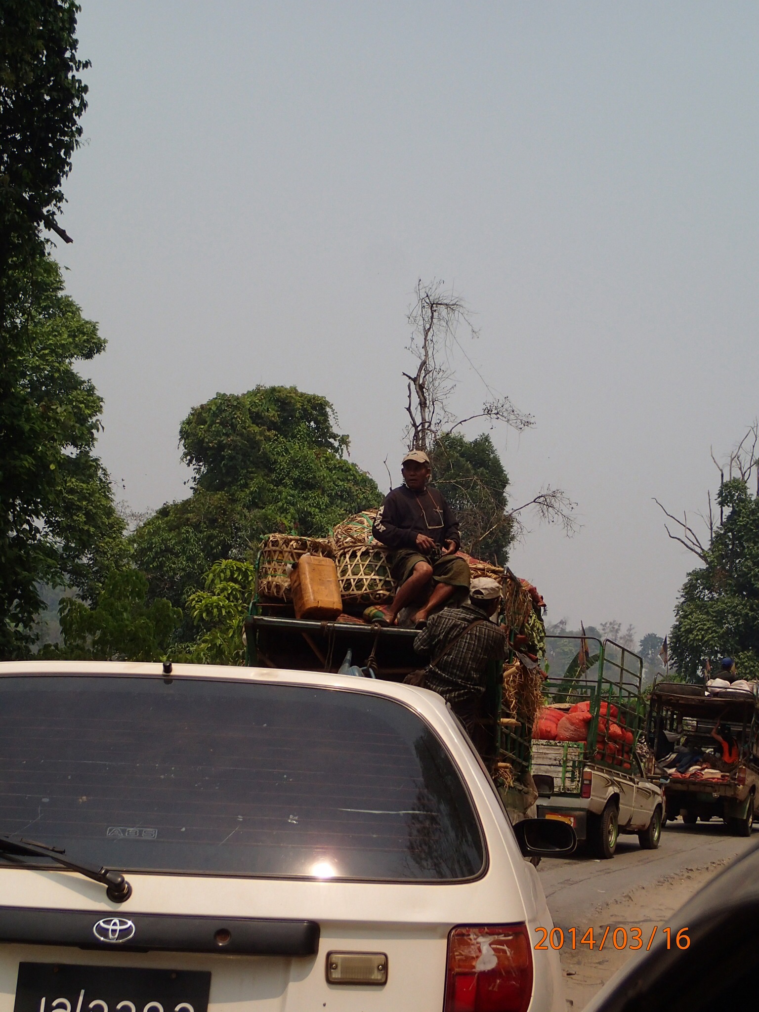 ne belle surprise finalement) qui va nous conduire à Myawadi, ville frontière du Myanmar donnant sur Mae Sot en Thaïlande. Total de 5hrs (ha ha c’était supposé être 2h30) de route dans toutes les conditions, particulièrement la partie en montagne à sens unique, un autre vrai manège de montagne russes !!! Pis en chemin