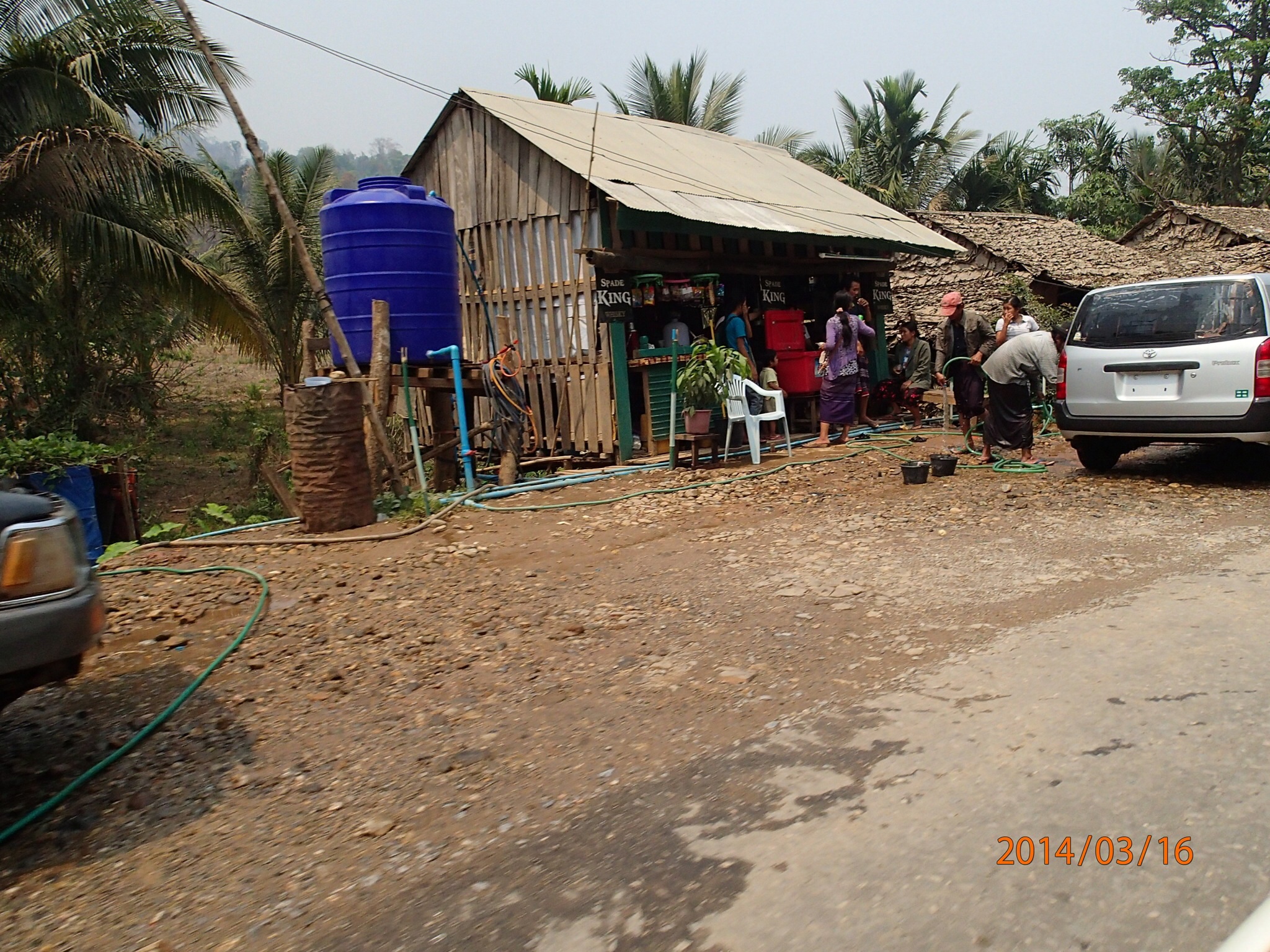 on fera un tune-up sur l’auto au « garage » et on passera également au « car wash » manuel! Le passage de la frontière se fera somme toute assez facilement et sans trop de délais (mais pas pour le Birmans qui eux doivent attendre dans une file qui semble interminable). Youpi (qu’on pense !!) on est en Thaïlande où tout devrait être beaucoup plus facile à organiser pour filer tout droit vers nos derniers jours !!!