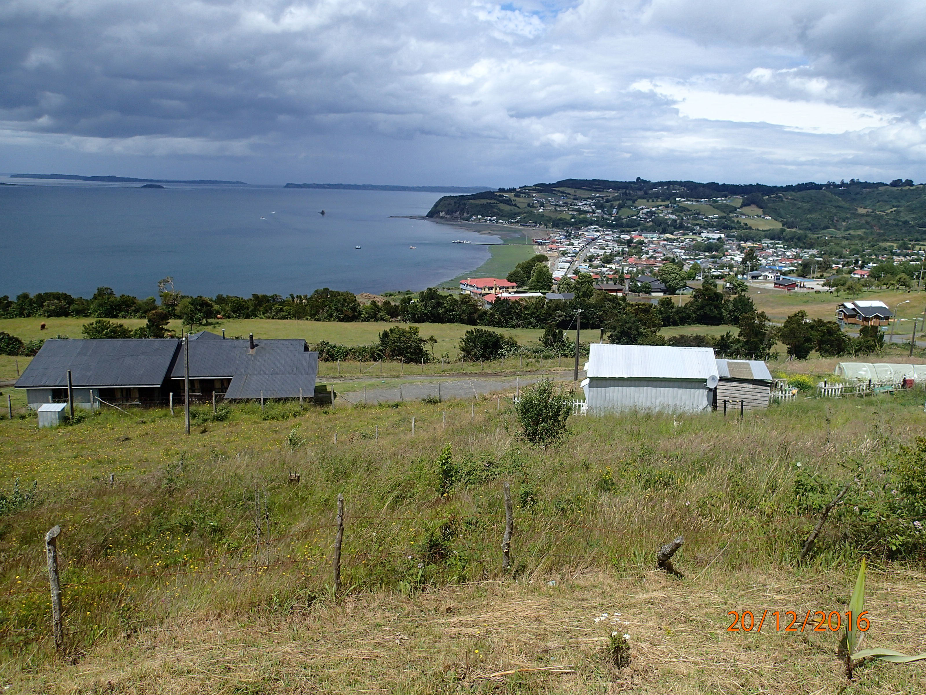 au bord de la baie on revient sur nos pas. Passage du traversier oblige et on se confond (lire on s’écarte) un peu dans les quelques rues Dalcahue. Finalement on trouve la petite route qui nous mènera à la route 5, principale route appelée la Panaméricaine vers Castro!
