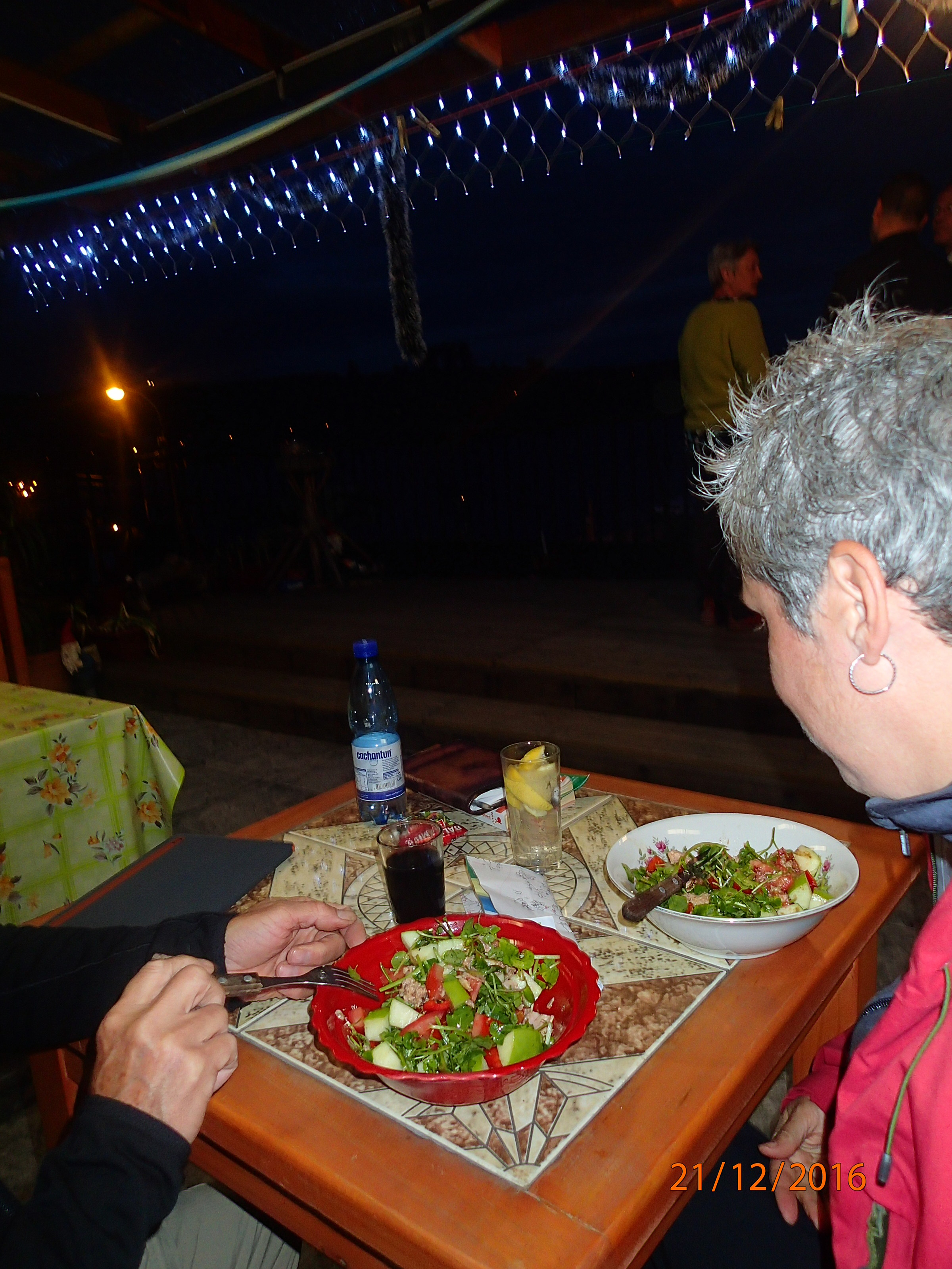 Retour à notre Hotel El Molo, pour petit souper sur la terrasse un peu plus chaude cette fois (reprise d’hier…ensalada 😉 mais avec des français a coté qui sont plutôt bruyant!)