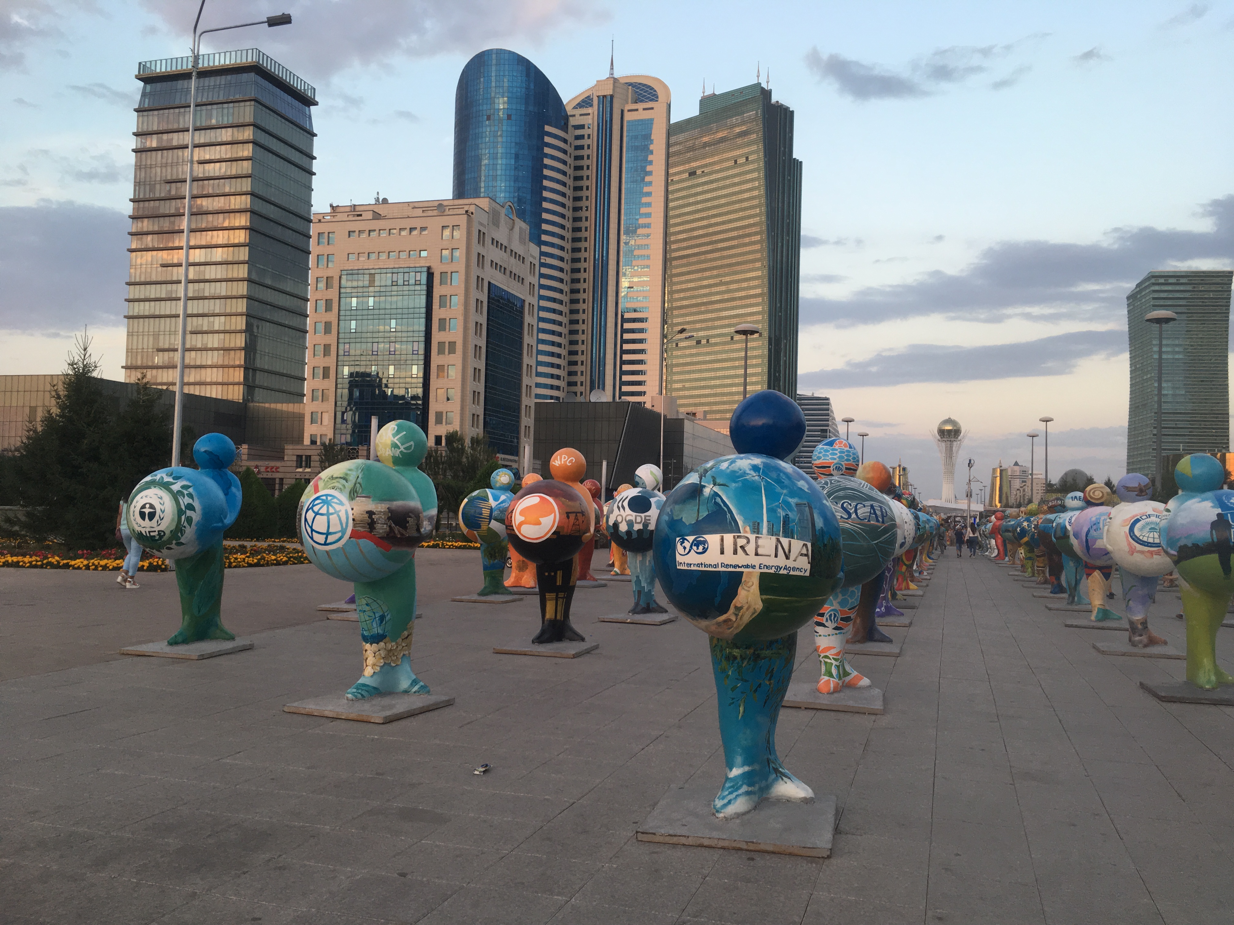 Après 20h passé dans les aéroports incluant 2 vols totalisant 13h, nous voilà enfin arrivés à Astana, la capitale du Kazakhstan. Où a lieu l’Expo universelle dont le thème est « L’énergie du futur ». Il est