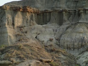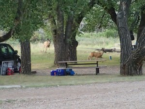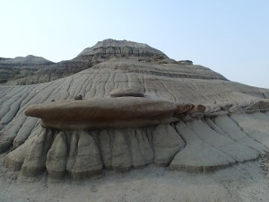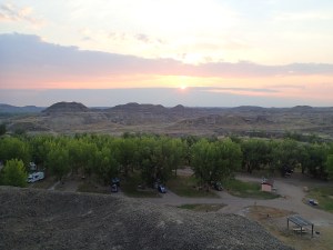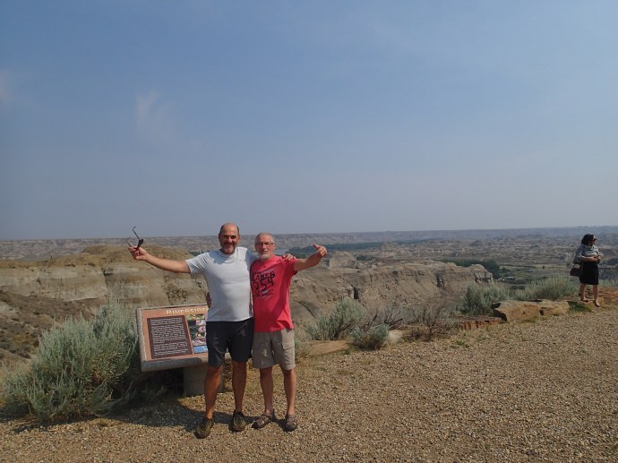 On prend la direction du Parc Provincial des Dinosaures. En quittant l’autoroute le pâturage apparaît et il fait chaud de plus en plus! On voit un coyotes sur le bord du chemin et quelques chevreuils. Et après avoir beaucoup roulé on se demande si on va avoir de la place a ce camping car dans mon « Lonely planet» il indique qu’il est tres populaire. Ah zut une affiche indique « full » un bon 5 km avant d’arriver. Pas grave on prend une chance et on leur sortira nos violons… on arrive du Quebec bla bla bla.