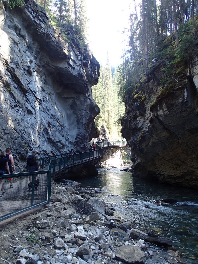 Mais avant d’aller au Lac Louise on passe voir une des merveilles du parc soit le Canyon Johnson. Il y a plein de monde (hum ça nous fait penser a notre 1er jour de trek du W en Patagonie…🤔) et comme la plupart du temps on marche sur des passerelles bien faut être patient. L’endroit est magnifique, les passerelles sont accrochées a même la falaise pas facile pour ceux qui ont le vertige. On passera tout droit sur quelques points de vue a cause de la filée de gens attendant!