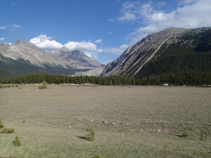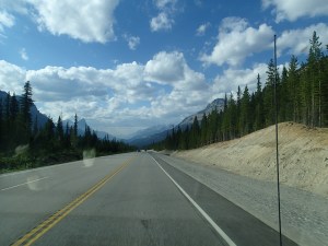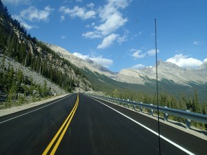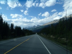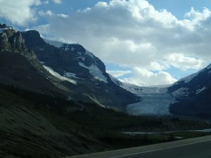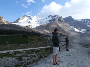 C’est alors que l’on quitte en direction du Parc Nationale de Jasper en prenant la route spectaculaire: “Icefield parkway” longue de 230km comprise entre le Lac Louise et la ville de Jasper. C’est sur cette route que l’on devrait se rapprocher le plus des sommets escarpés des Rocheuses avec notre véhicule. Une route de ~ 3h passant au travers le Parc National de Jasper. On devrait donc être à notre campement vers 20h. Donc pas trop d’arrêt en chemin malgré ces très grandes beautés naturelles. Dommage car cela aurait vraiment valu la peine de prendre plus notre temps surtout pour le trek au pied du Glacier Athabasca mais là juste devant le glacier on vient de perdre plus de 15 degrés avec ces vents! Brrrrrrr. Pas le temps car il reste encore 1h de route…